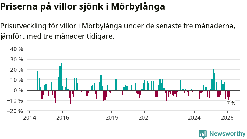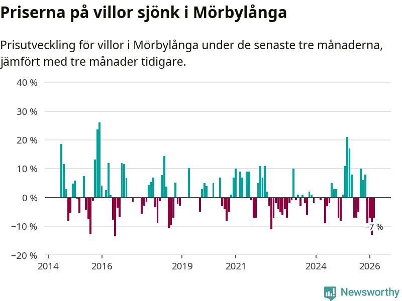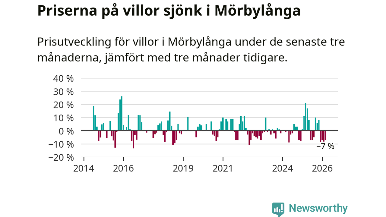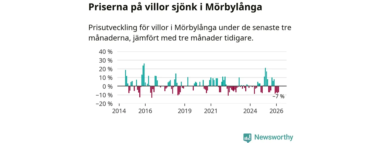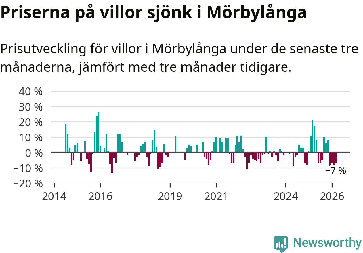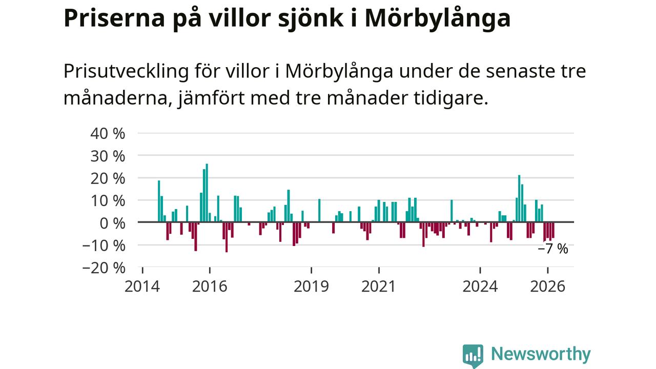 Villapriserna har gått ner i Mörbylånga kommun. Medelpriset på försäljningarna under de senaste tre månaderna visar på en nedgång med 7 procent.