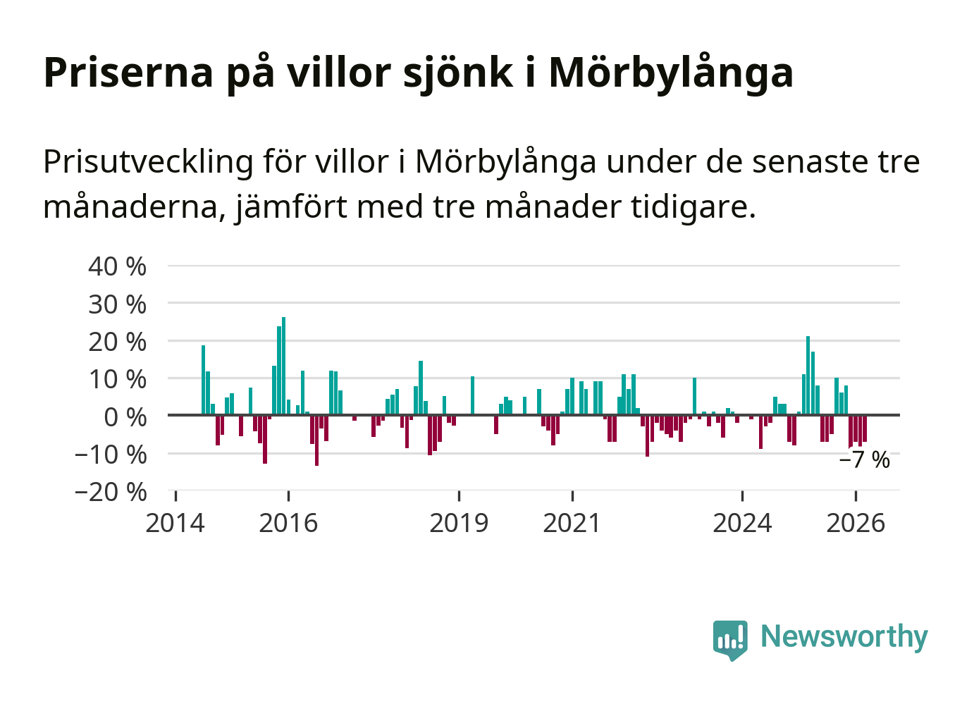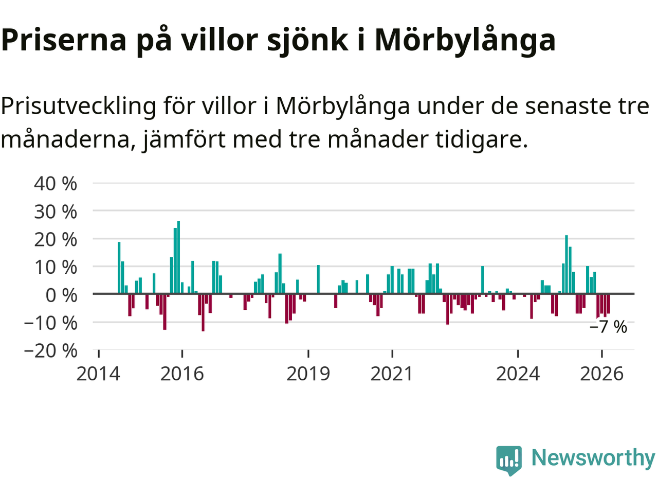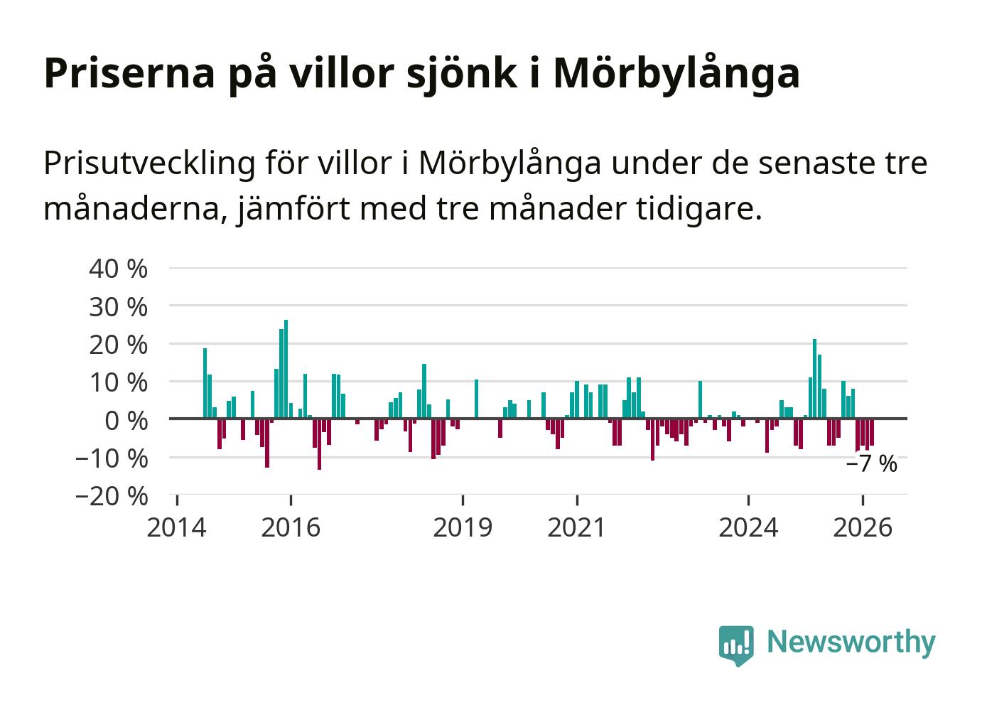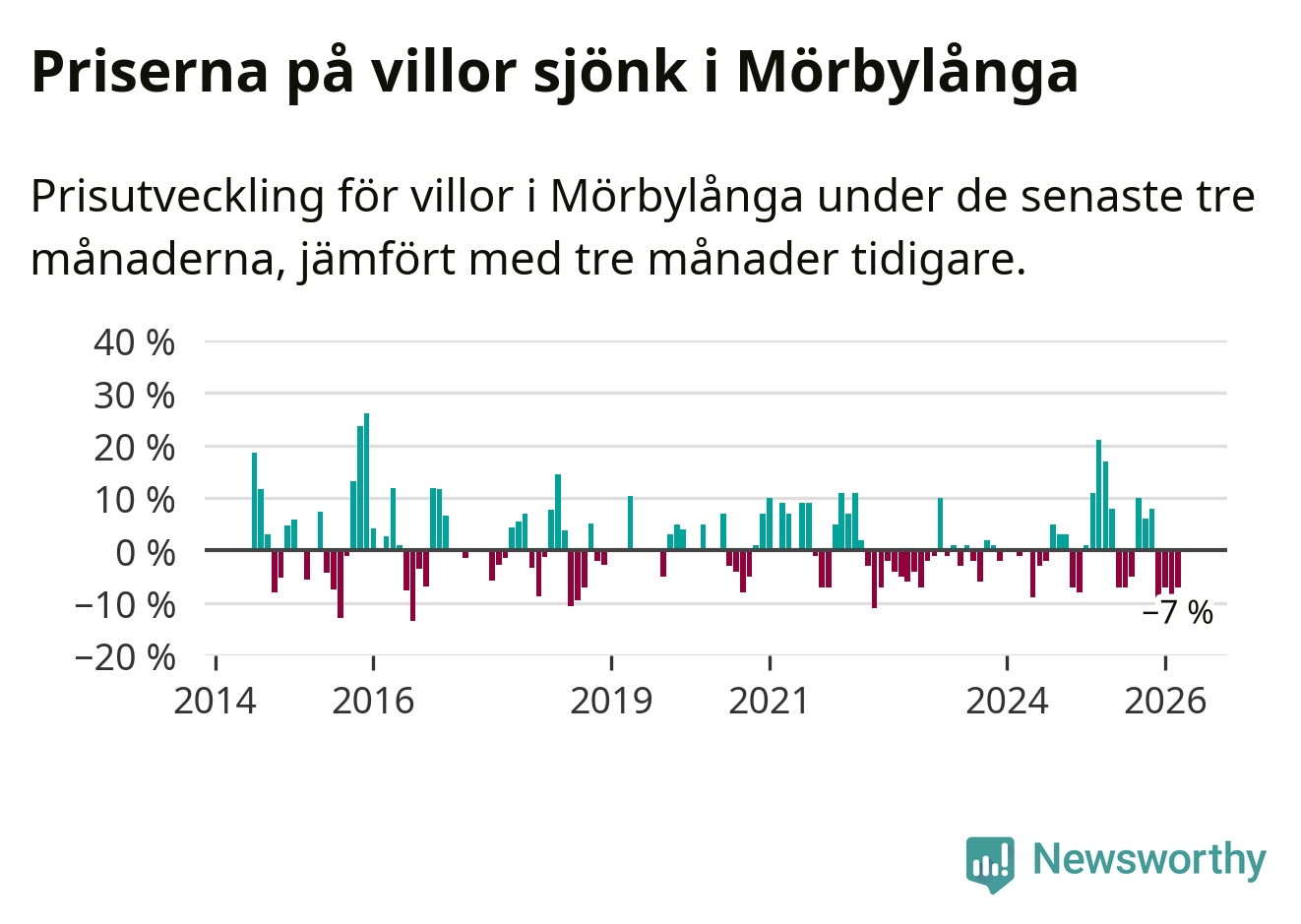 Villapriserna har gått ner i Mörbylånga kommun. Medelpriset på försäljningarna under de senaste tre månaderna visar på en nedgång med 7 procent.