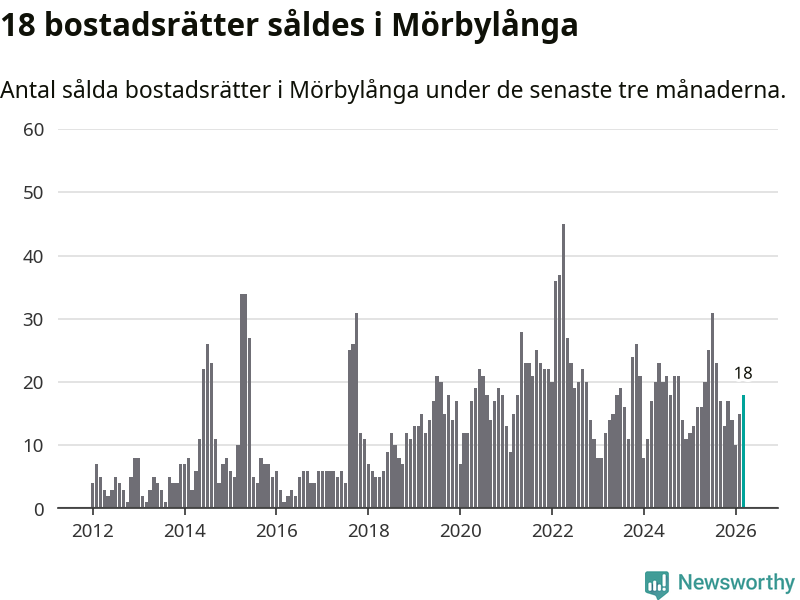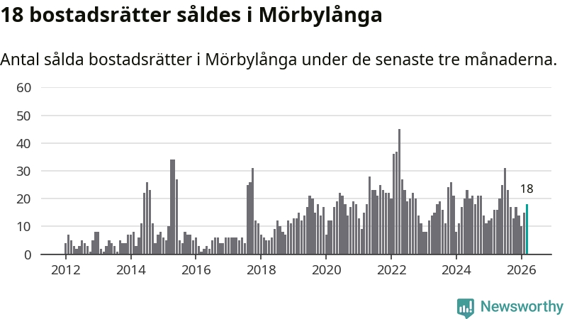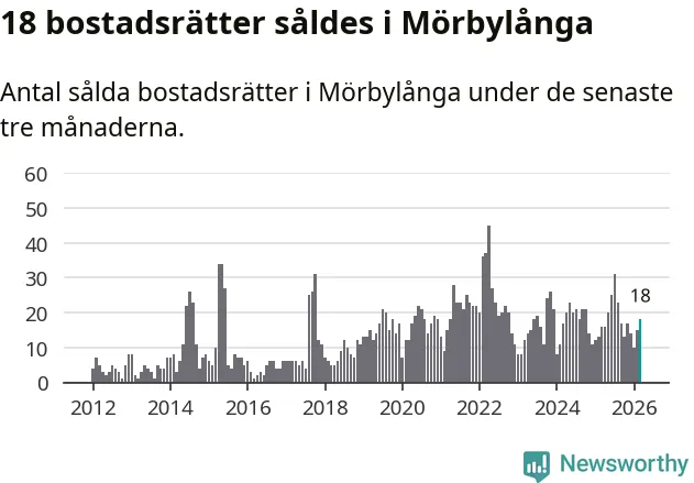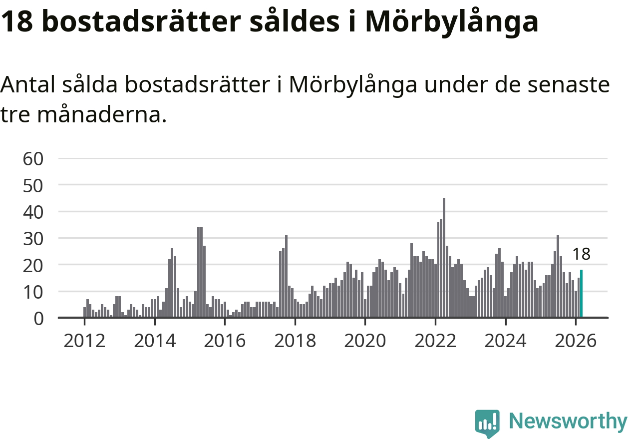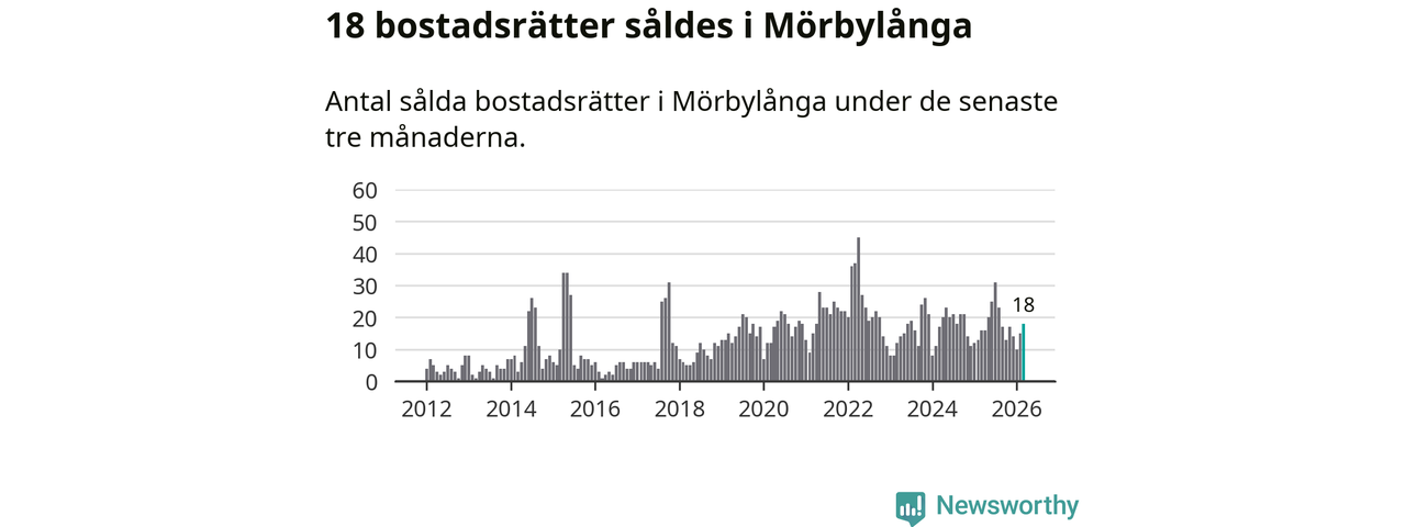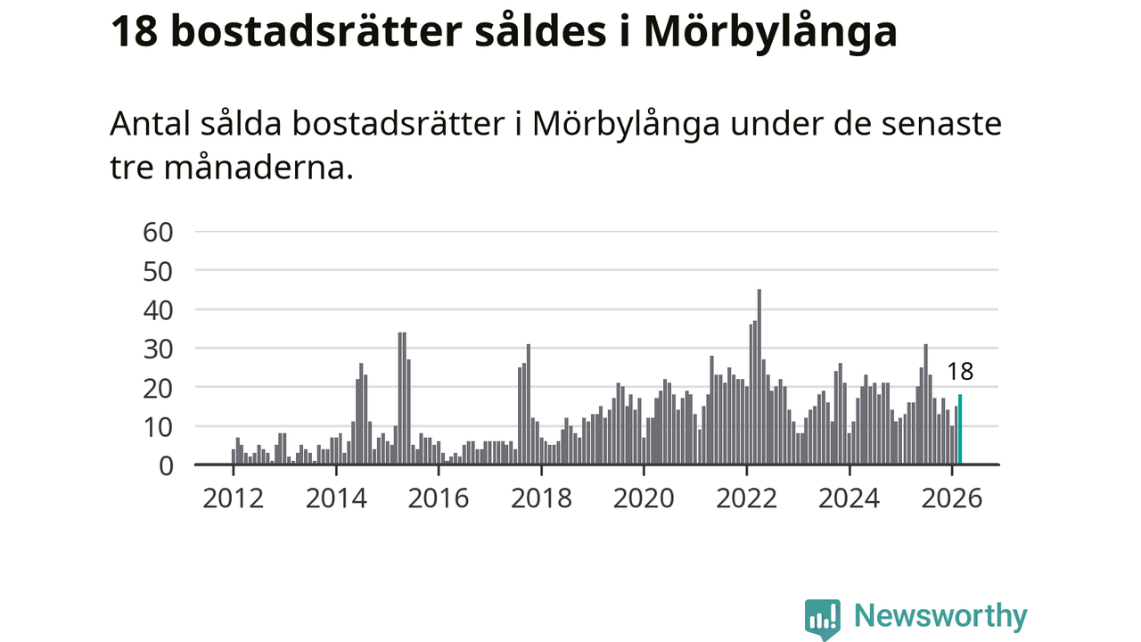 Mellan januari och mars gjordes sammanlagt 18 affärer med bostadsrätter i Mörbylånga kommun. Det kan jämföras med 16 vid motsvarande tid i fjol.