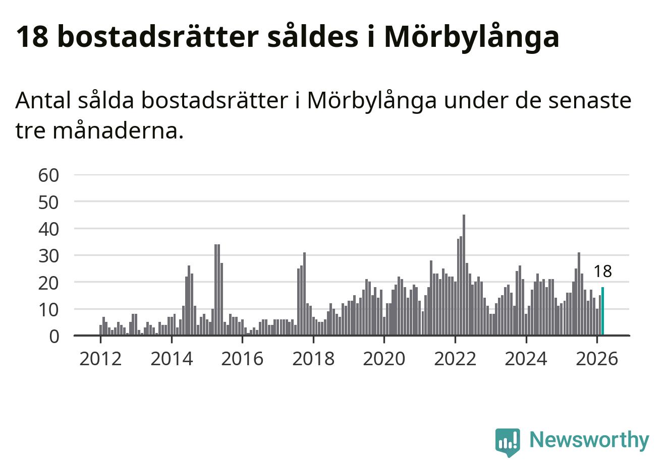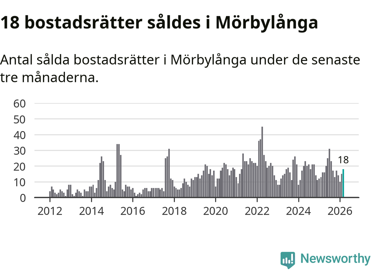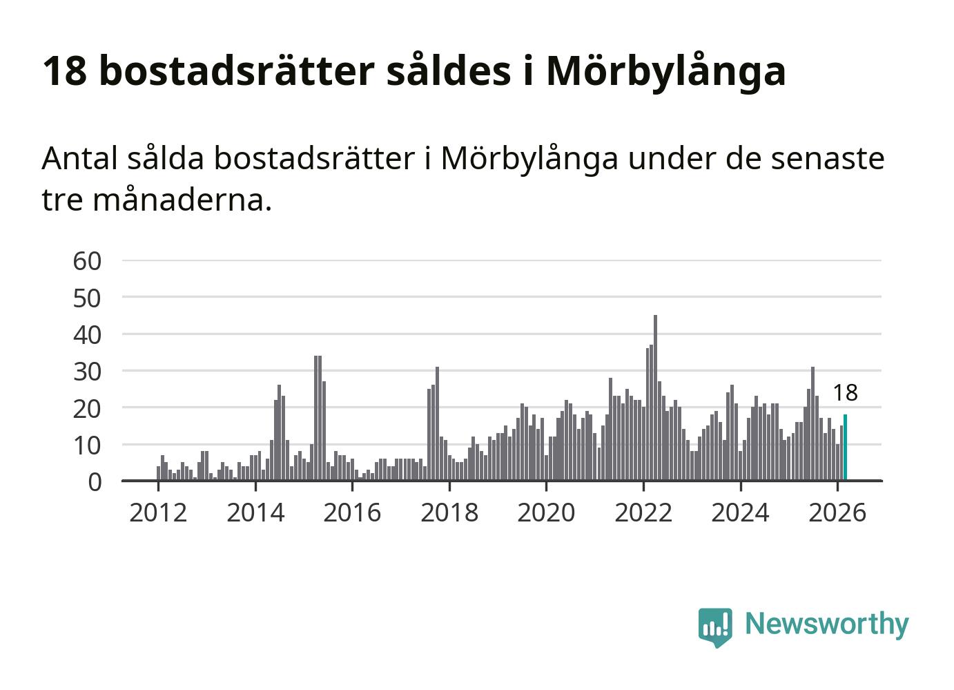 Mellan januari och mars gjordes sammanlagt 18 affärer med bostadsrätter i Mörbylånga kommun. Det kan jämföras med 16 vid motsvarande tid i fjol.