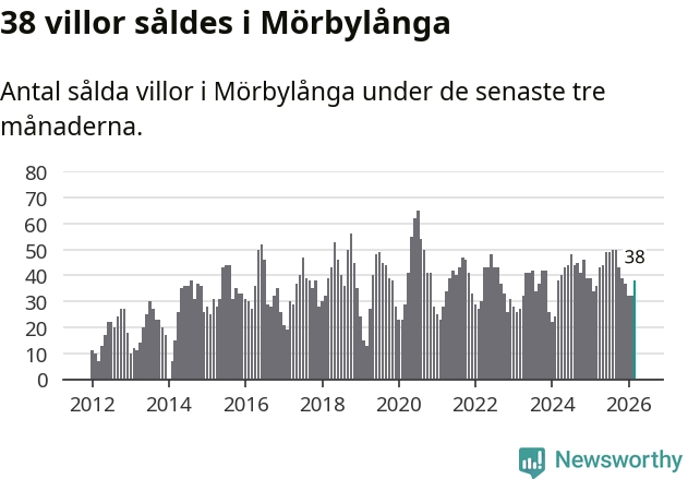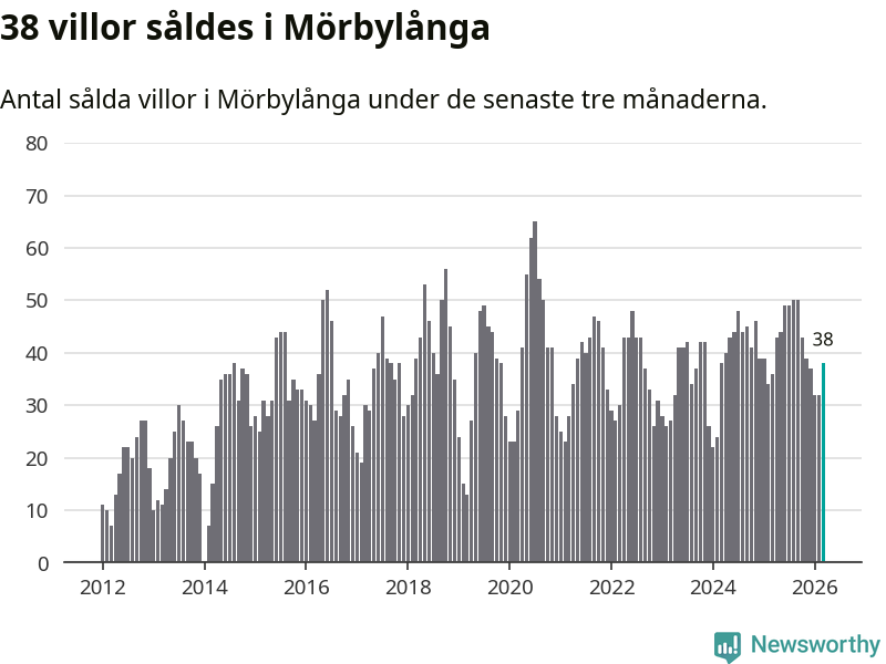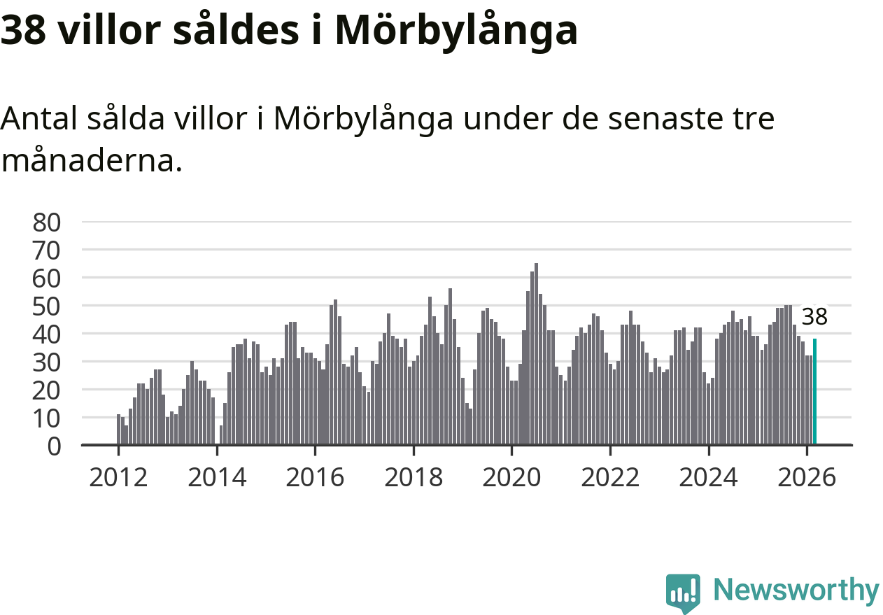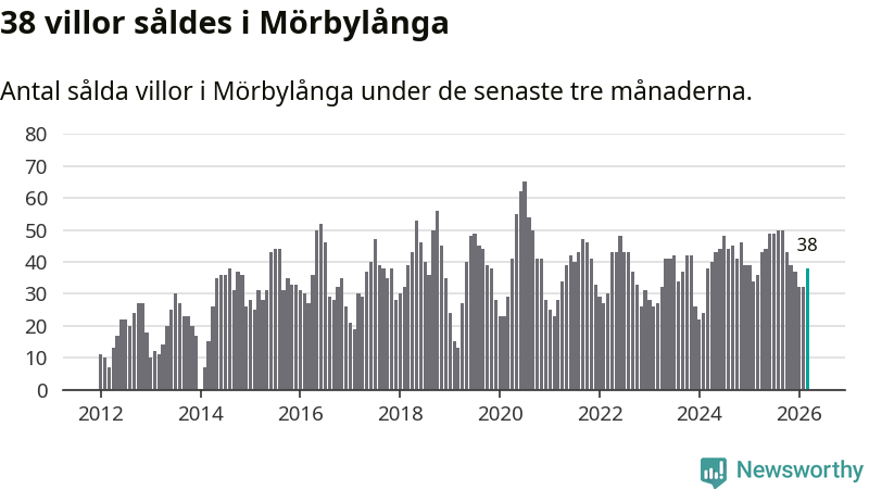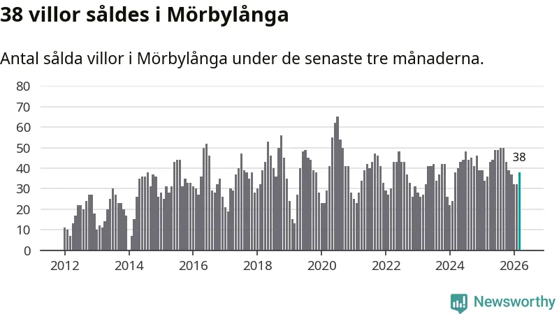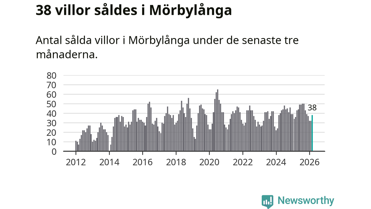Sammanlagt såldes 38 villor i Mörbylånga kommun mellan januari och mars till ett genomsnittligt pris på 3,0 miljoner kronor. I fjol gjordes 36 affärer vid den här tiden på året.