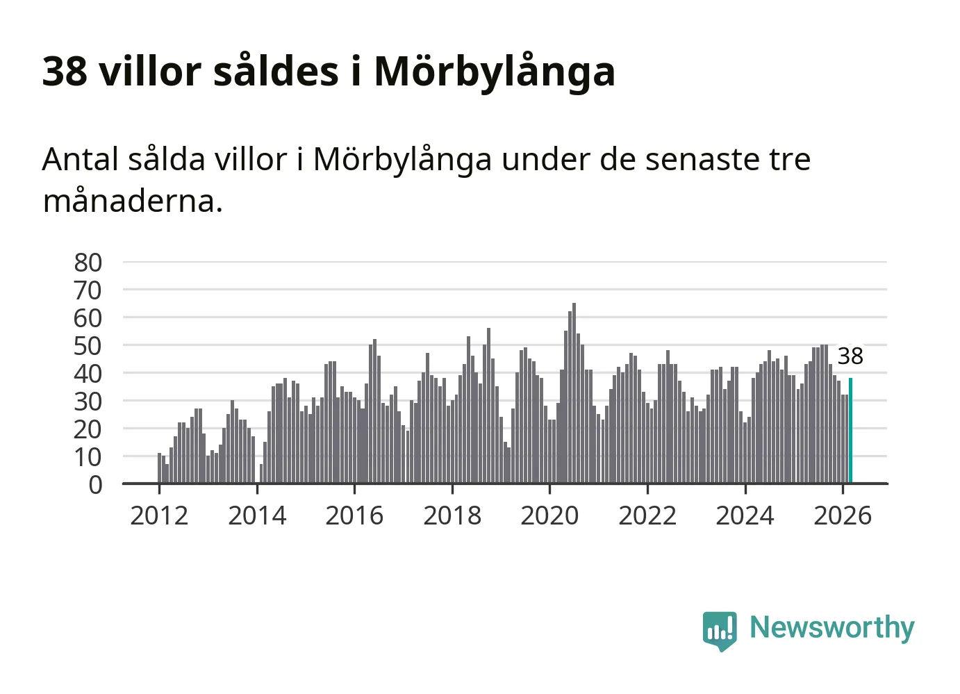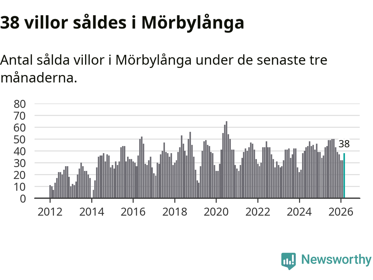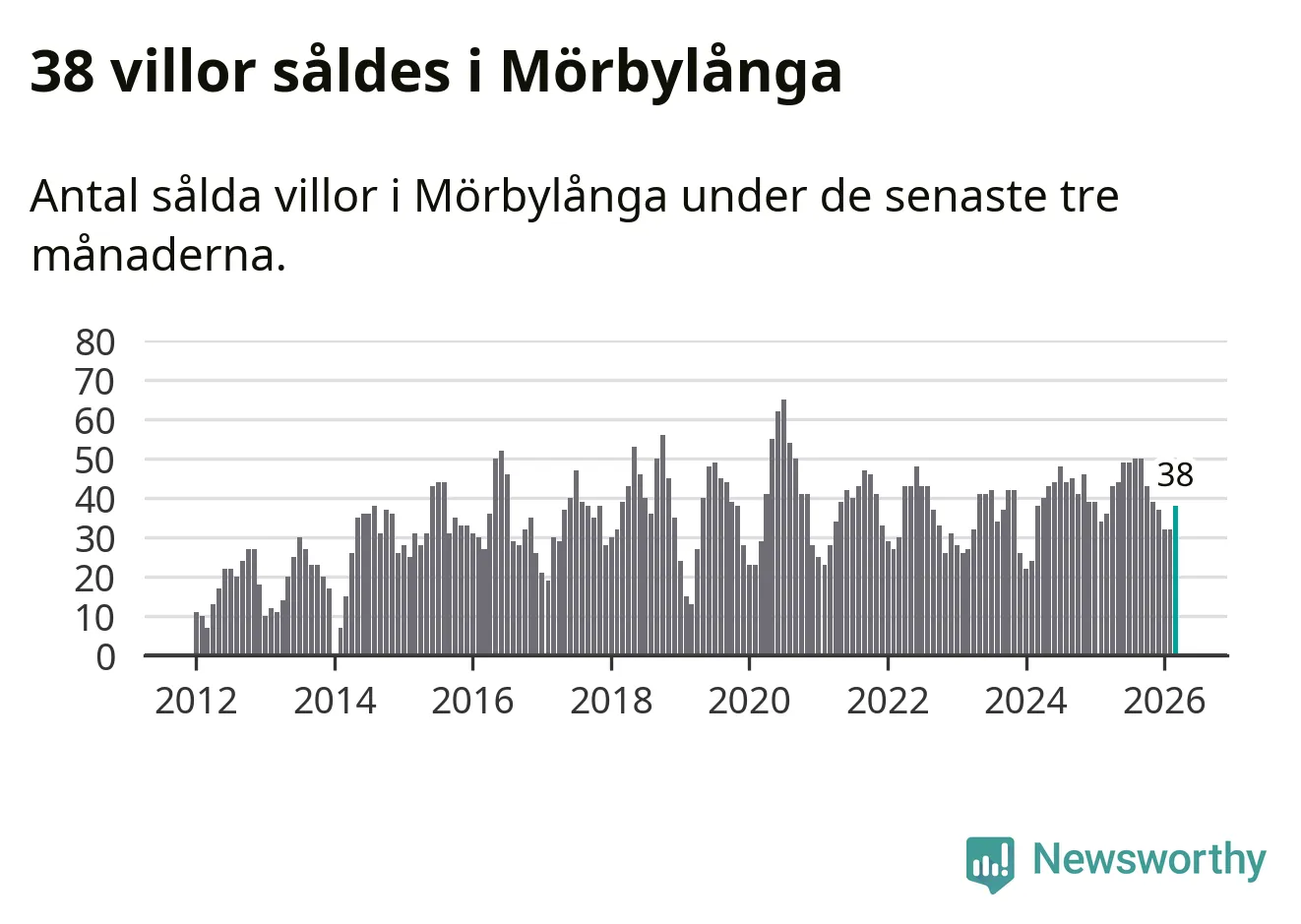 Sammanlagt såldes 38 villor i Mörbylånga kommun mellan januari och mars till ett genomsnittligt pris på 3,0 miljoner kronor. I fjol gjordes 36 affärer vid den här tiden på året.