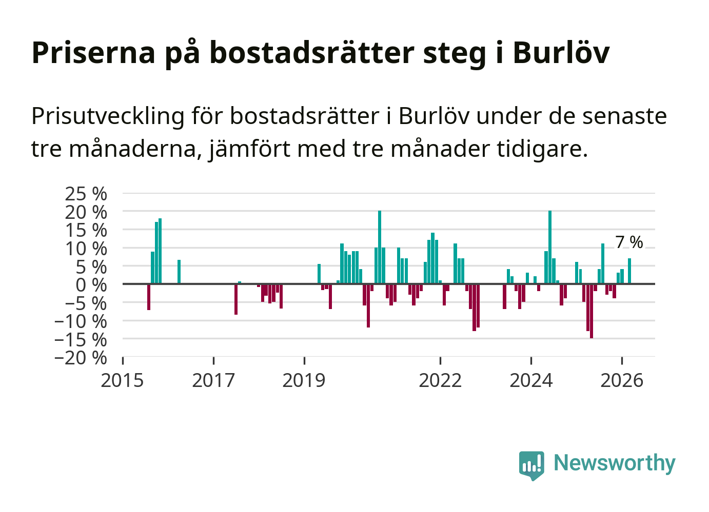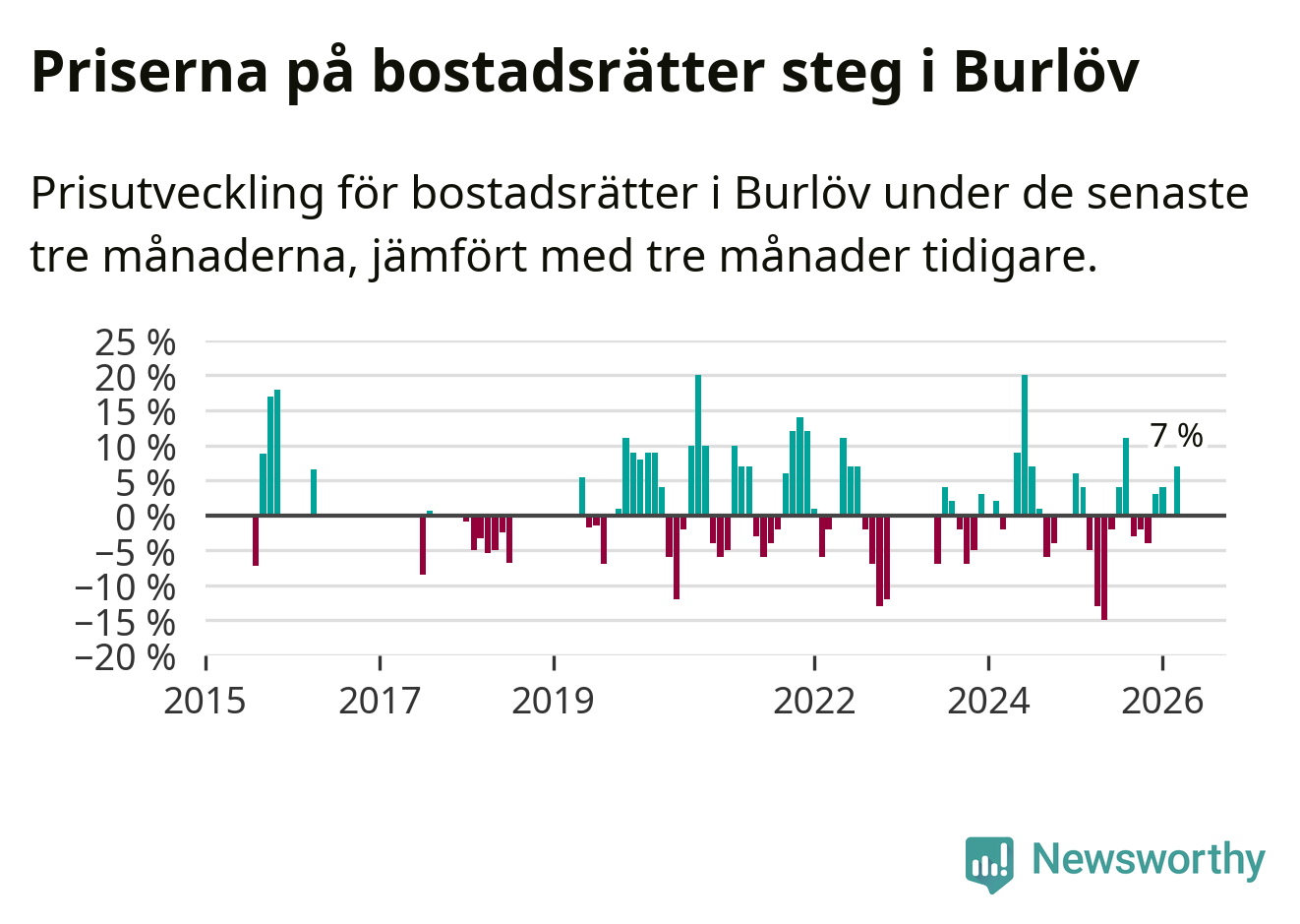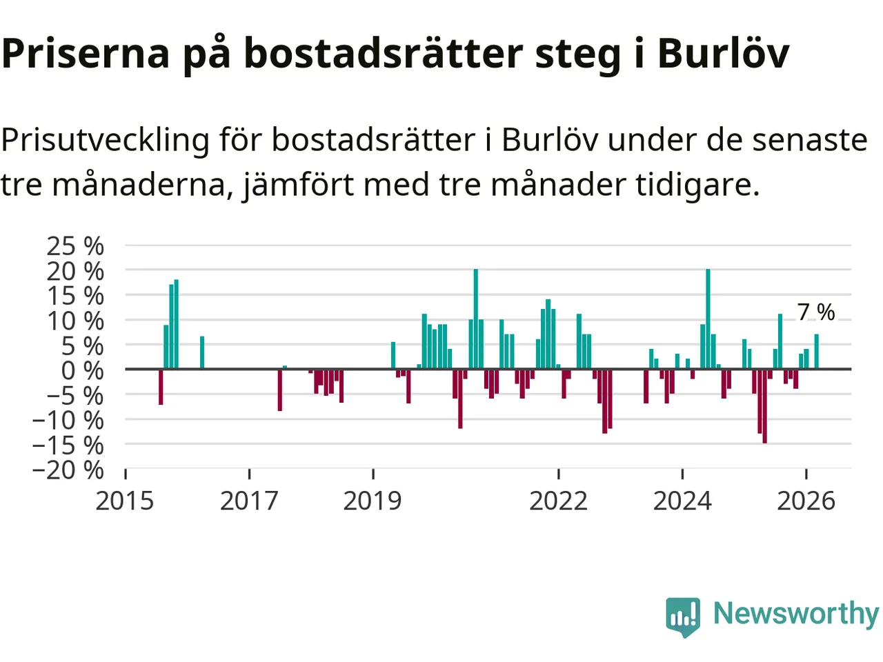 Statistiken visar även på en kännbar prisuppgång i Burlövs kommun. Medelpriset på försäljningarna av bostadsrätter i kommunen var 7 procent högre än för tre månader sedan. Även i hela Skåne ökar priserna på bostadsrätter. I hela länet noterades en prisuppgång på 2 procent.