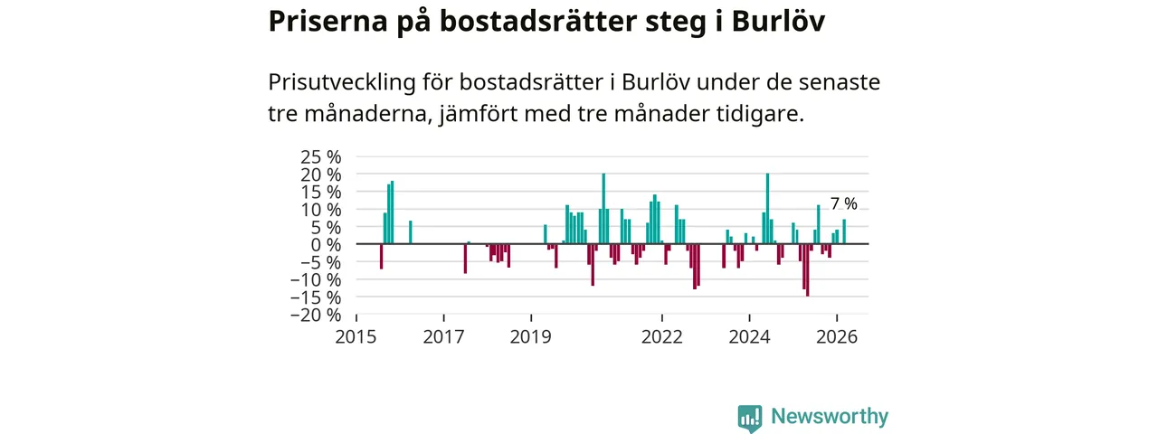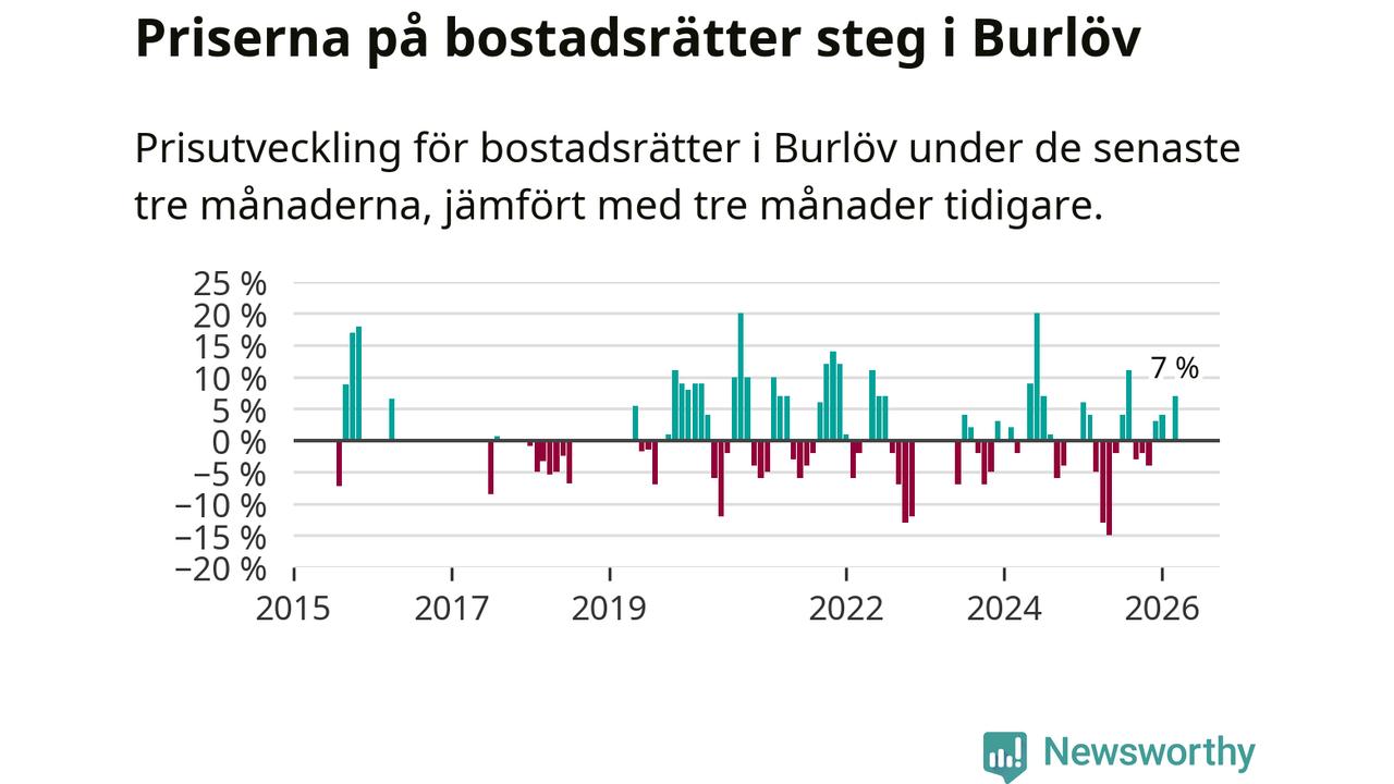 Under januari till mars såldes det tio färre bostadsrätter i Burlöv än snittet för det senaste året.