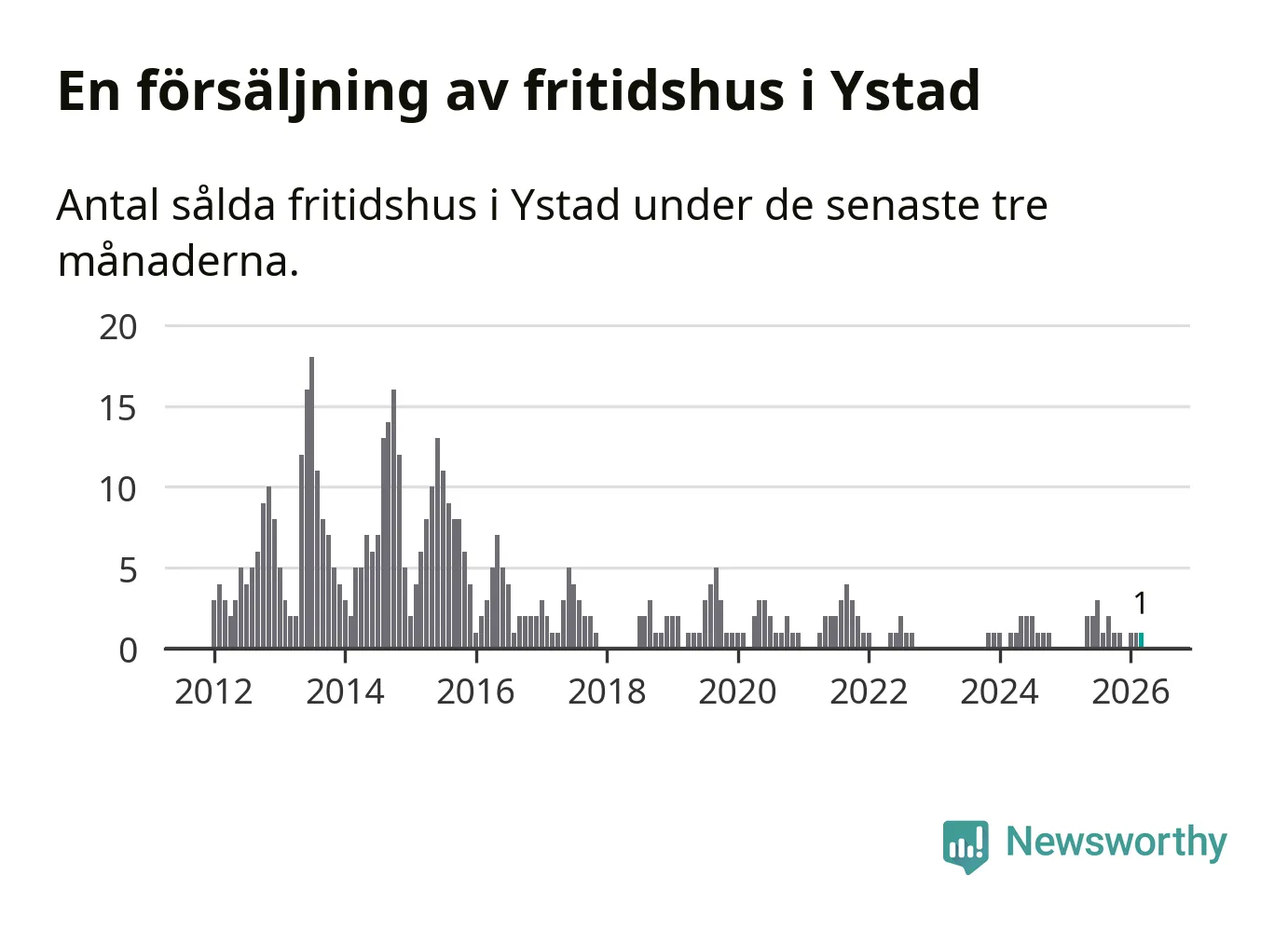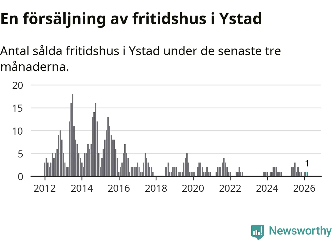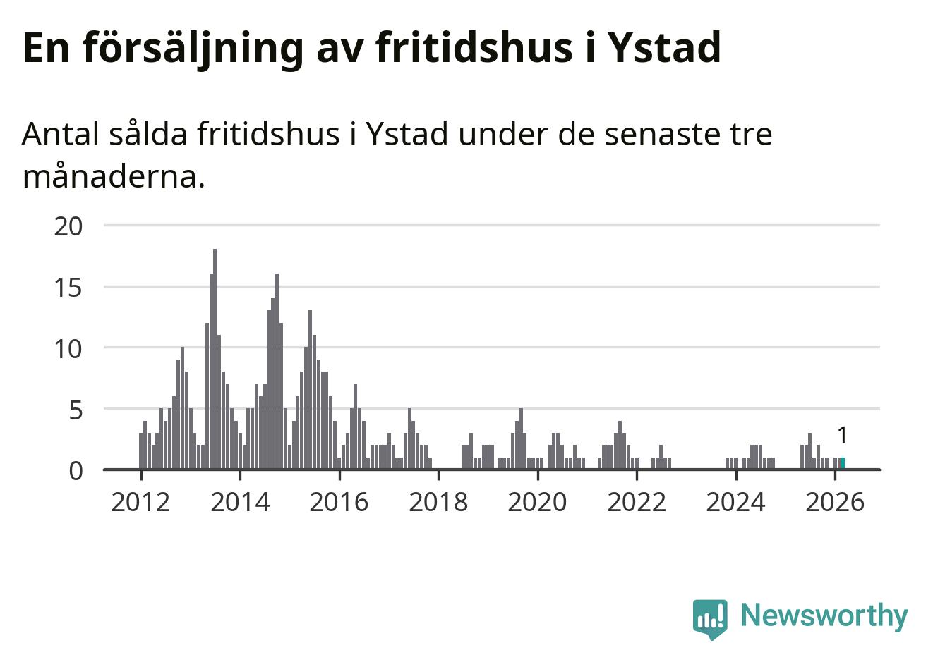 Mellan januari och mars gjordes sammanlagt en affär med fritidshus i Ystads kommun.