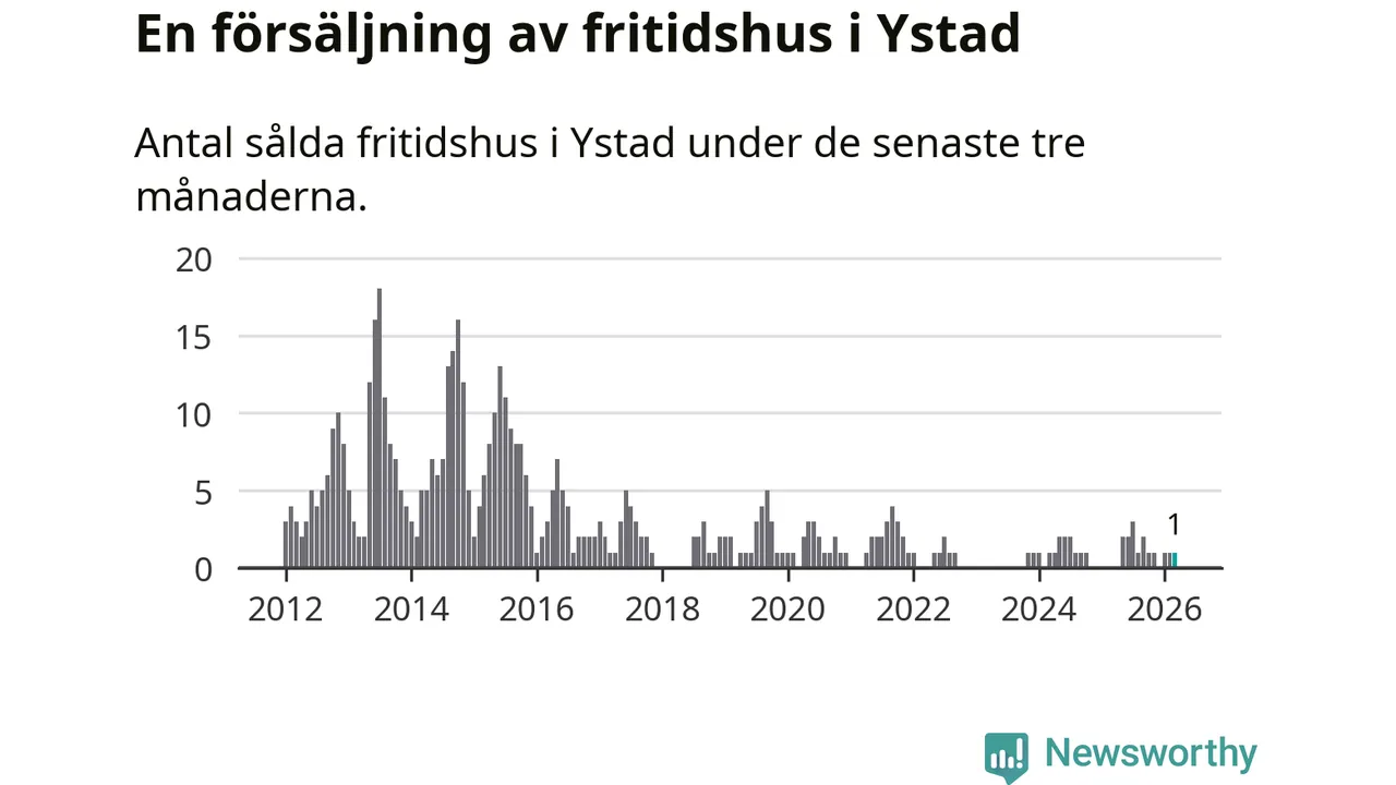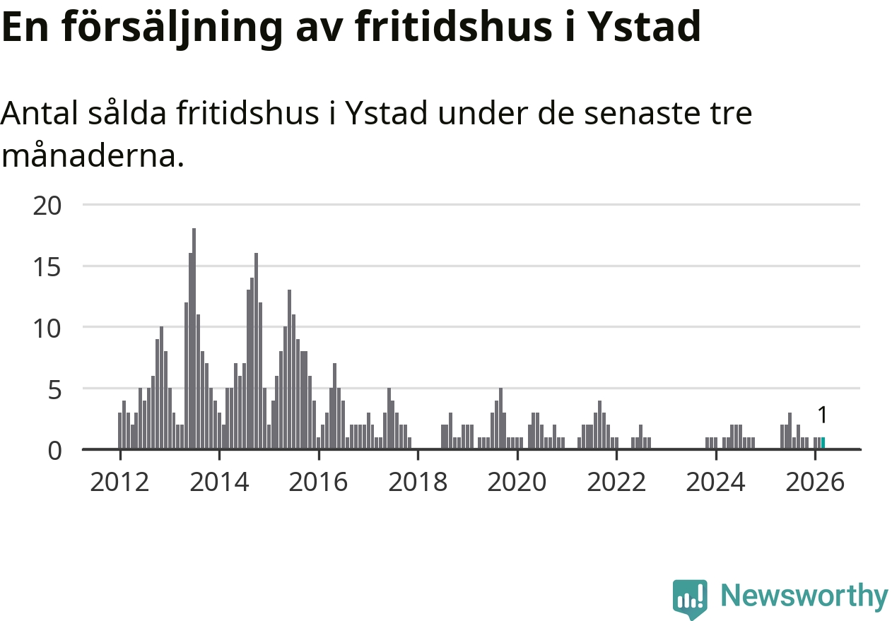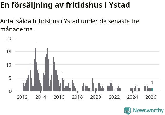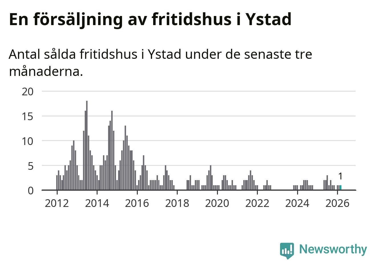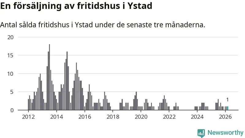 Mellan januari och mars gjordes sammanlagt en affär med fritidshus i Ystads kommun.