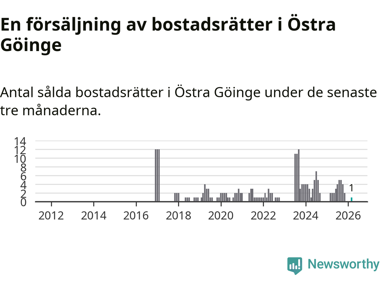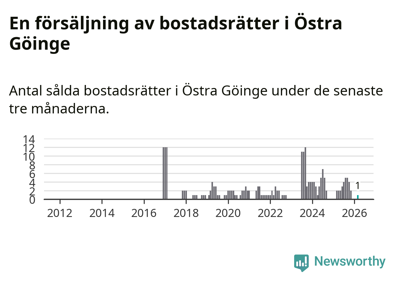 Graf: Antal sålda bostadsrätter i Östra Göinge kommun