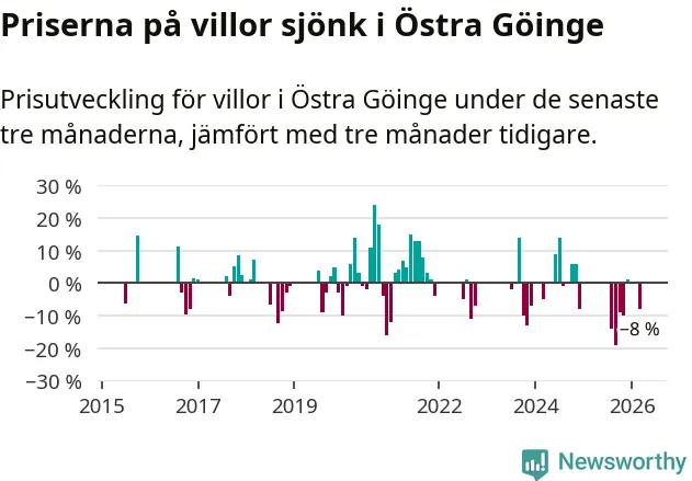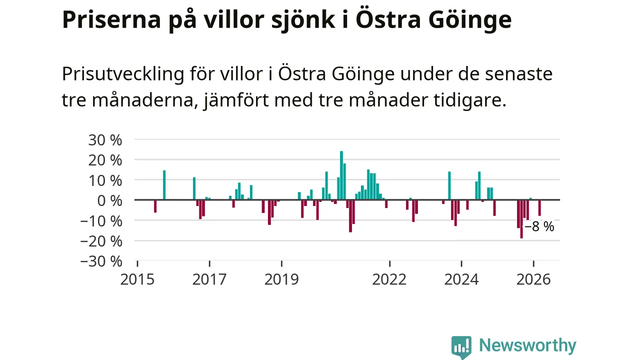 Graf: Prisutveckling för villor i Östra Göinge kommun