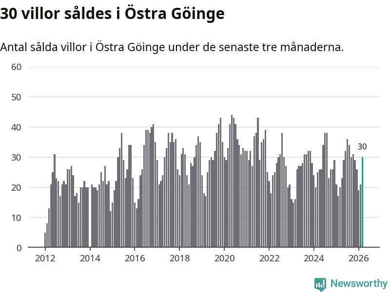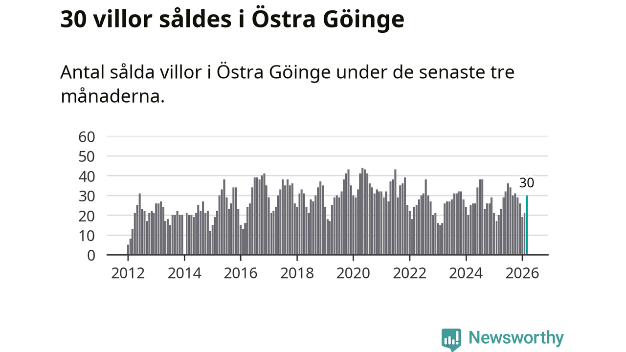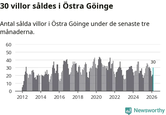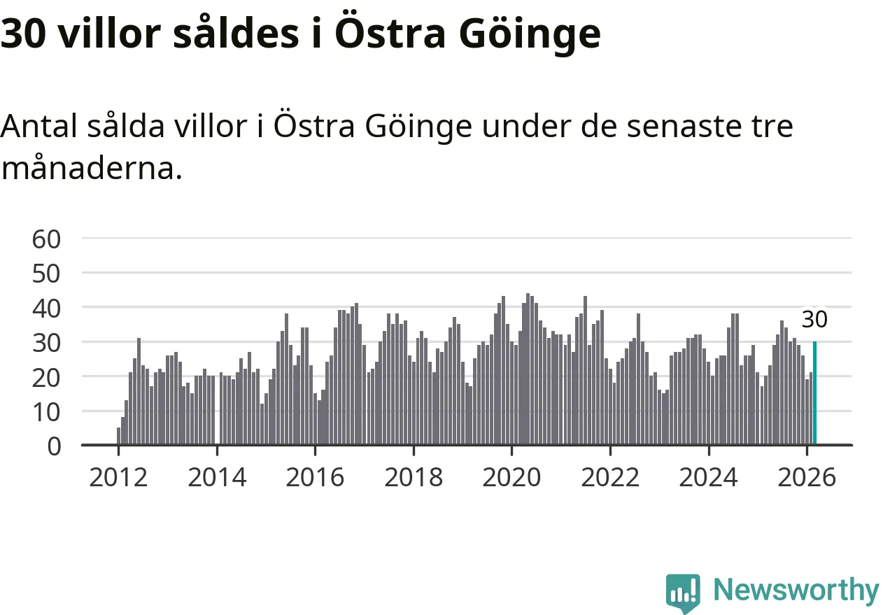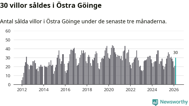 Mellan januari och mars gjordes sammanlagt 30 affärer med villor i Östra Göinge kommun. Det kan jämföras med 20 vid motsvarande tid i fjol.