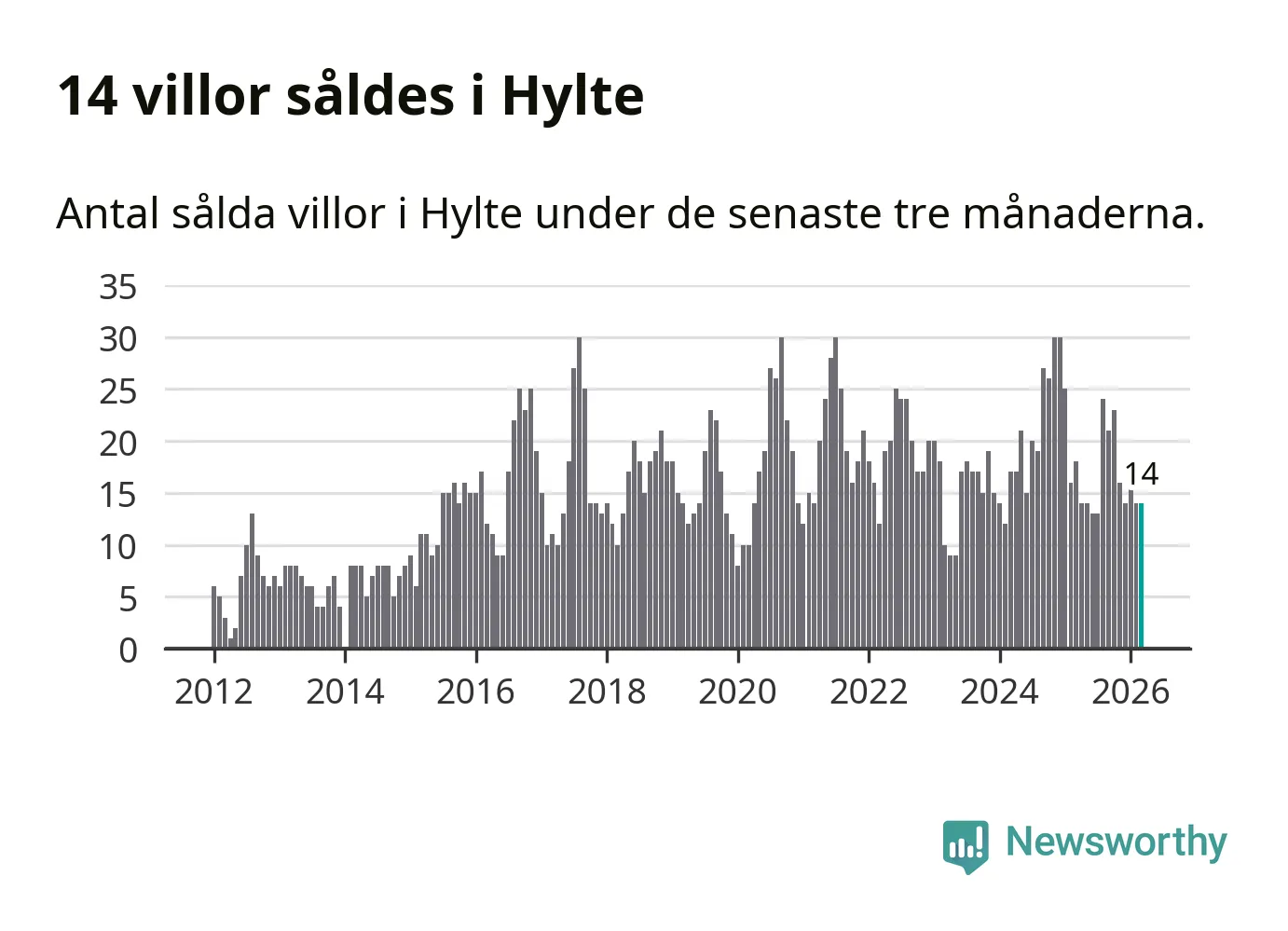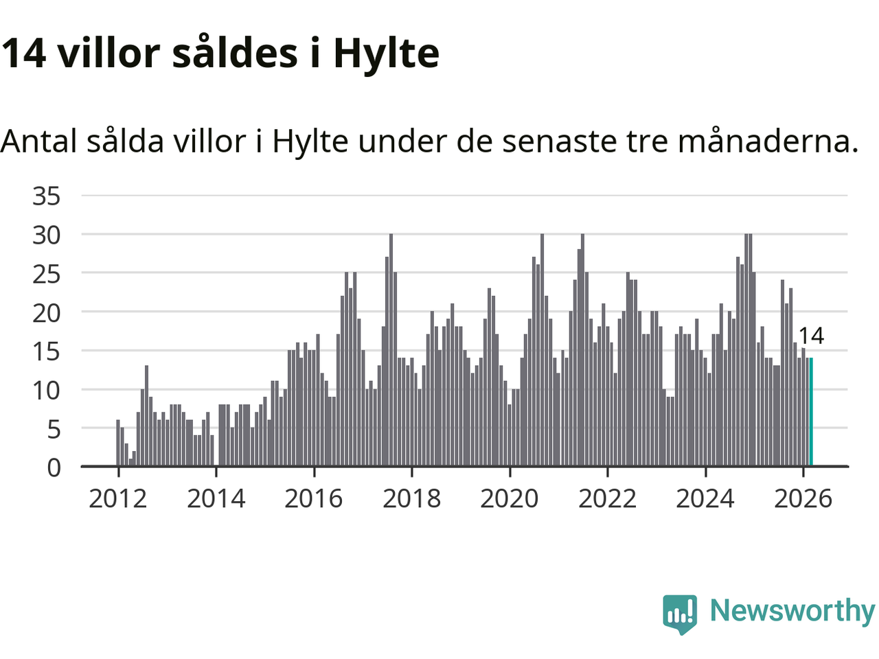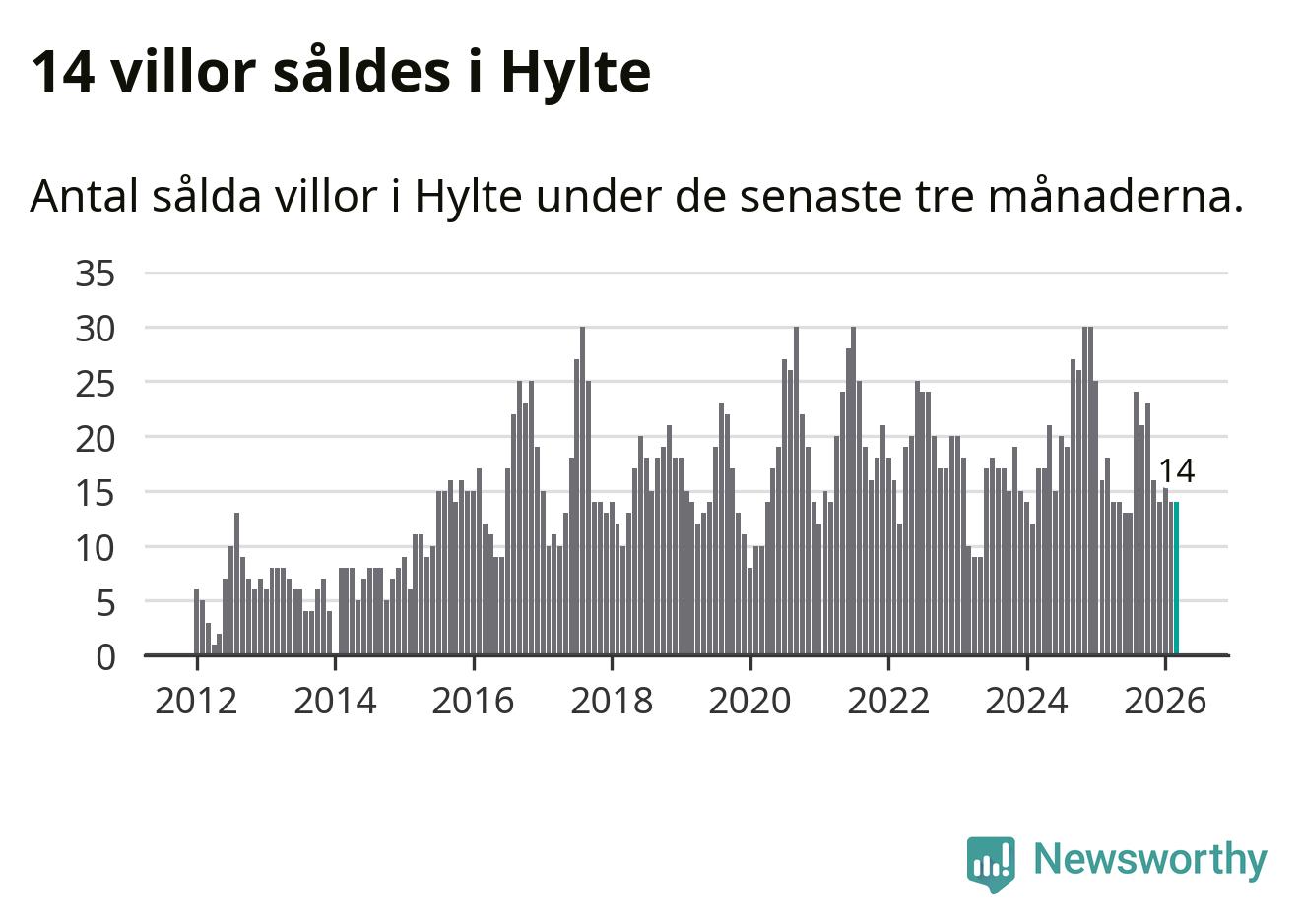 Mellan januari och mars gjordes sammanlagt 14 affärer med villor i Hylte kommun. Det kan jämföras med 18 vid motsvarande tid i fjol.