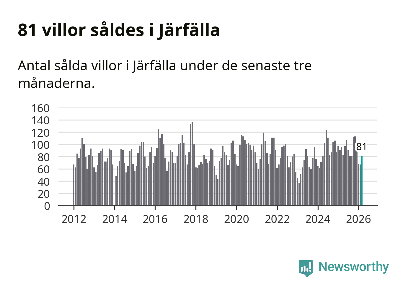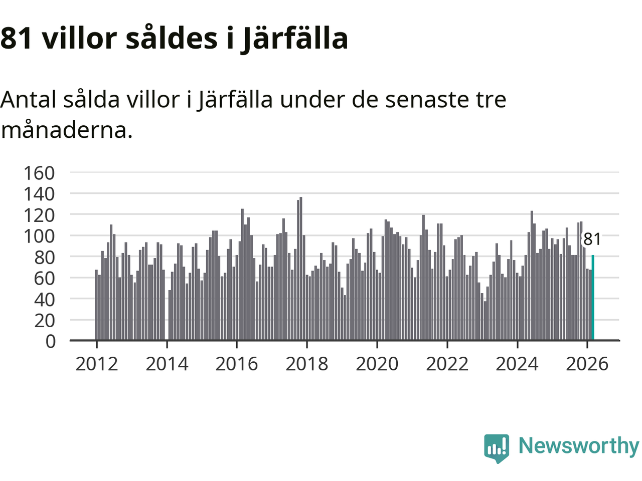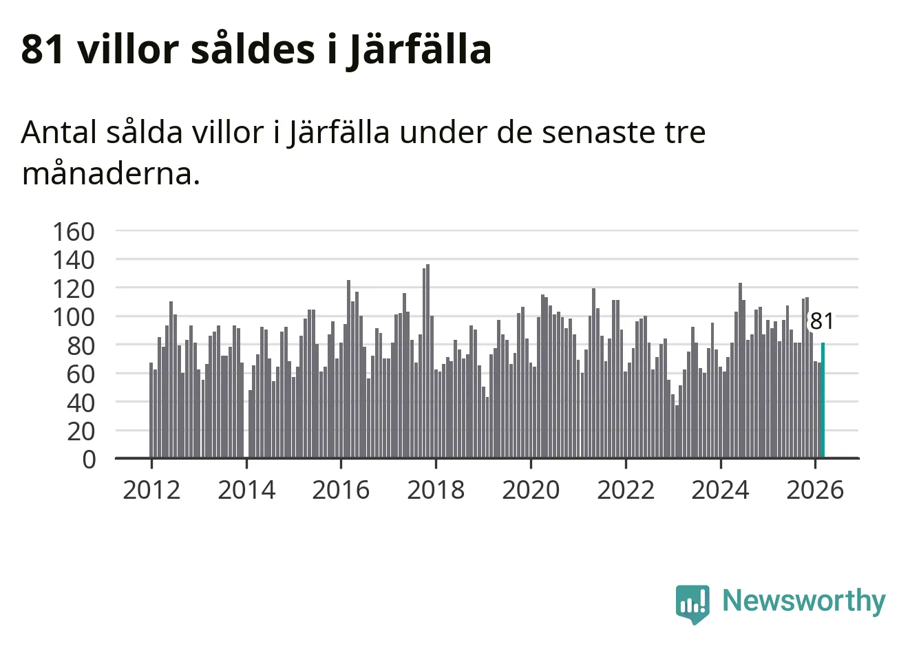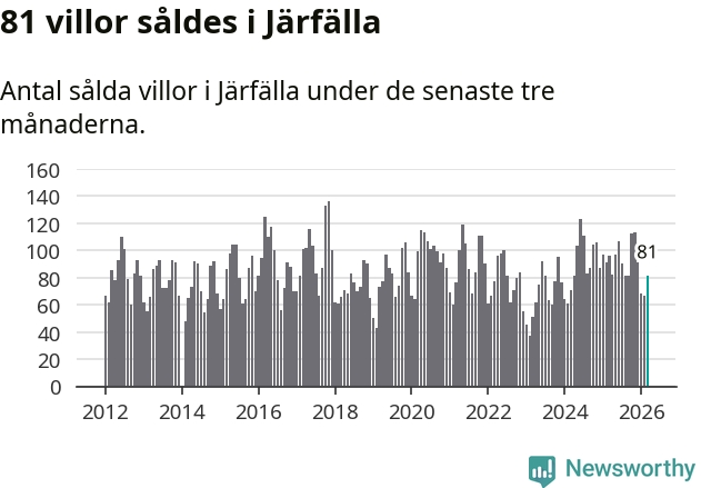 | Järfälla | −2 % ▼ | 81 | 5,3 miljoner |