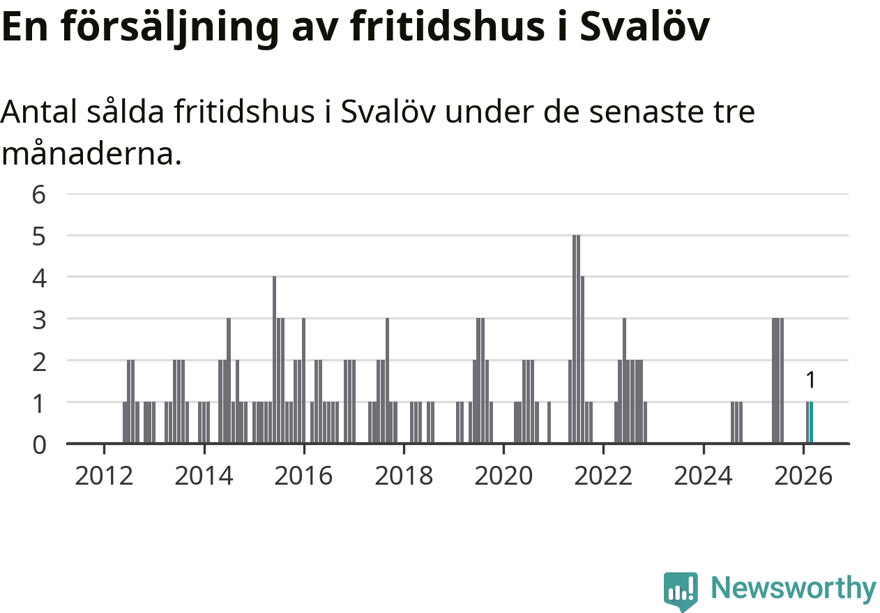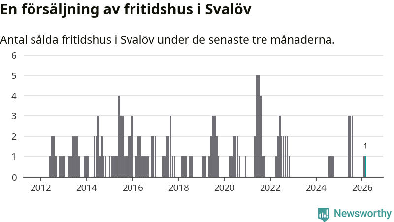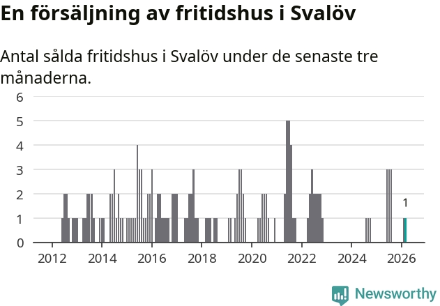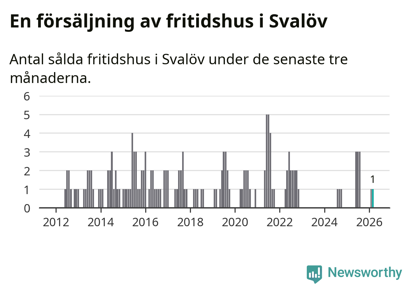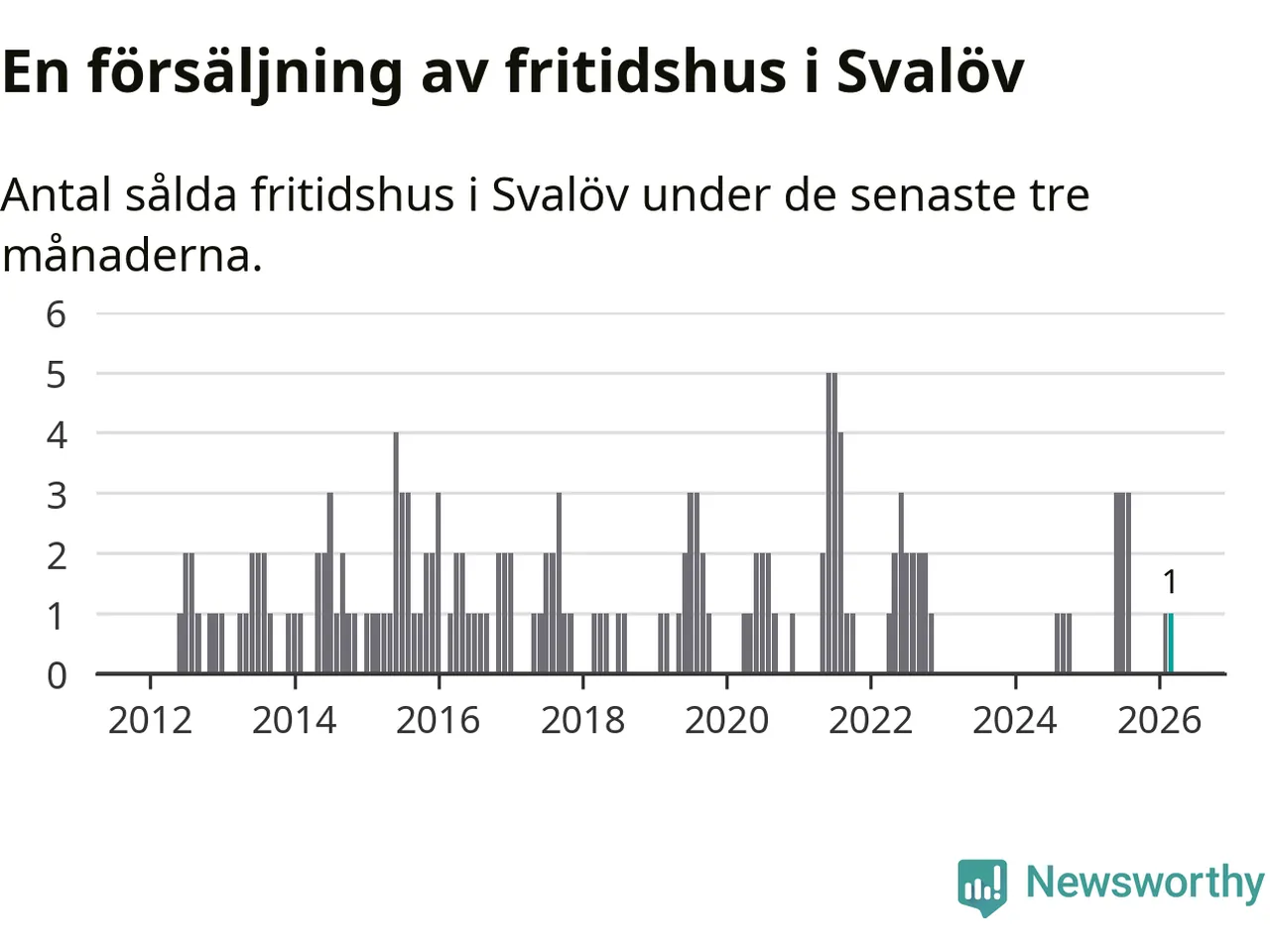 Mellan januari och mars gjordes sammanlagt en affär med fritidshus i Svalövs kommun.