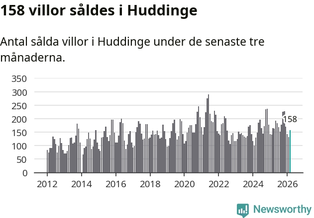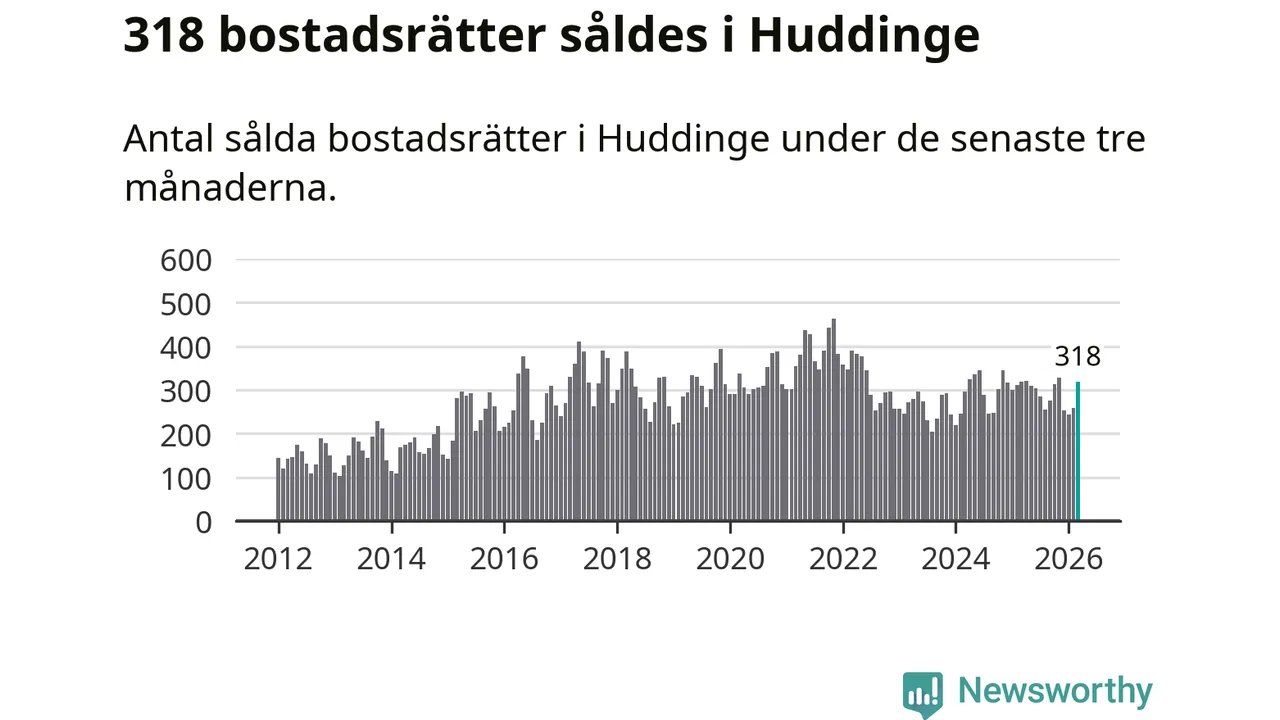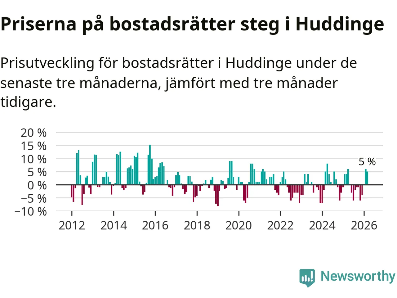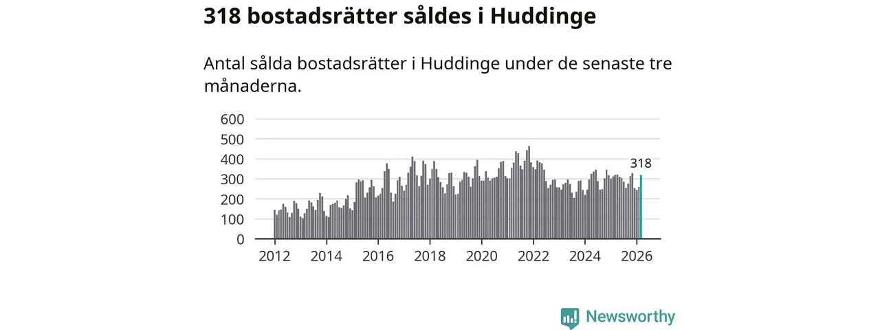 | Huddinge | +3 % ▲ | 158 | 6,8 miljoner |