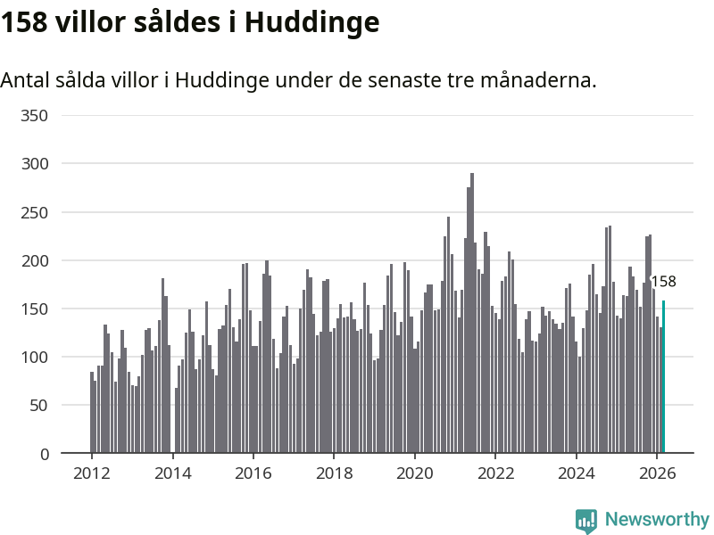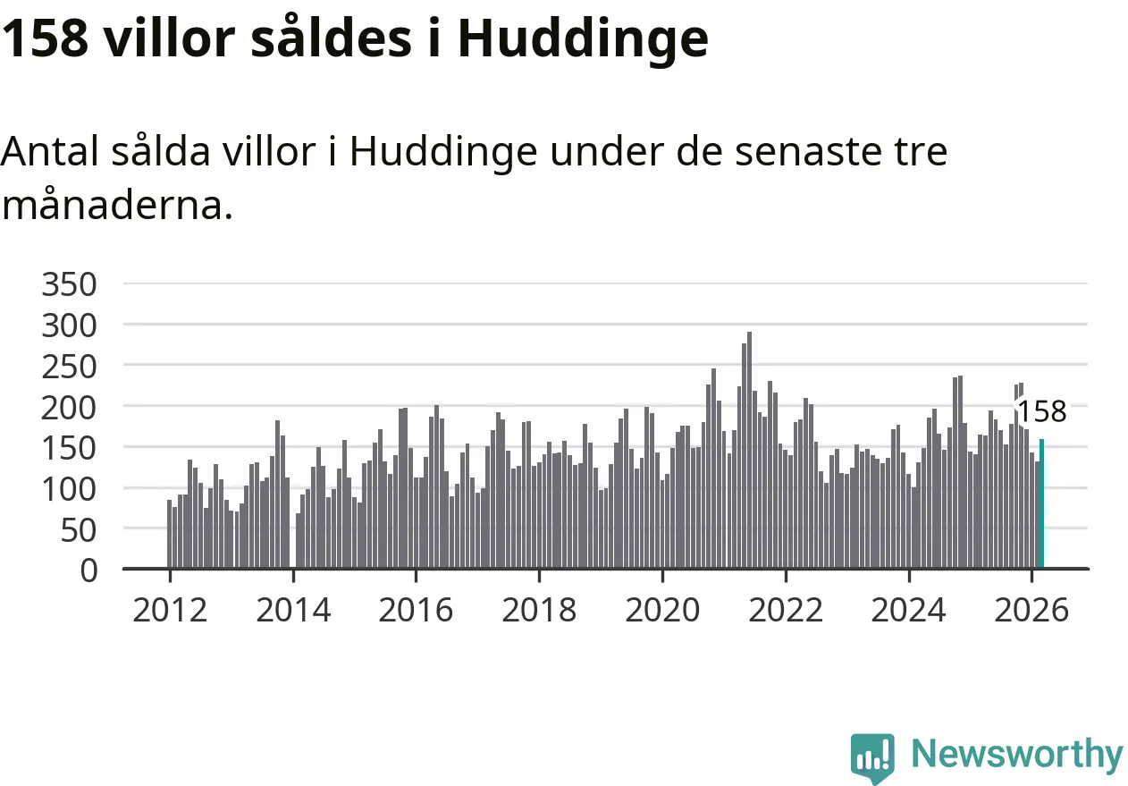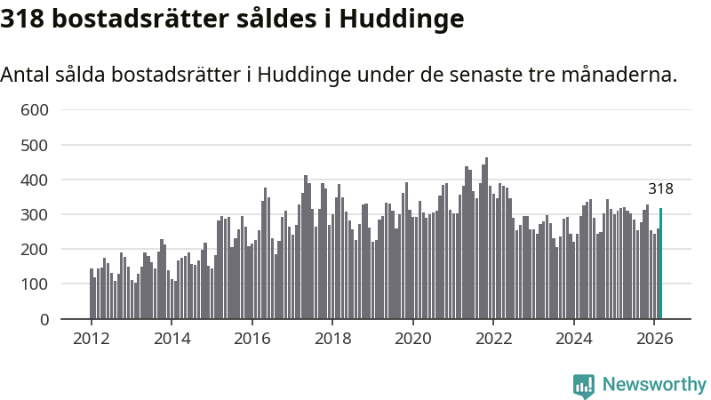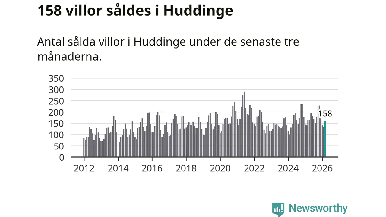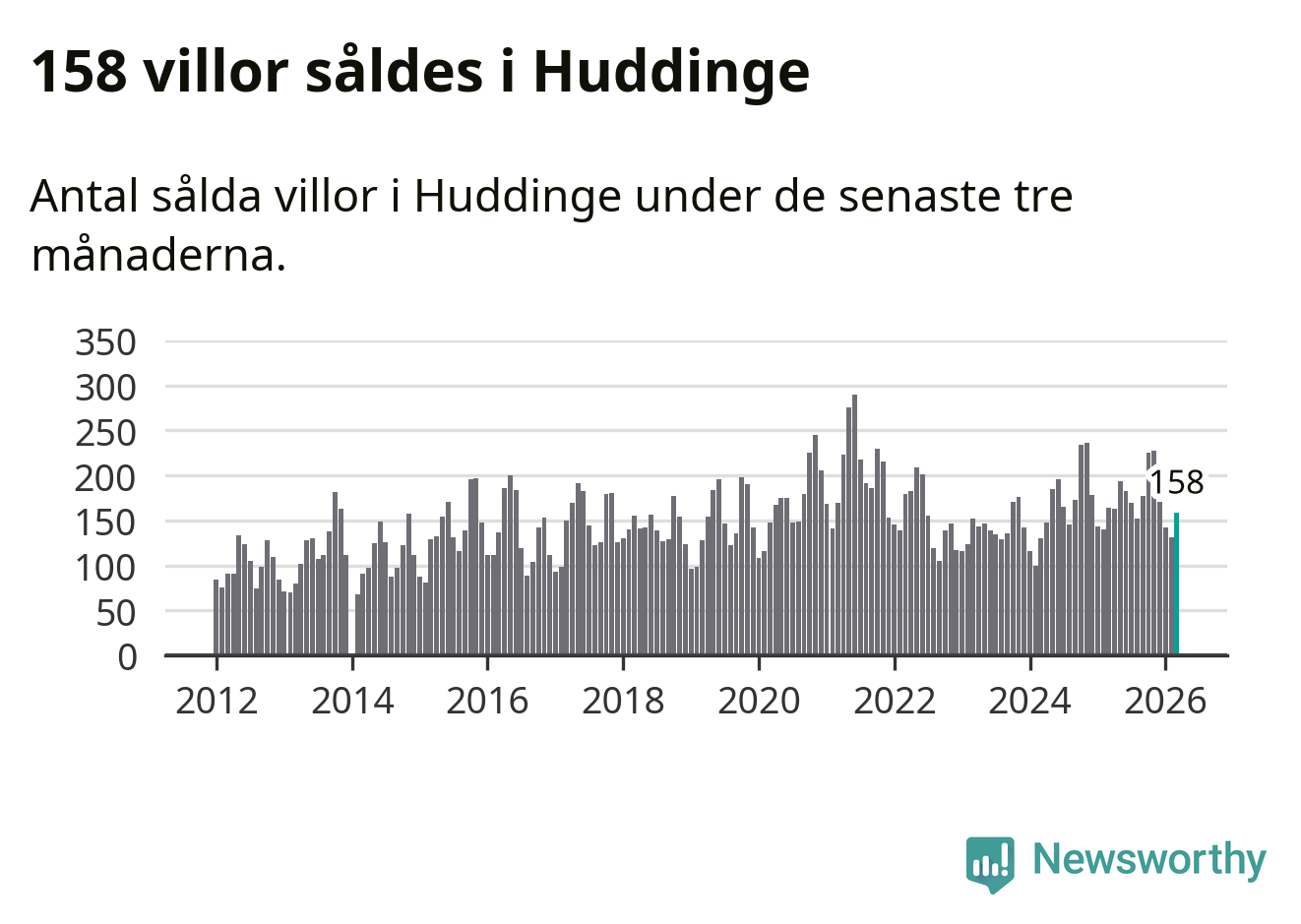| Huddinge | +3 % ▲ | 158 | 6,8 miljoner |