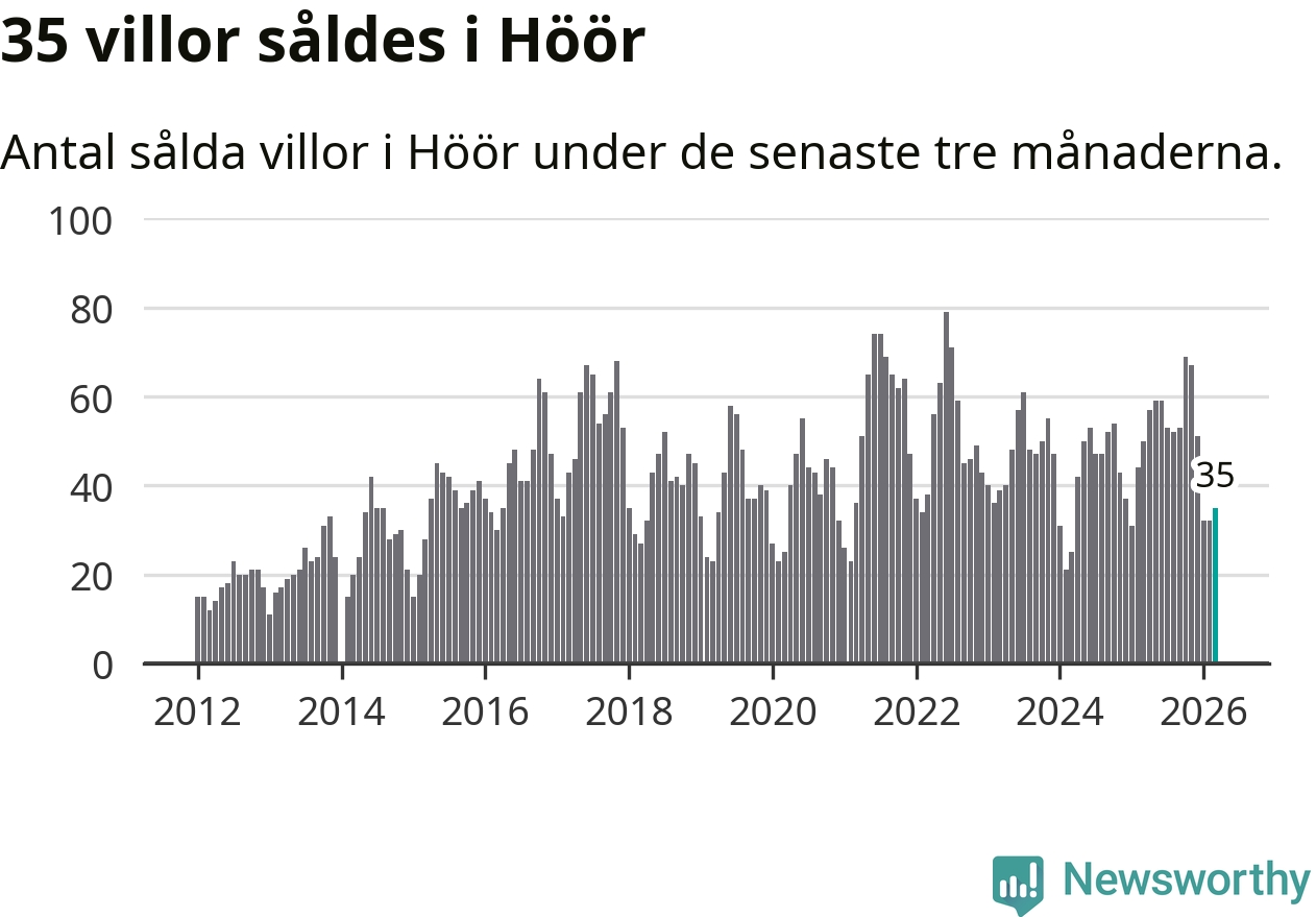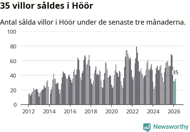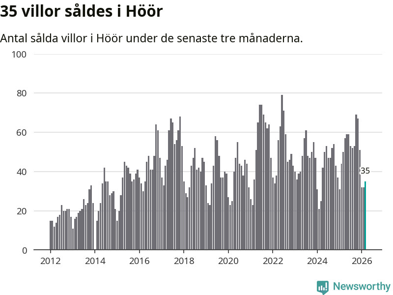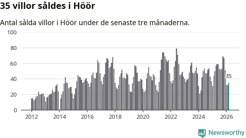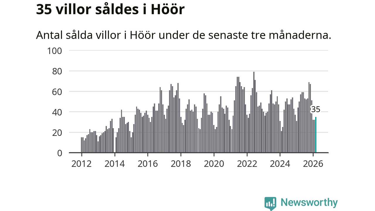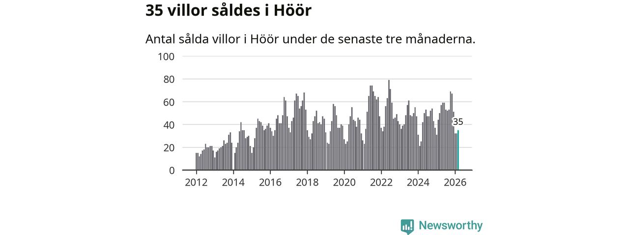 Sammanlagt såldes 35 villor i Höörs kommun mellan januari och mars till ett genomsnittligt pris på 2,7 miljoner kronor. I fjol gjordes 50 affärer vid den här tiden på året.