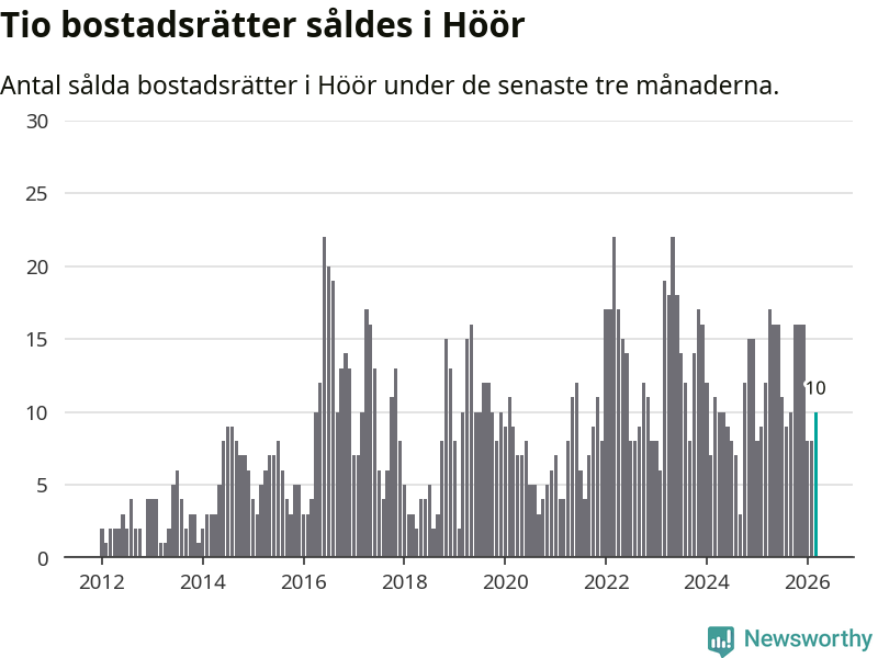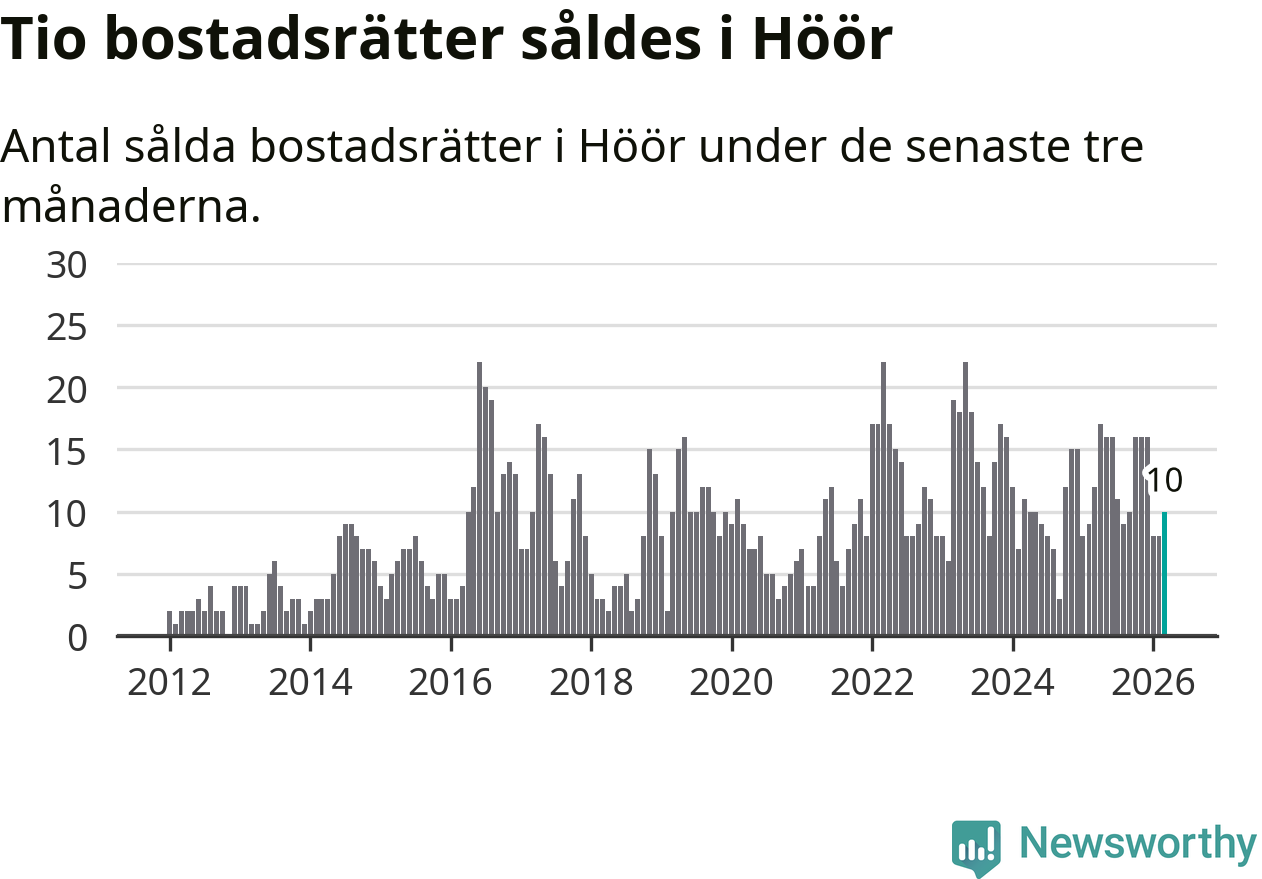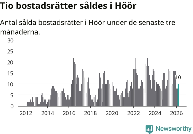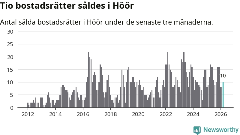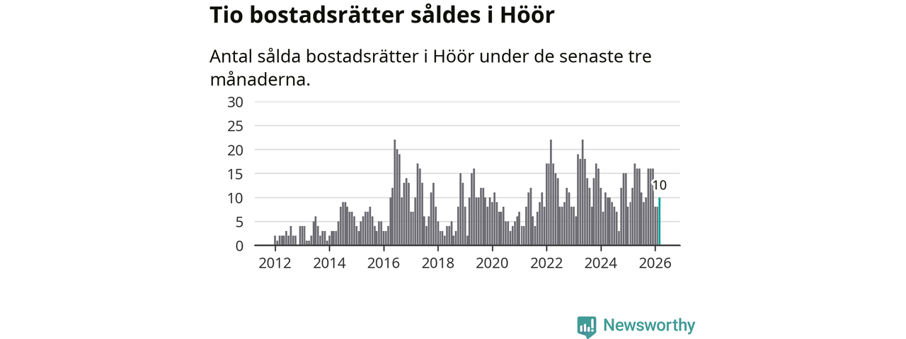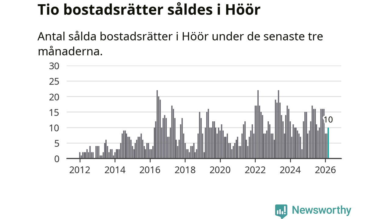Mellan januari och mars gjordes sammanlagt tio affärer med bostadsrätter i Höörs kommun. Det kan jämföras med tolv vid motsvarande tid i fjol.
