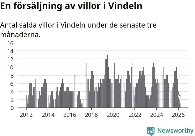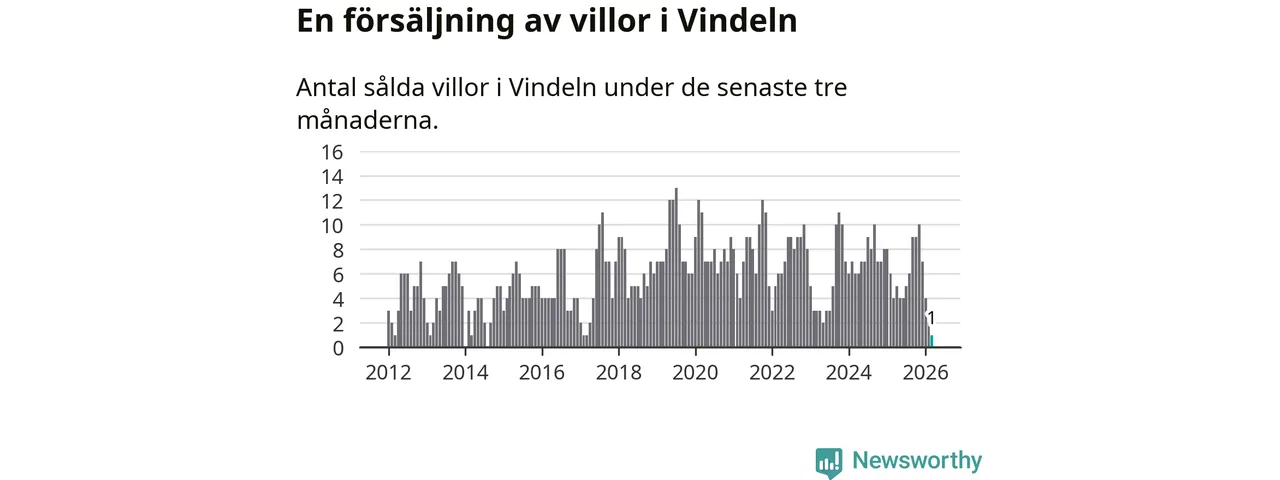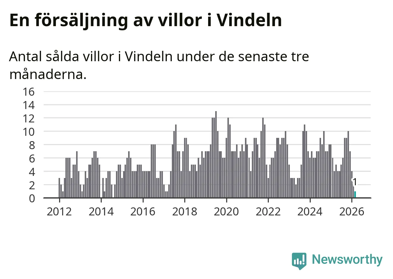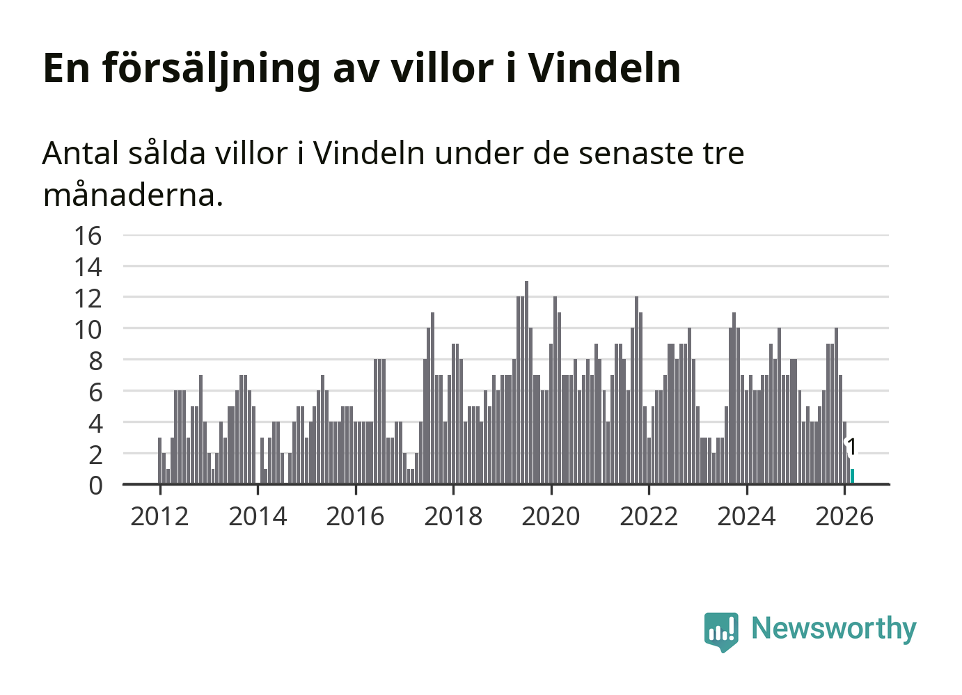 Mellan januari och mars gjordes sammanlagt en affär med villor i Vindelns kommun. Det kan jämföras med fyra vid motsvarande tid i fjol.