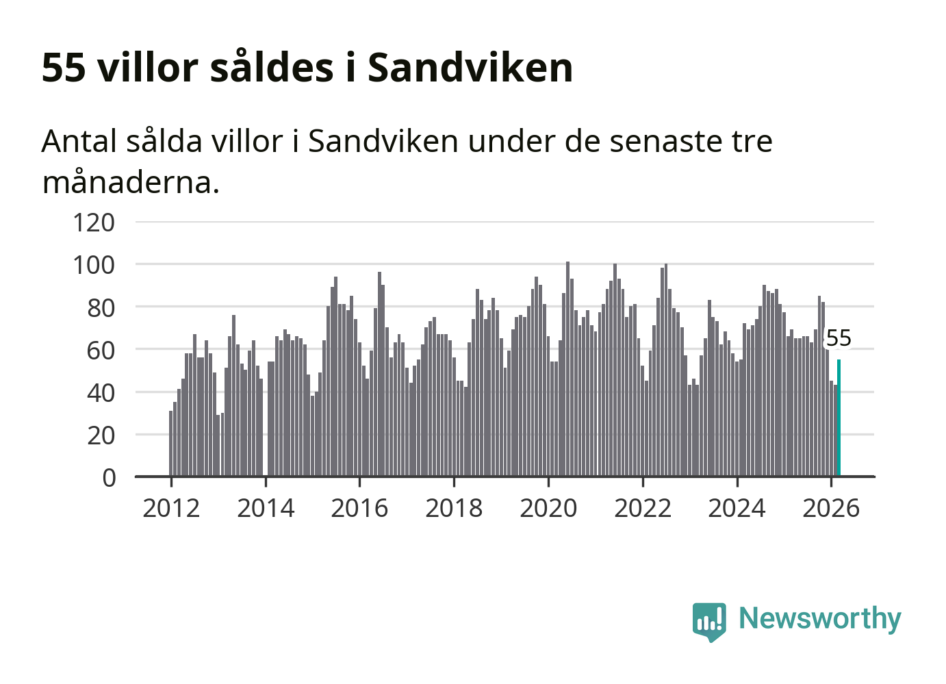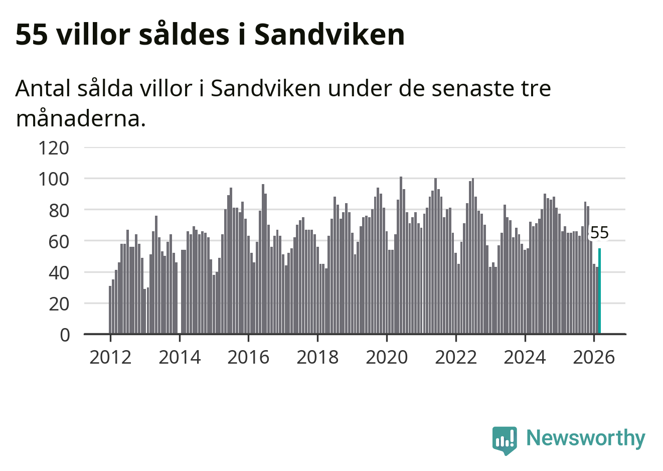 | Sandviken | −4 % ▼ | 55 | 2,0 miljoner |