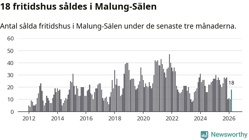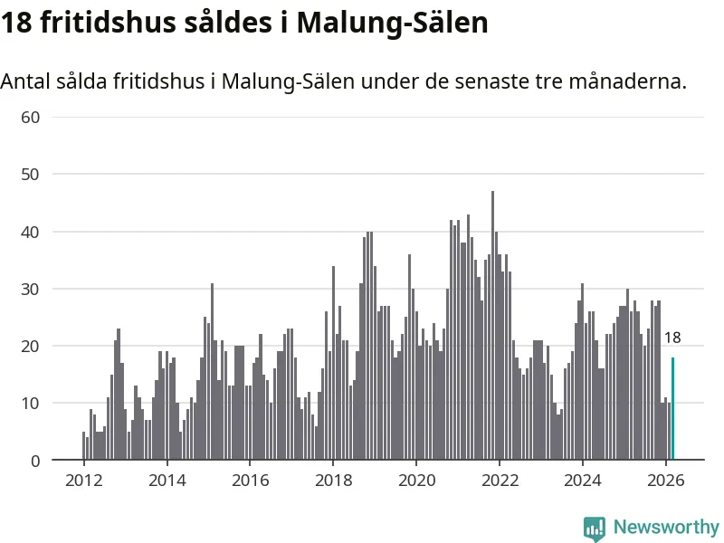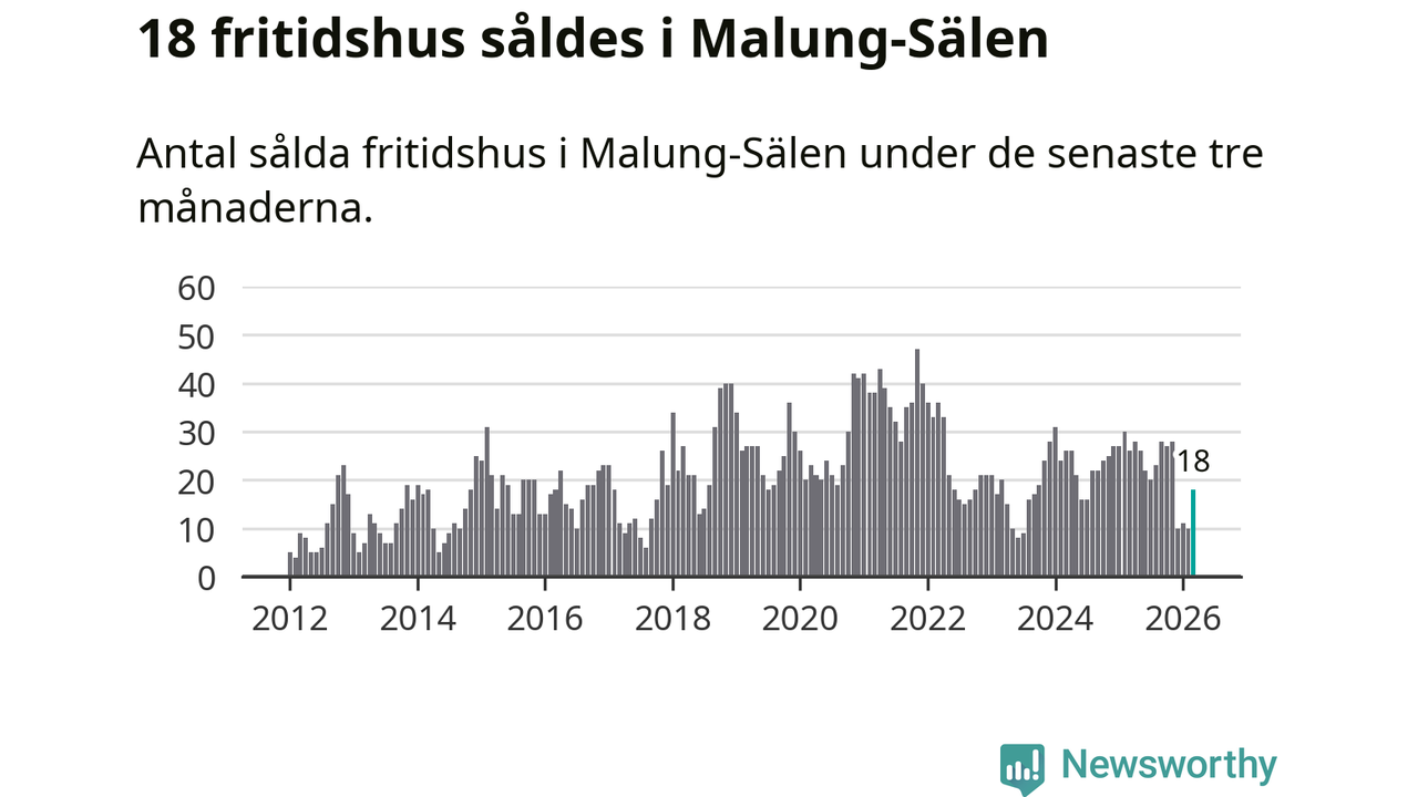 Sammanlagt såldes 18 fritidshus i Malung-Sälens kommun mellan januari och mars till ett genomsnittligt pris på 4,4 miljoner kronor. I fjol gjordes 26 affärer vid den här tiden på året.