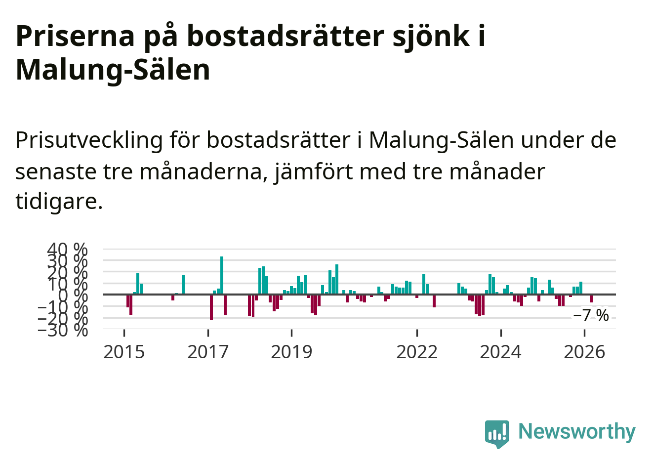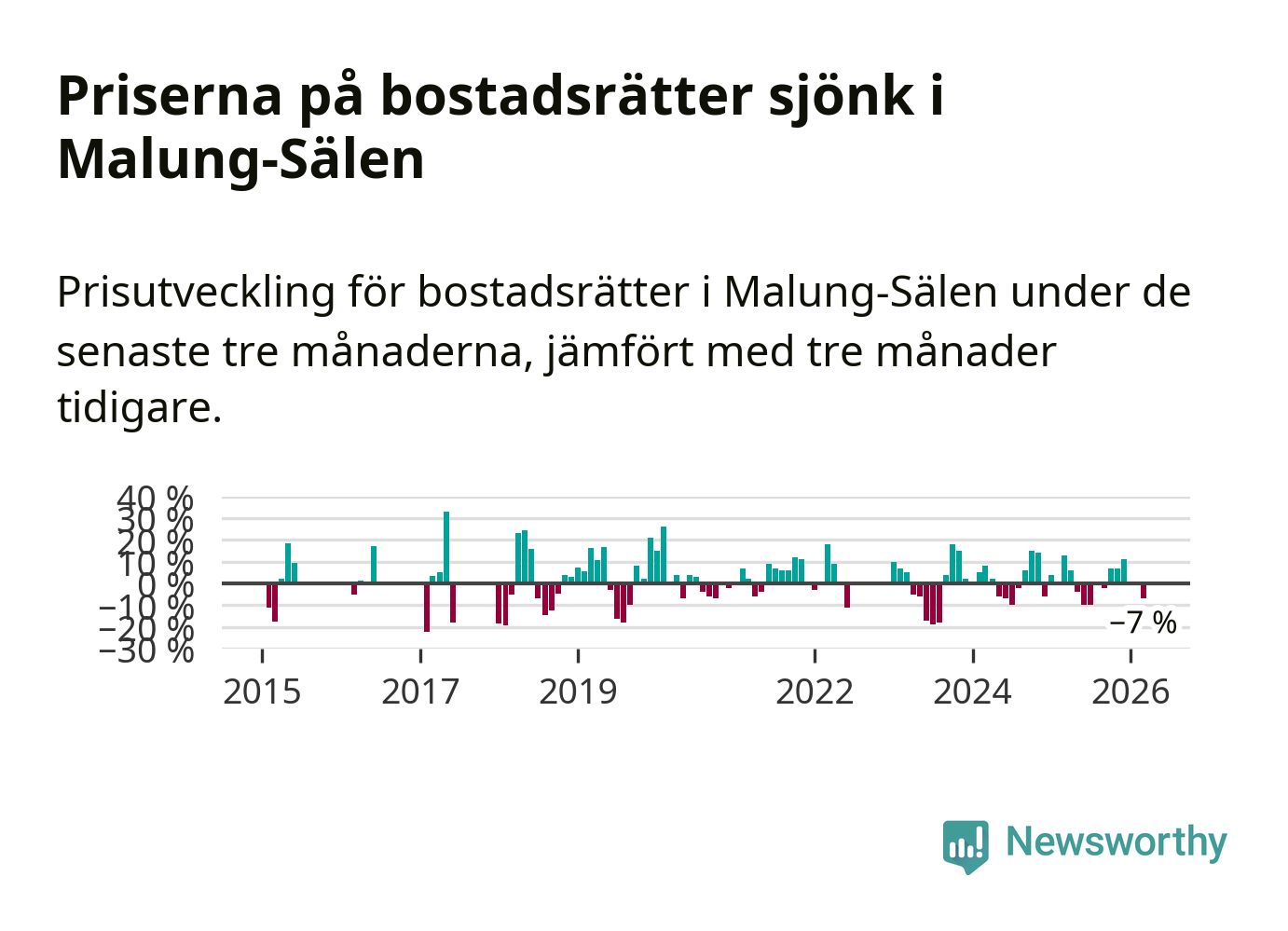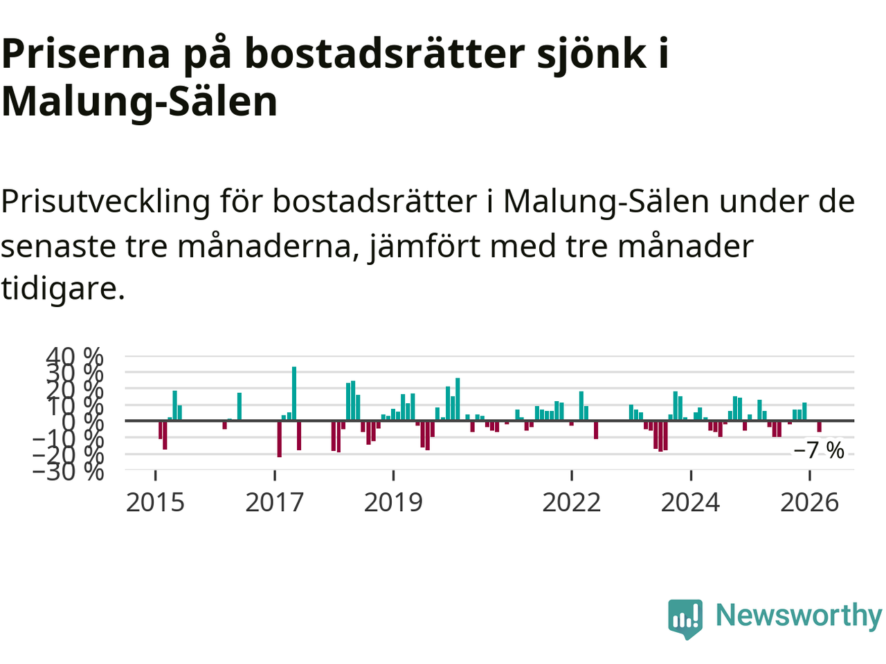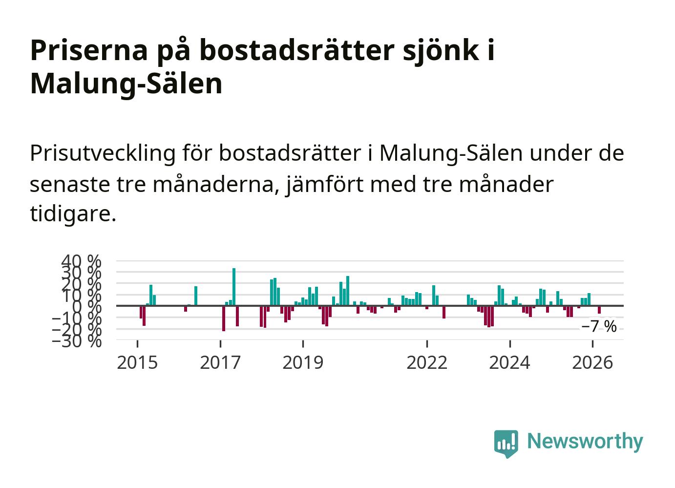 Priserna på bostadsrätter har gått ner i Malung-Sälens kommun. Medelpriset på försäljningarna under de senaste tre månaderna visar på en nedgång med 7 procent.
