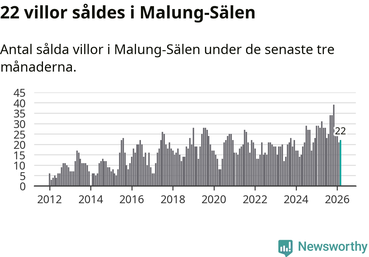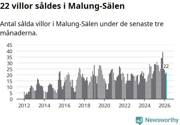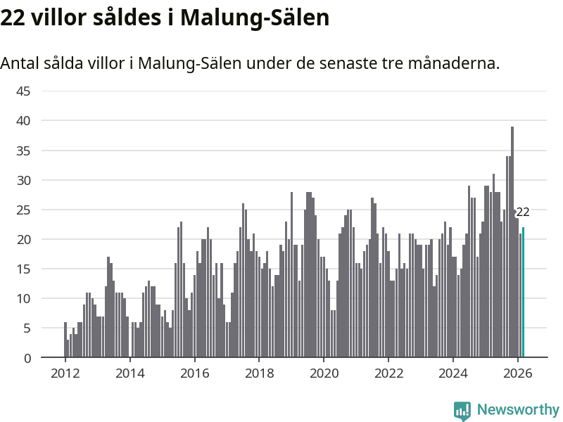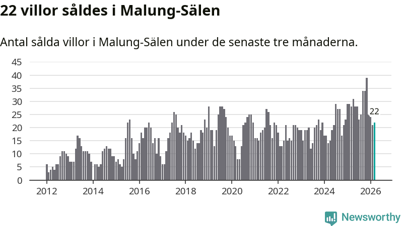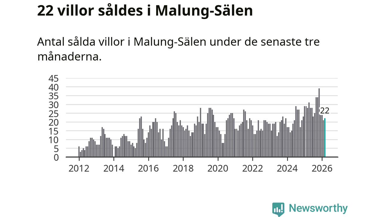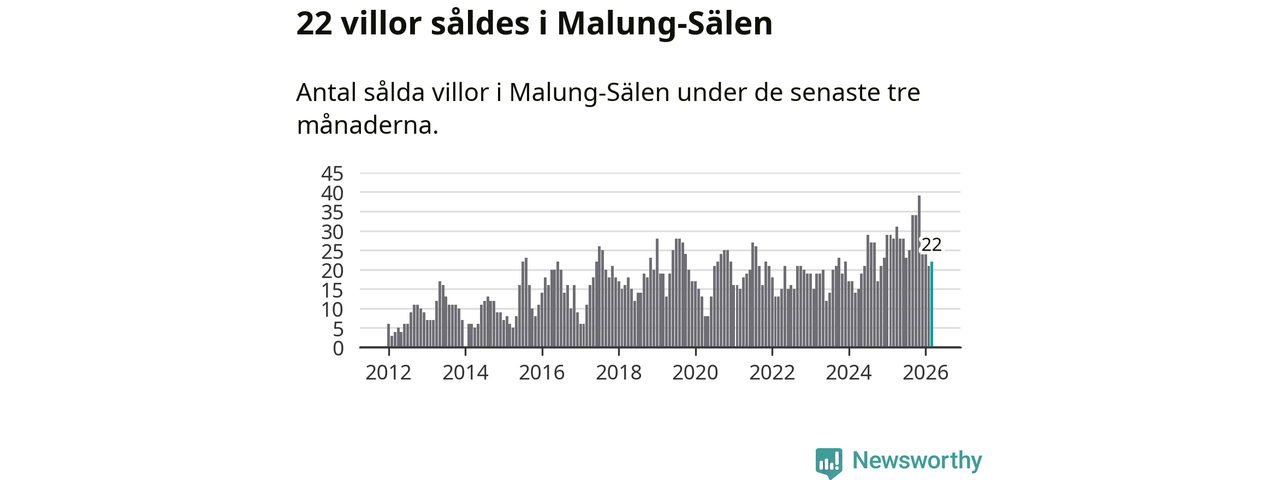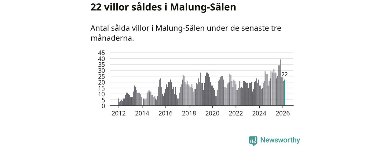 Mellan januari och mars gjordes sammanlagt 22 affärer med villor i Malung-Sälens kommun. Det kan jämföras med 28 vid motsvarande tid i fjol.
