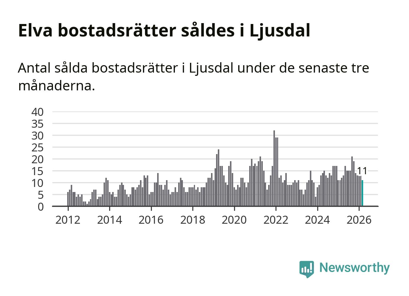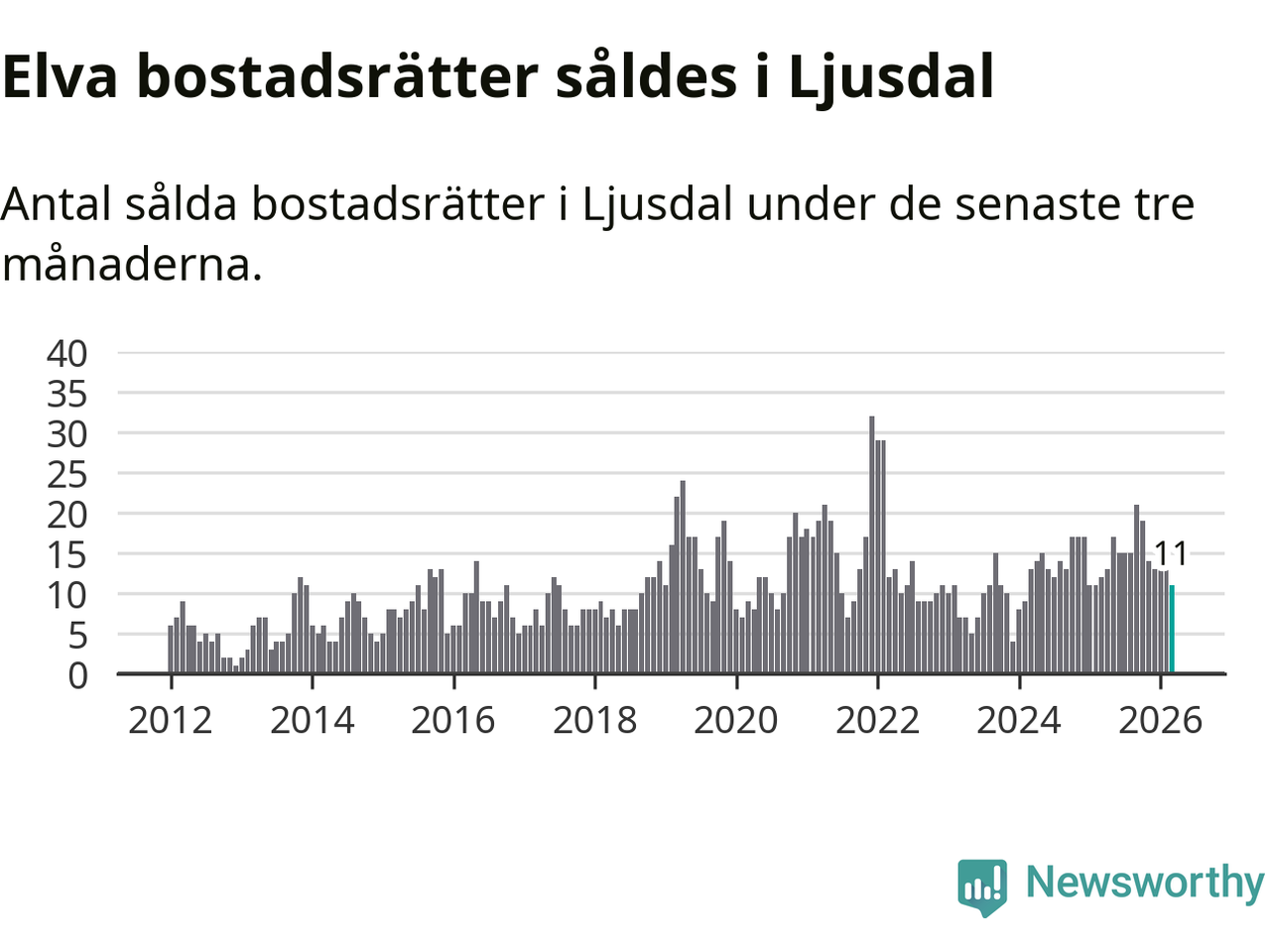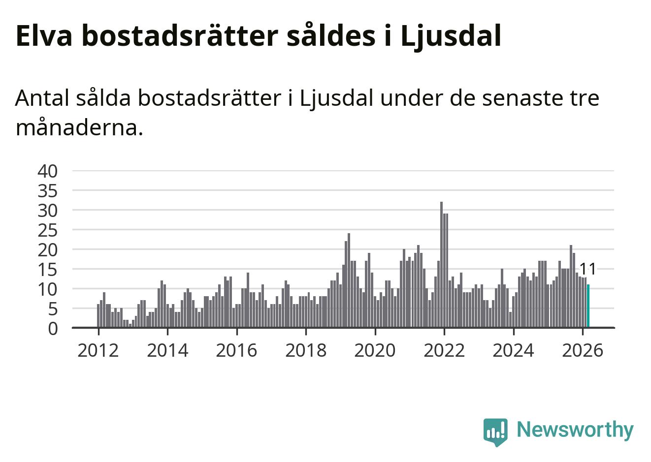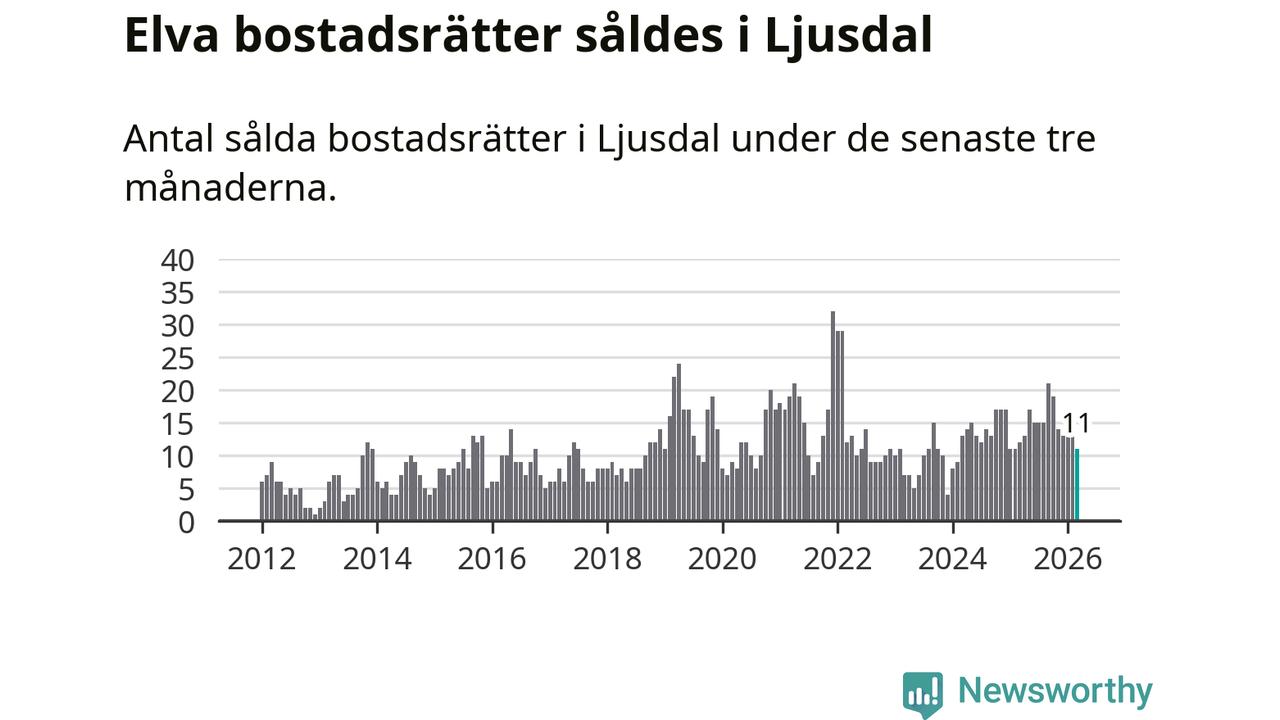 Mellan januari och mars gjordes sammanlagt elva affärer med bostadsrätter i Ljusdals kommun. Det kan jämföras med tolv vid motsvarande tid i fjol.