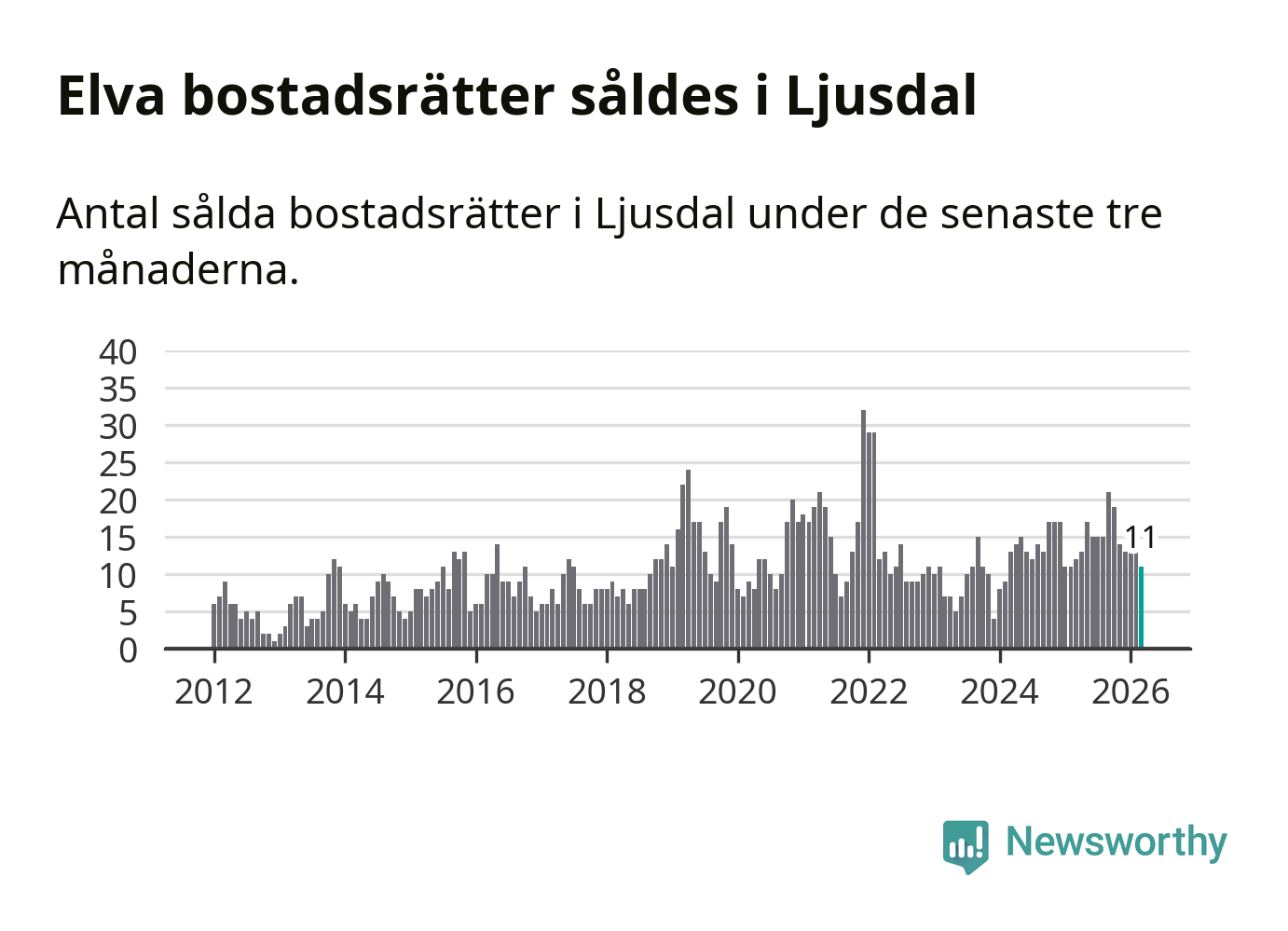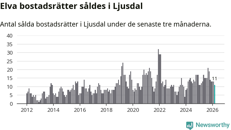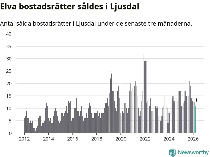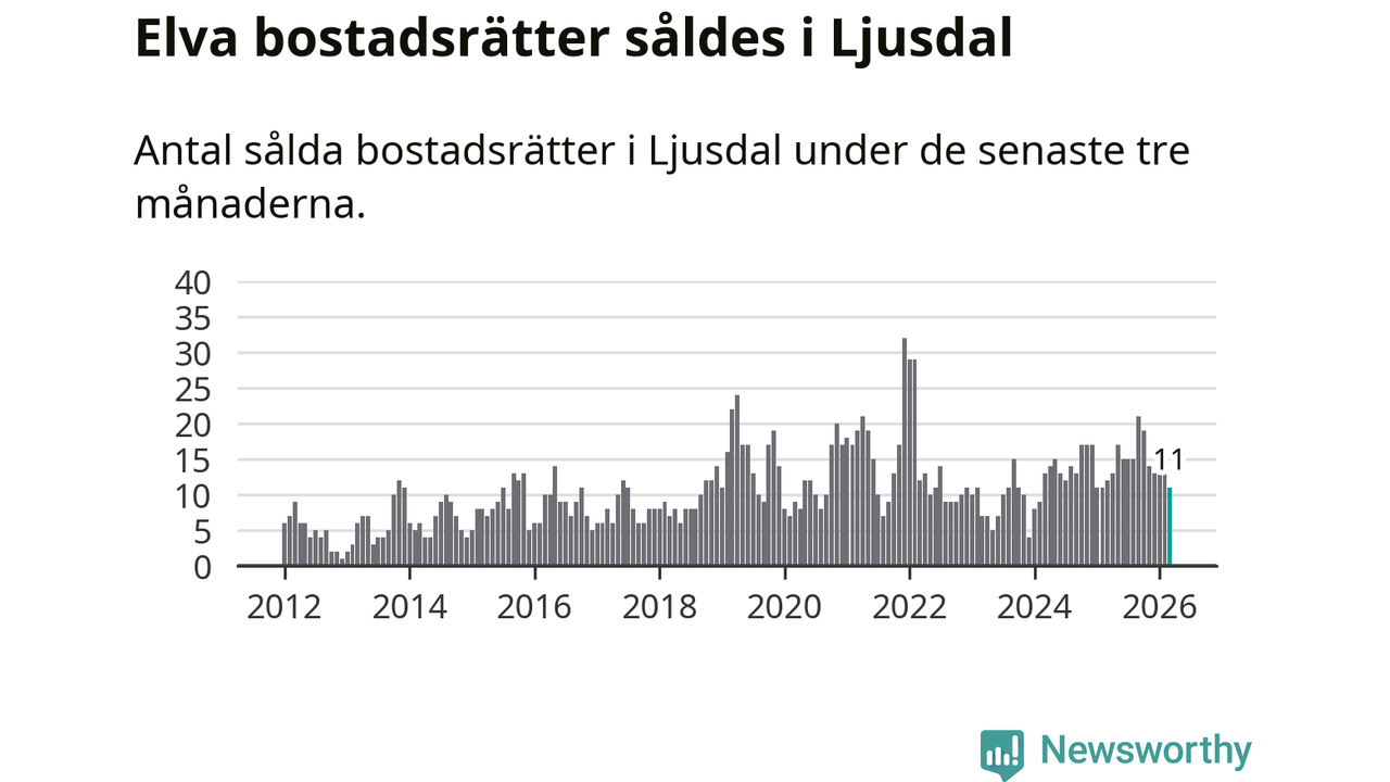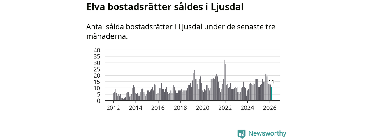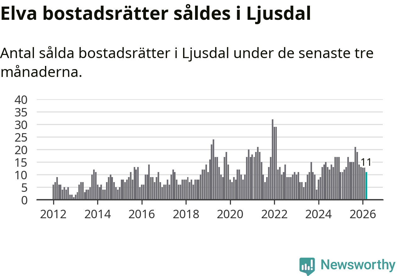 Mellan januari och mars gjordes sammanlagt elva affärer med bostadsrätter i Ljusdals kommun. Det kan jämföras med tolv vid motsvarande tid i fjol.