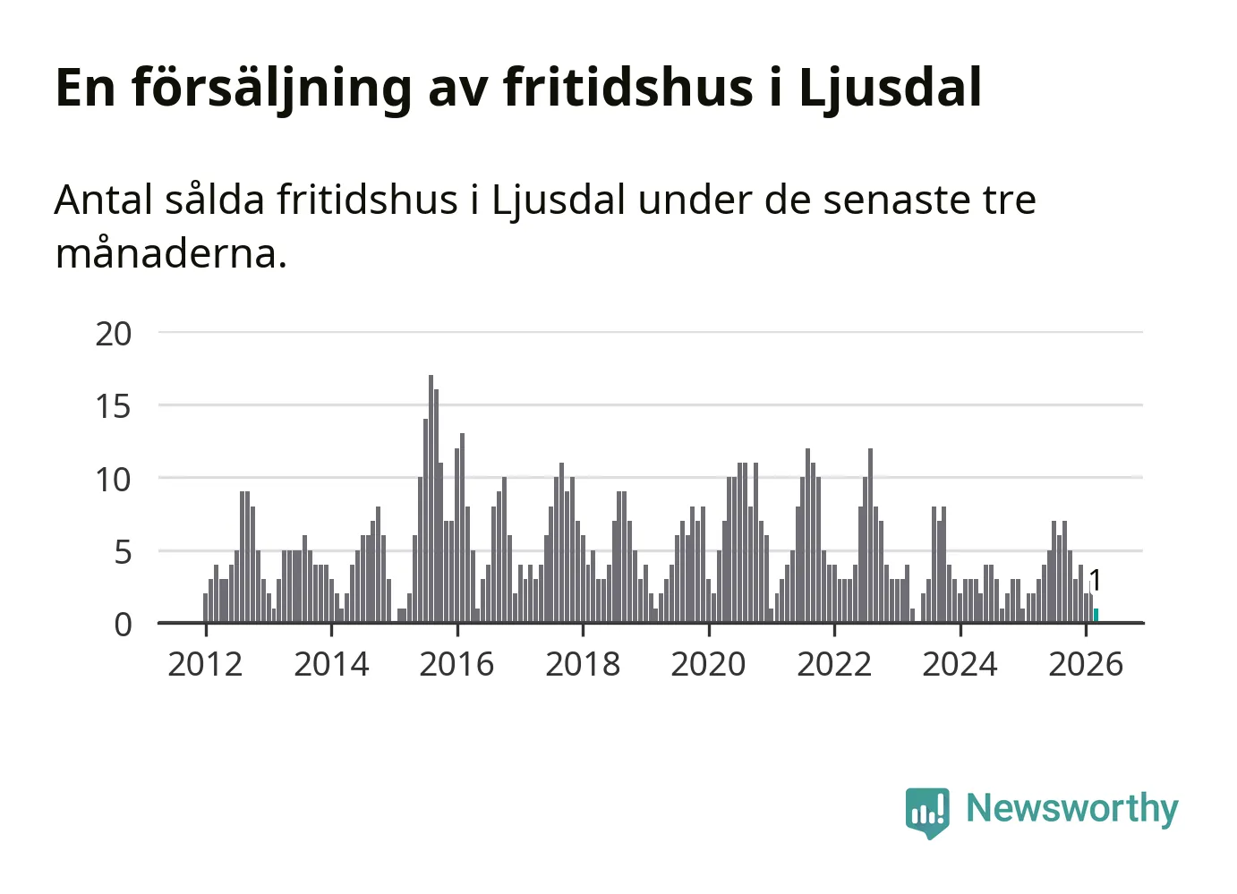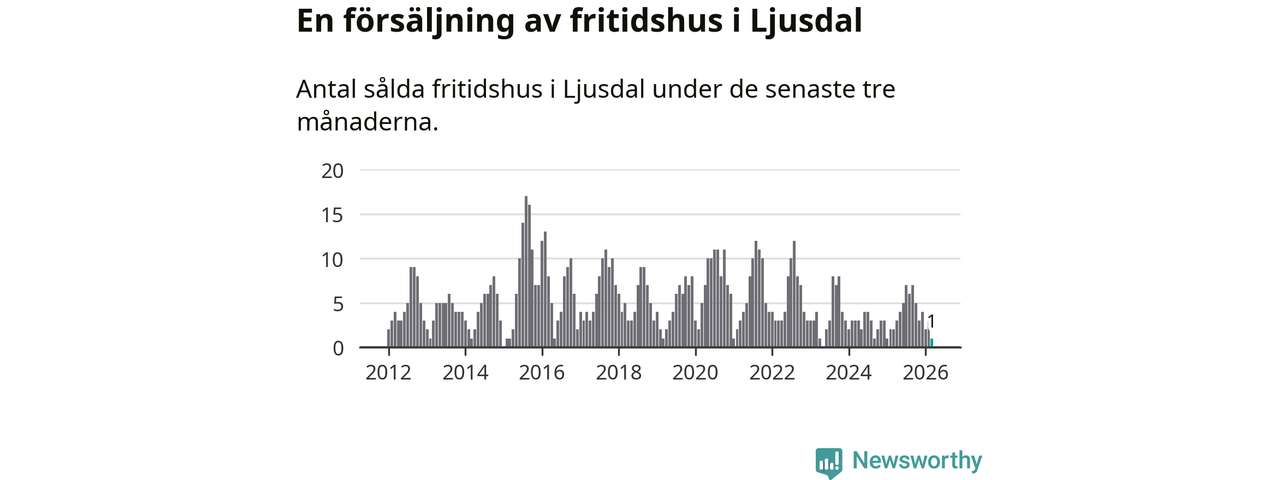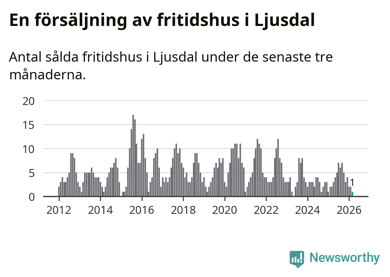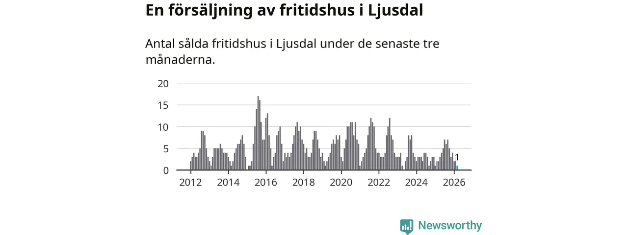 Mellan januari och mars gjordes sammanlagt en affär med fritidshus i Ljusdals kommun. Det kan jämföras med två vid motsvarande tid i fjol.