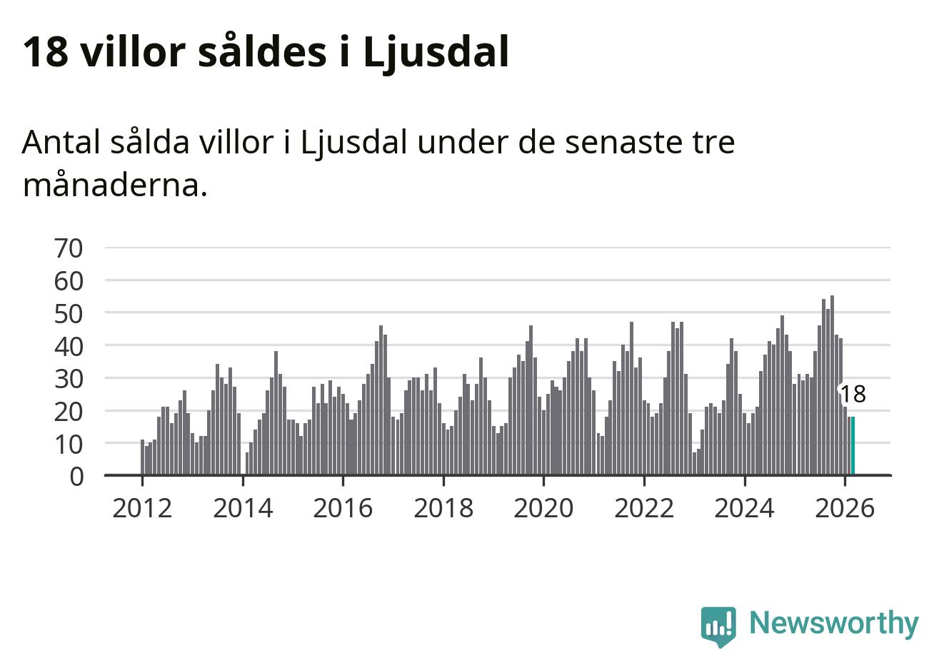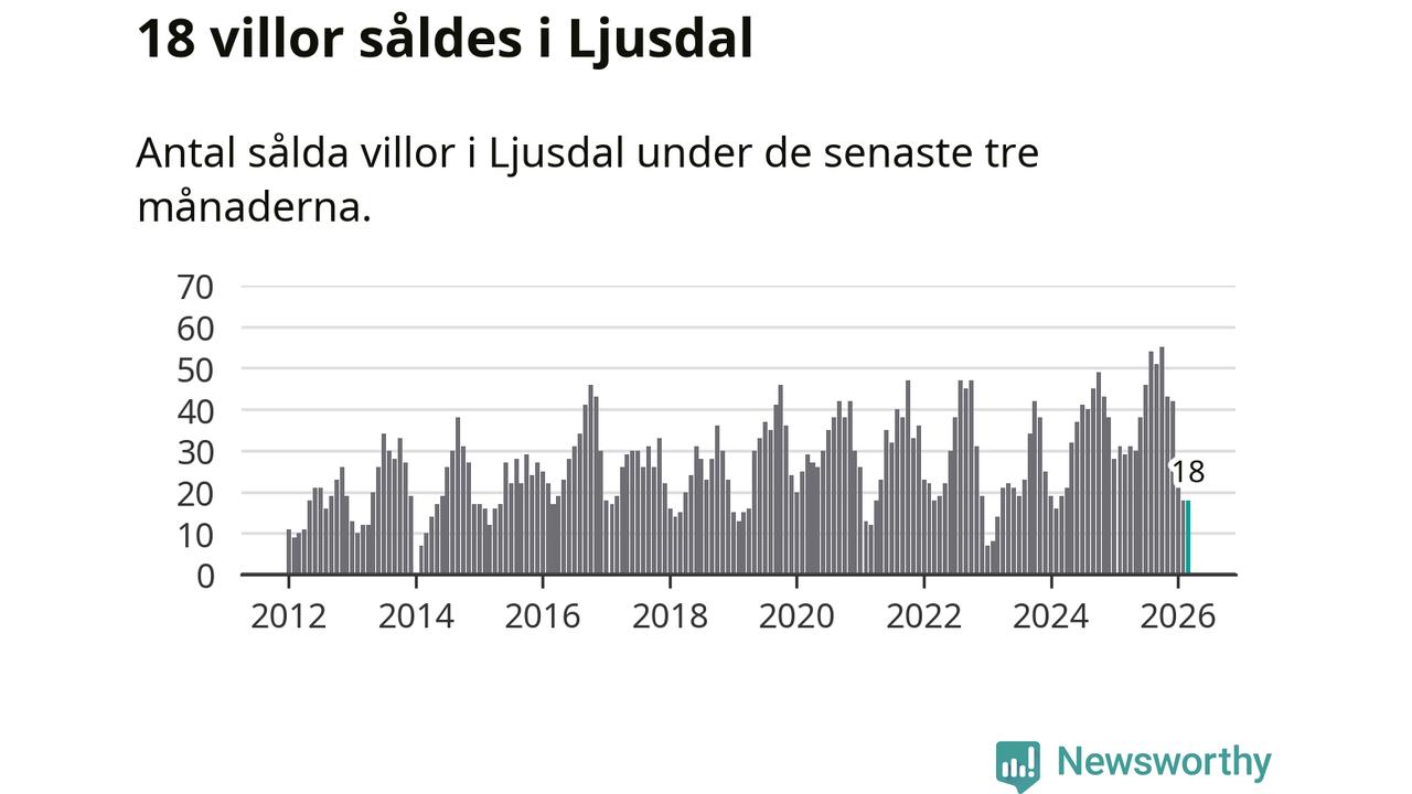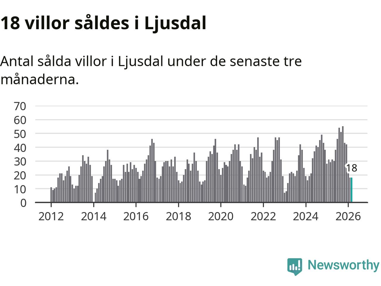 Mellan januari och mars gjordes sammanlagt 18 affärer med villor i Ljusdals kommun. Det kan jämföras med 29 vid motsvarande tid i fjol.