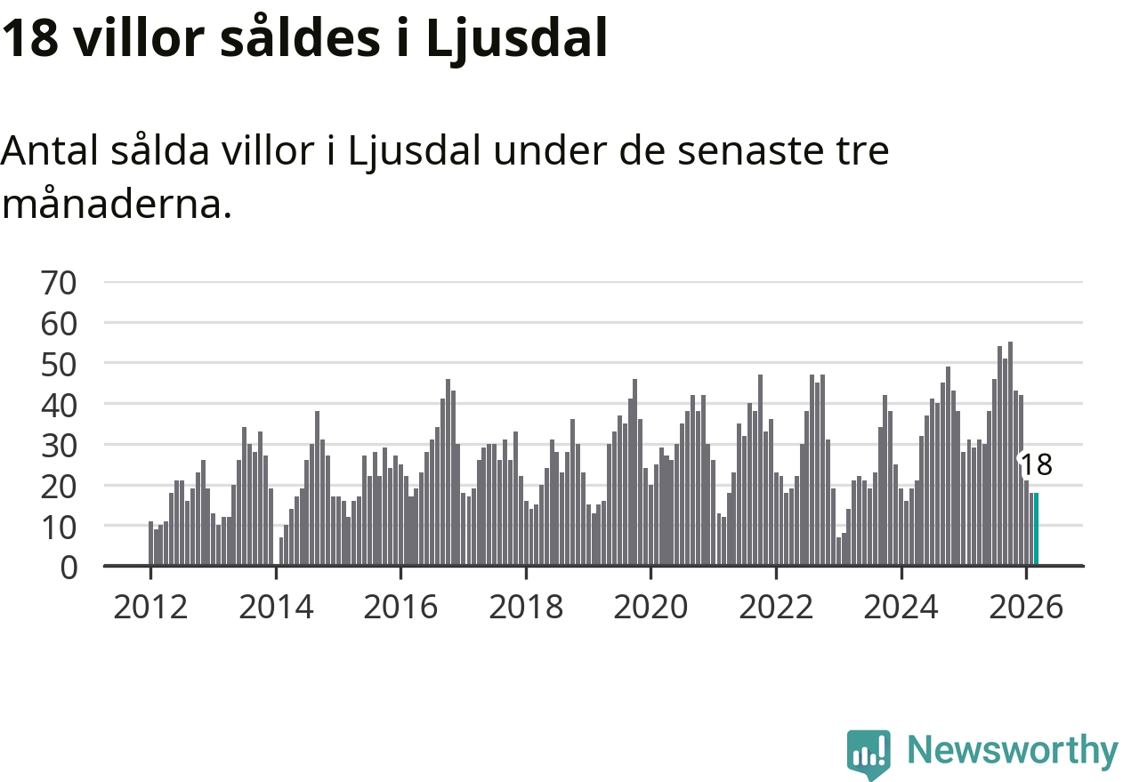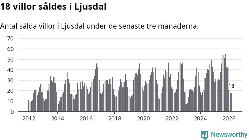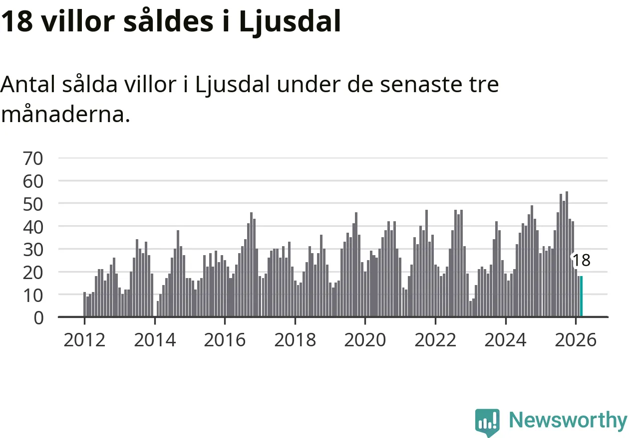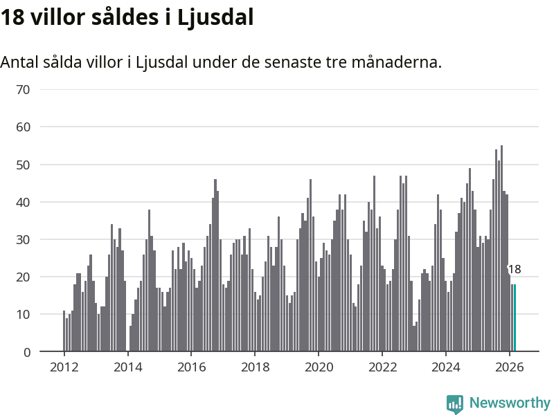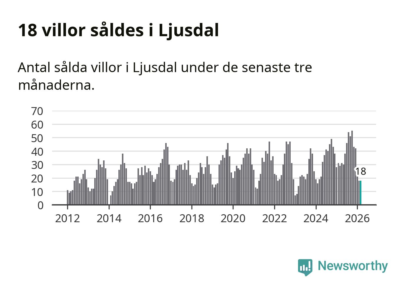 Mellan januari och mars gjordes sammanlagt 18 affärer med villor i Ljusdals kommun. Det kan jämföras med 29 vid motsvarande tid i fjol.