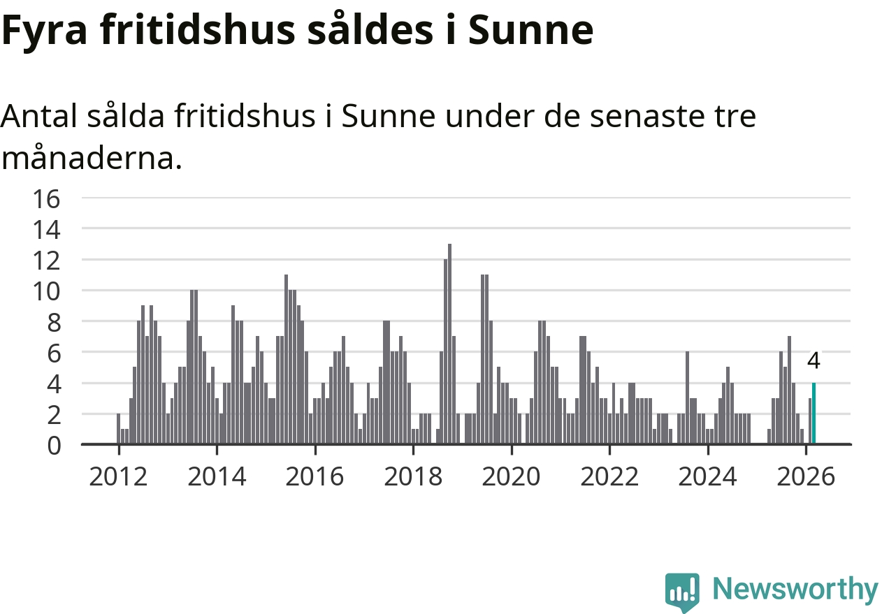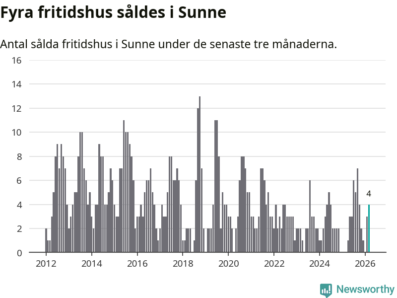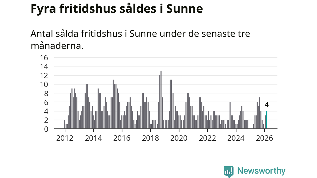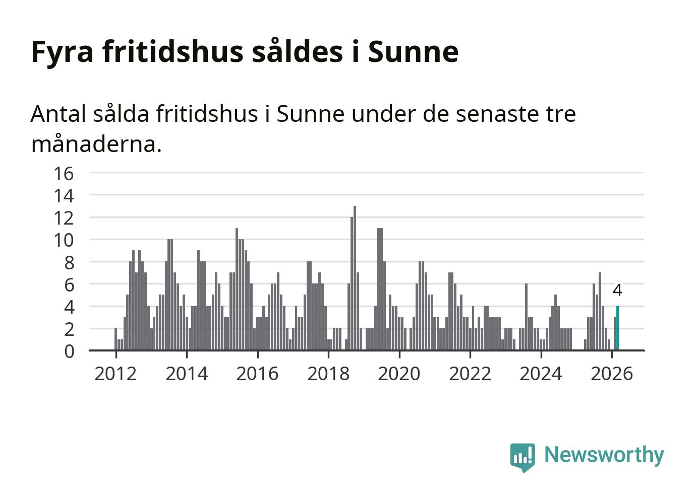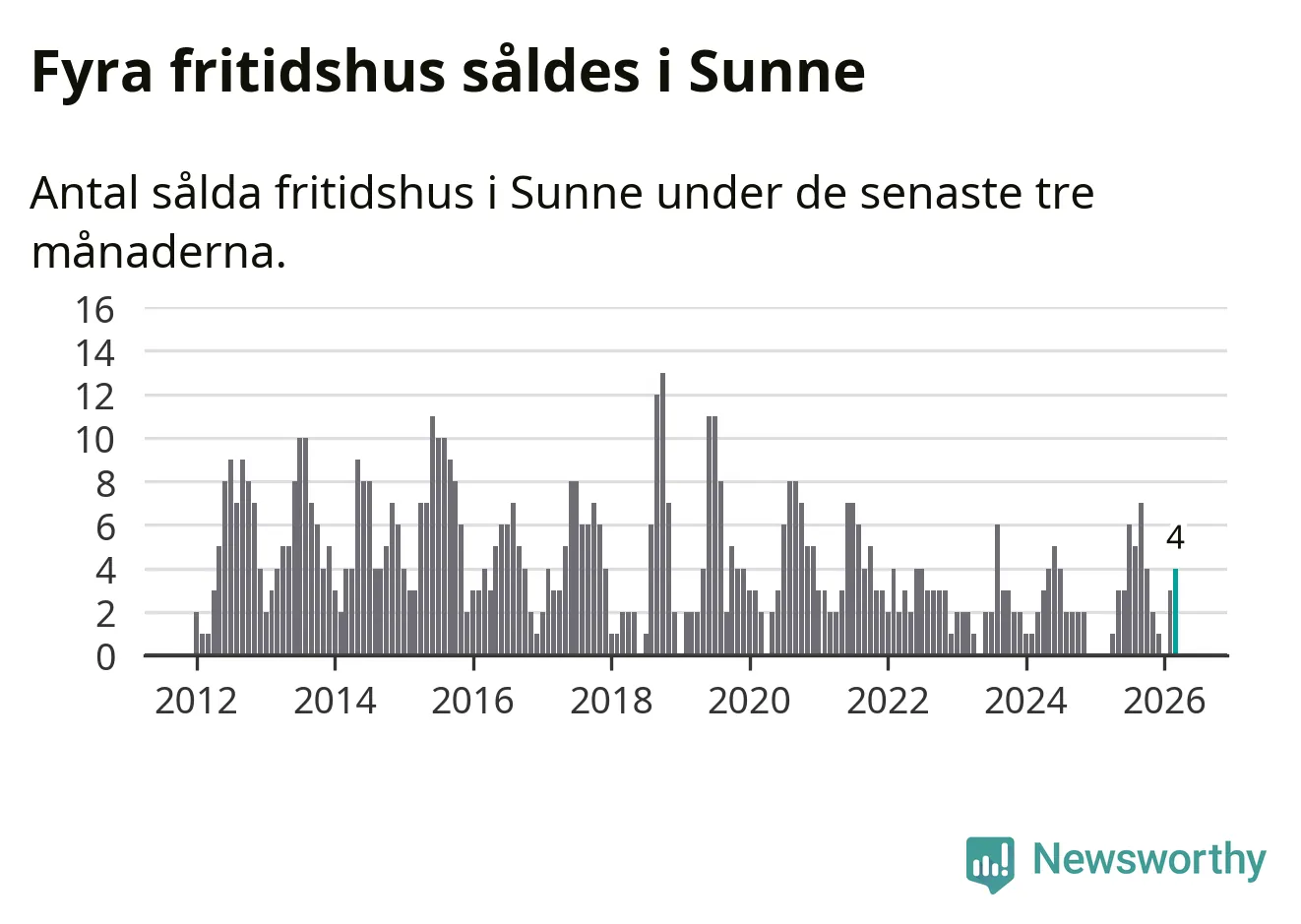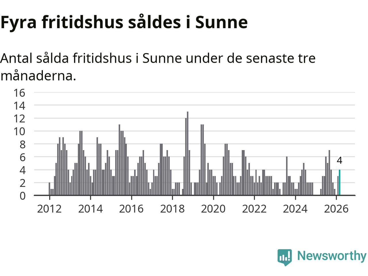 Mellan januari och mars gjordes sammanlagt fyra affärer med fritidshus i Sunne kommun.
