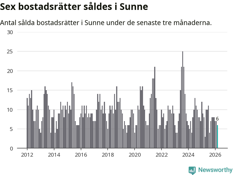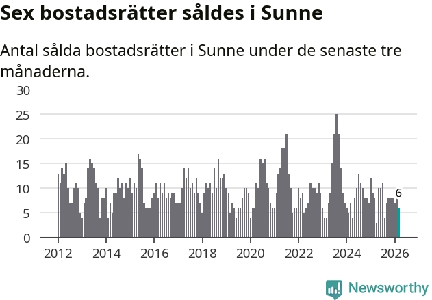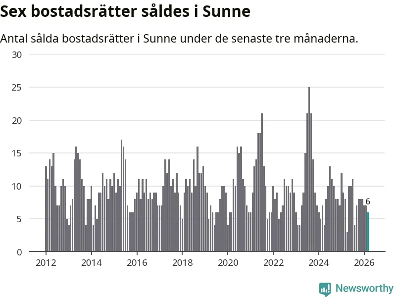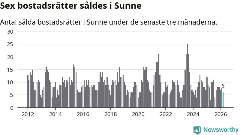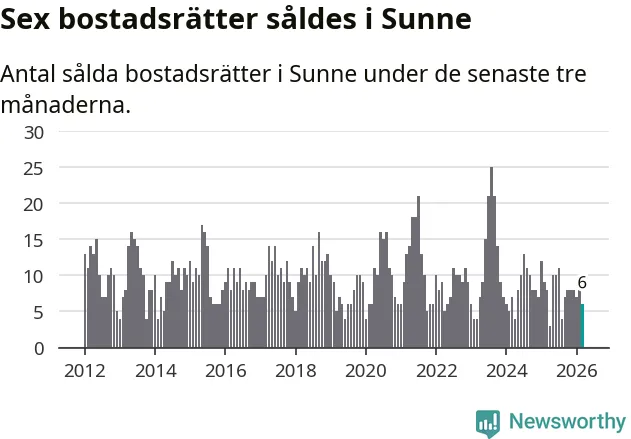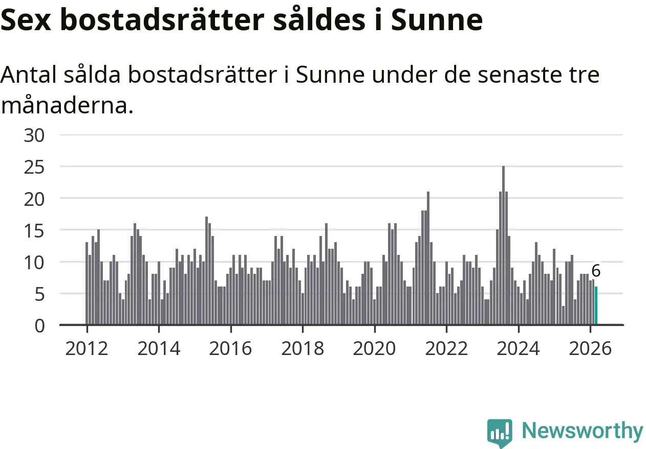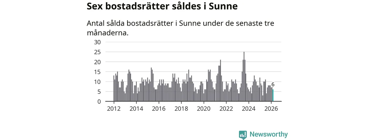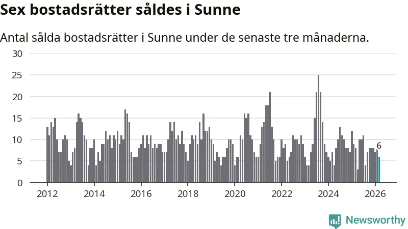 Mellan januari och mars gjordes sammanlagt sex affärer med bostadsrätter i Sunne kommun. Det kan jämföras med åtta vid motsvarande tid i fjol.