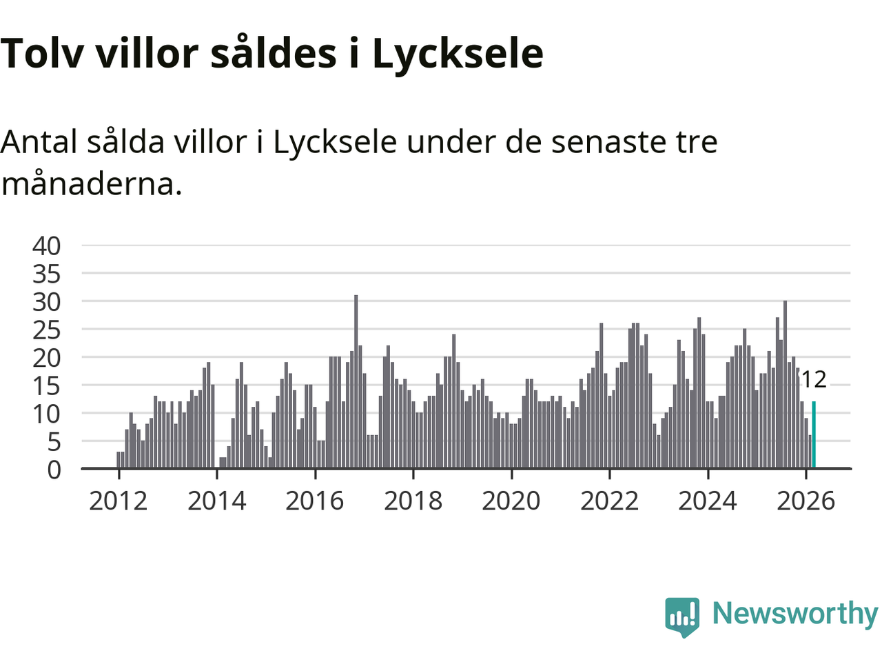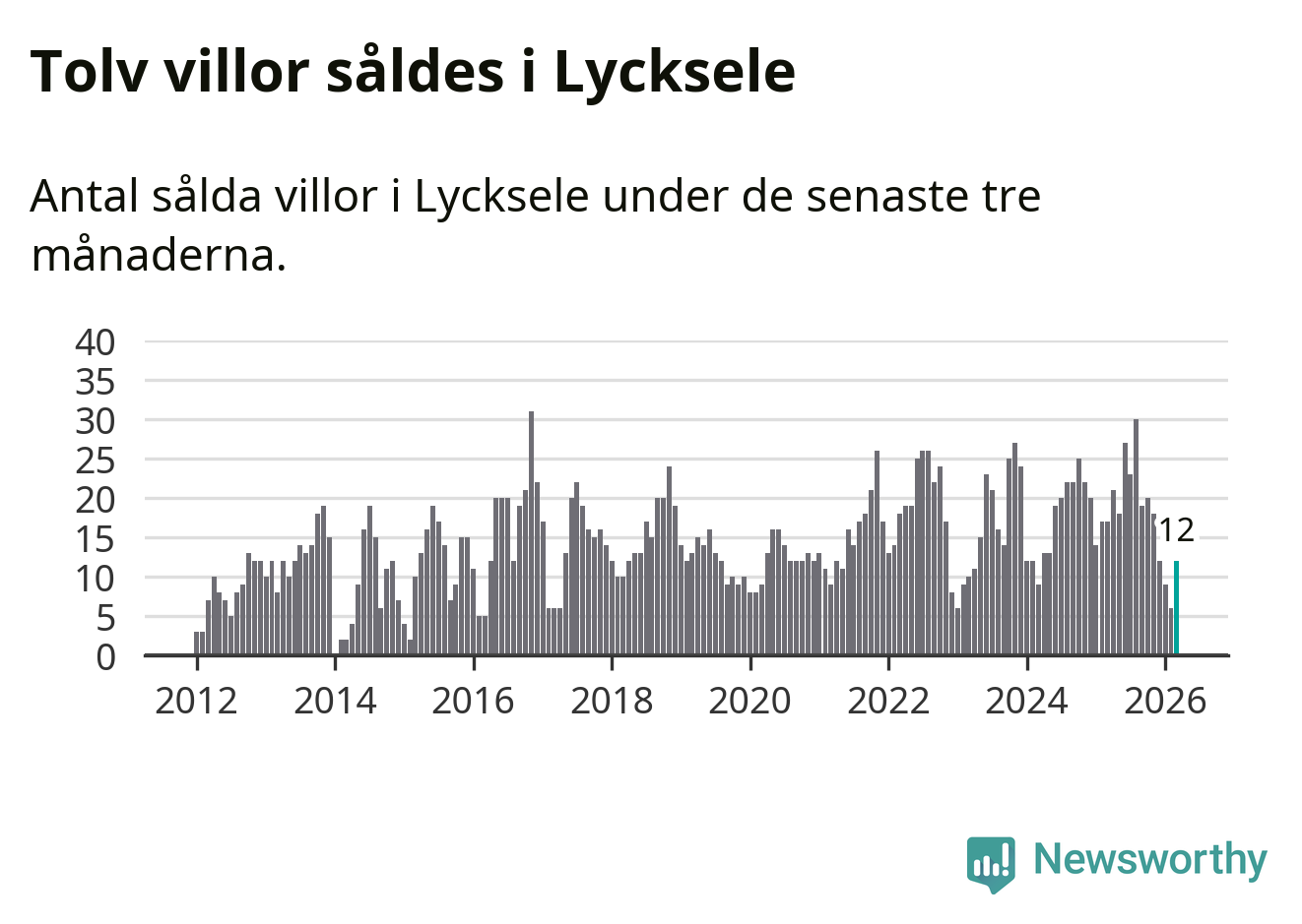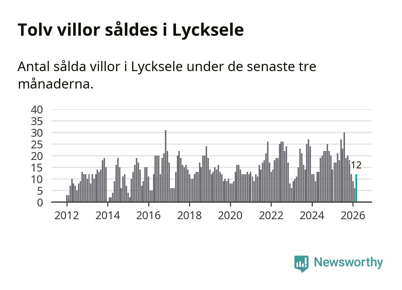 Mellan januari och mars gjordes sammanlagt tolv affärer med villor i Lycksele kommun. Det kan jämföras med 17 vid motsvarande tid i fjol.