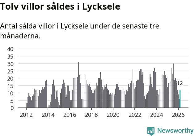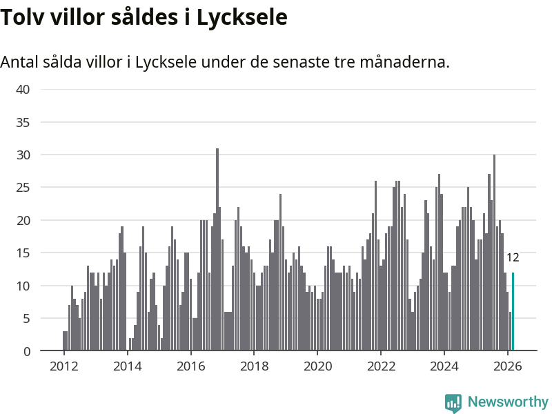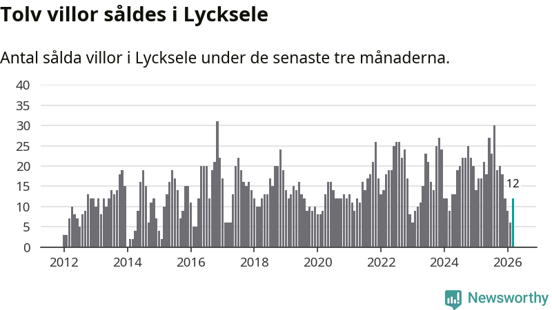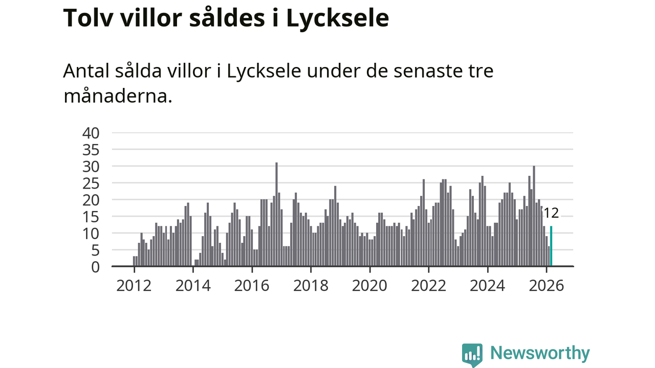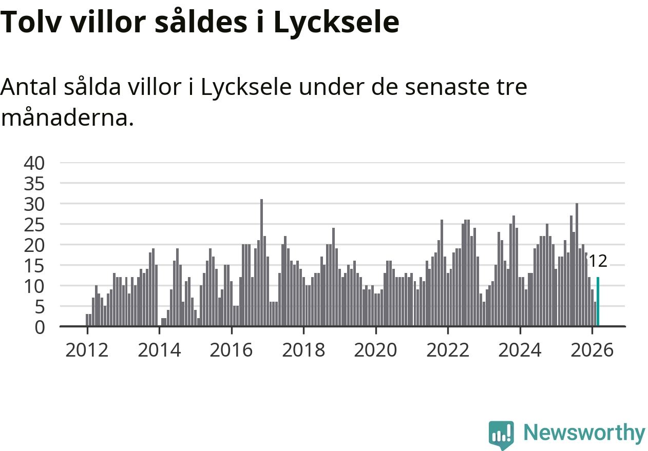 Mellan januari och mars gjordes sammanlagt tolv affärer med villor i Lycksele kommun. Det kan jämföras med 17 vid motsvarande tid i fjol.