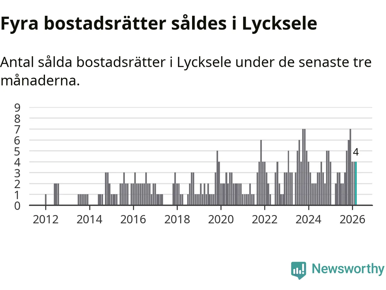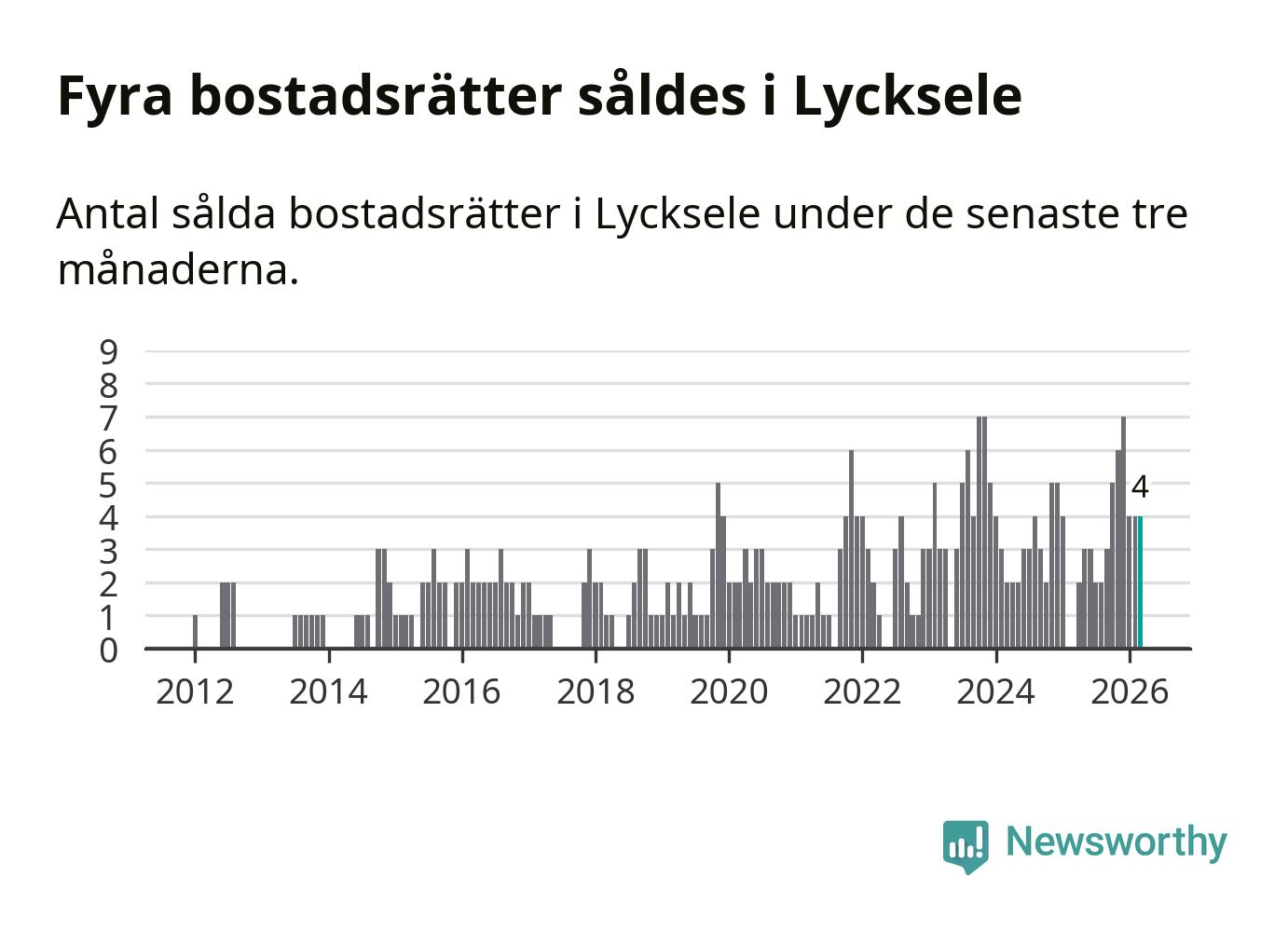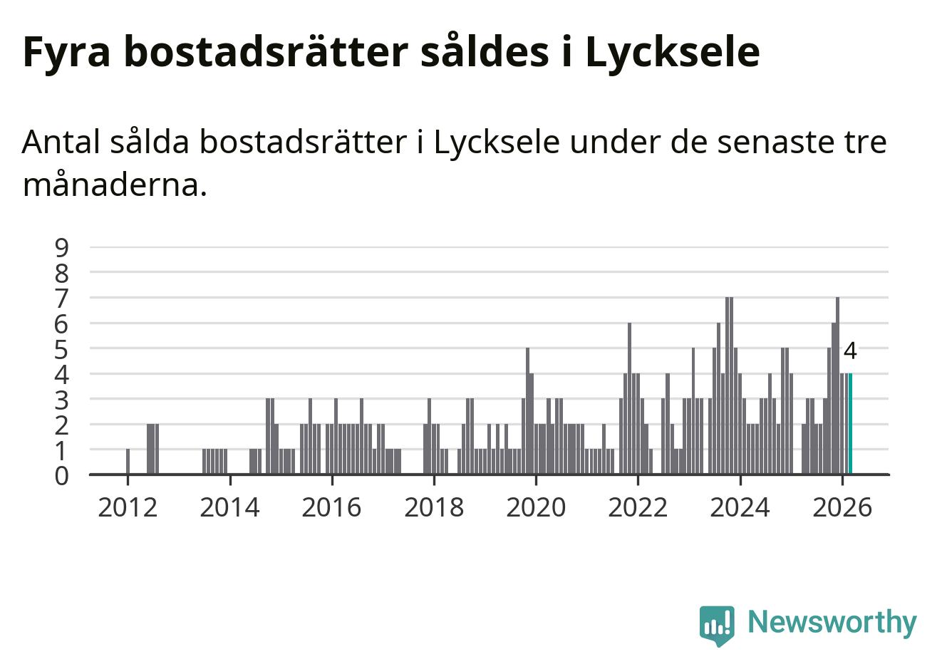 Mellan januari och mars gjordes sammanlagt fyra affärer med bostadsrätter i Lycksele kommun.