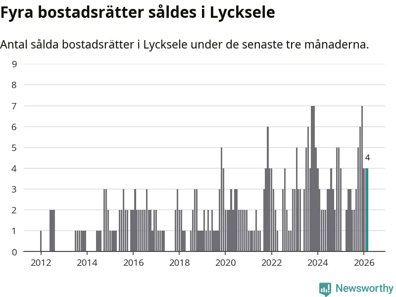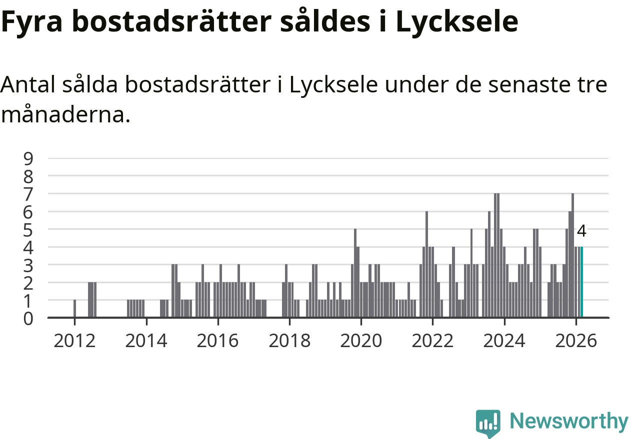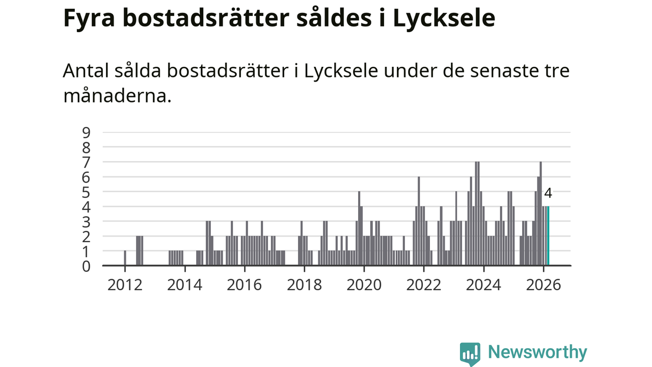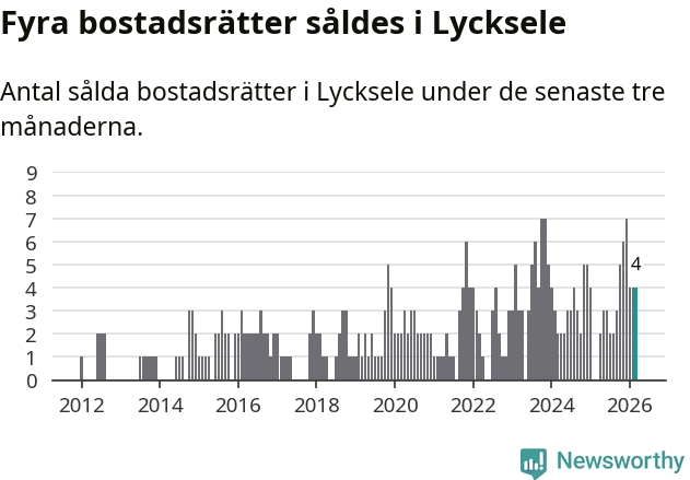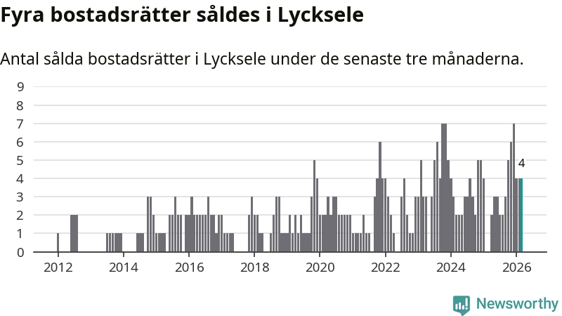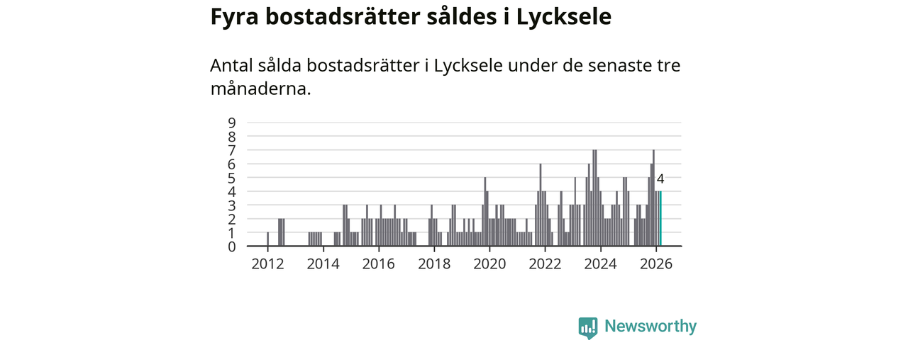 Mellan januari och mars gjordes sammanlagt fyra affärer med bostadsrätter i Lycksele kommun.