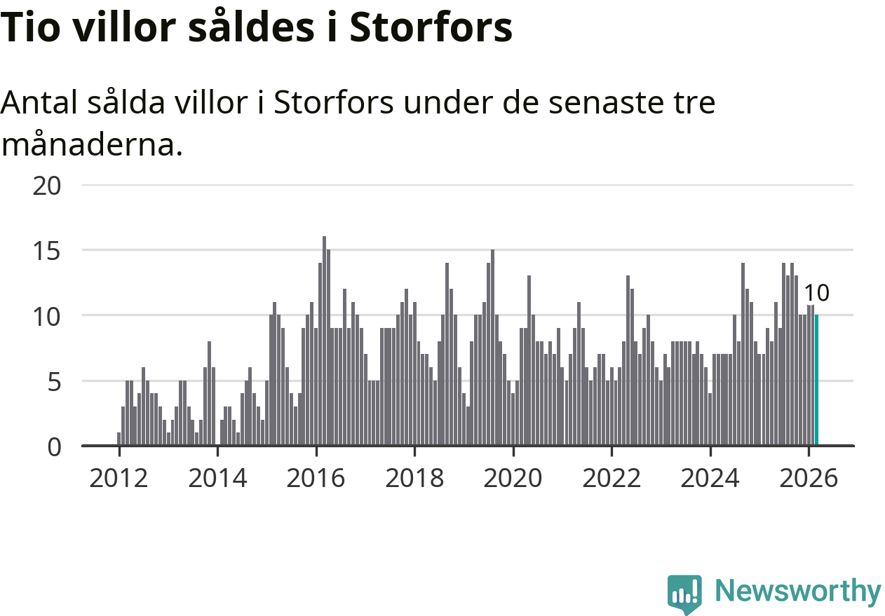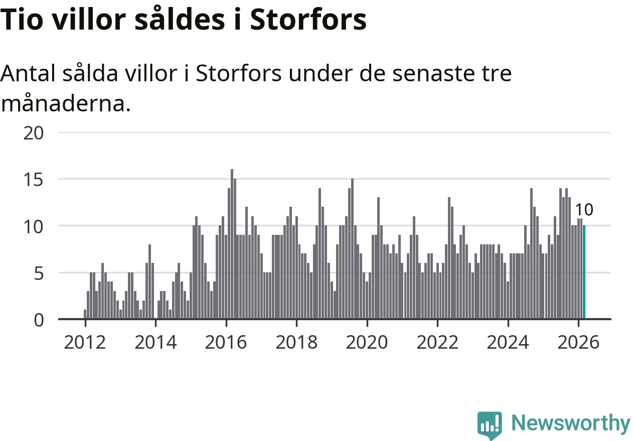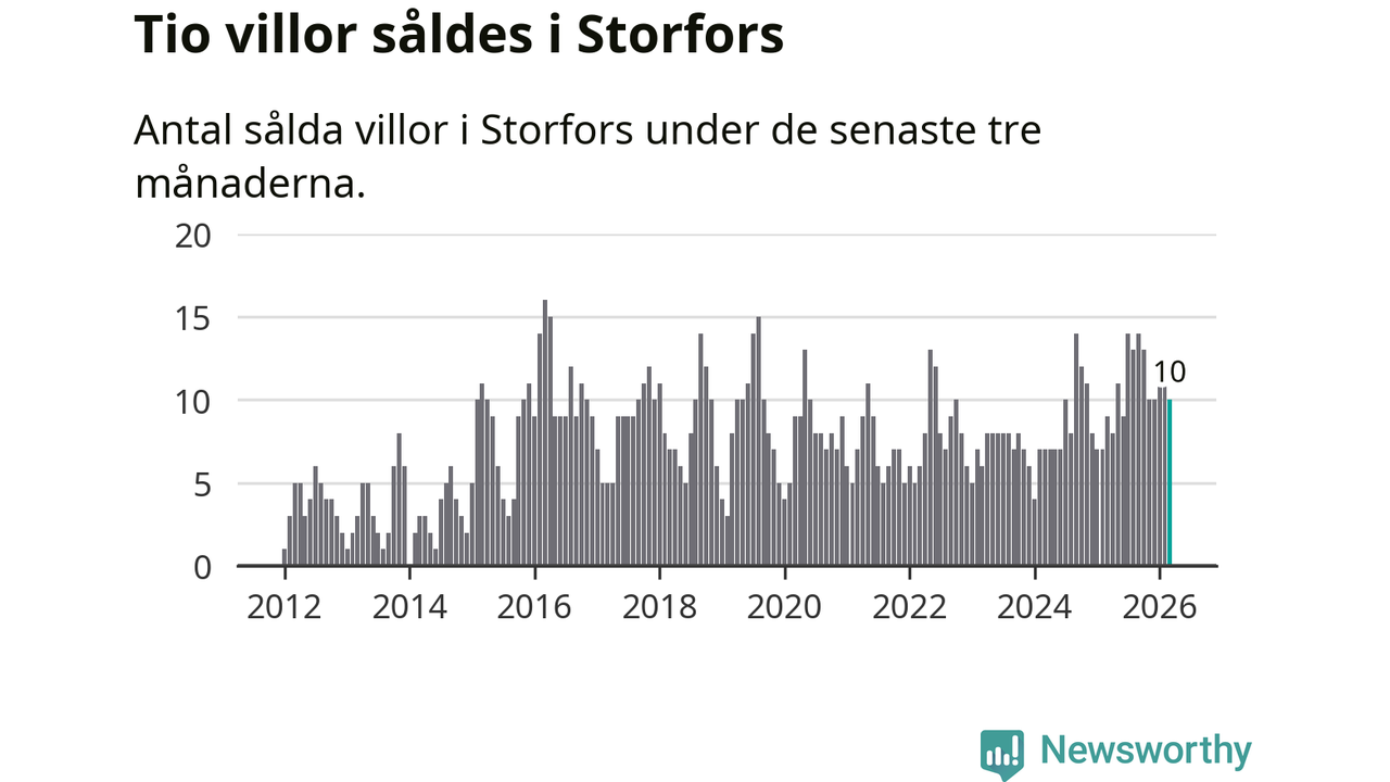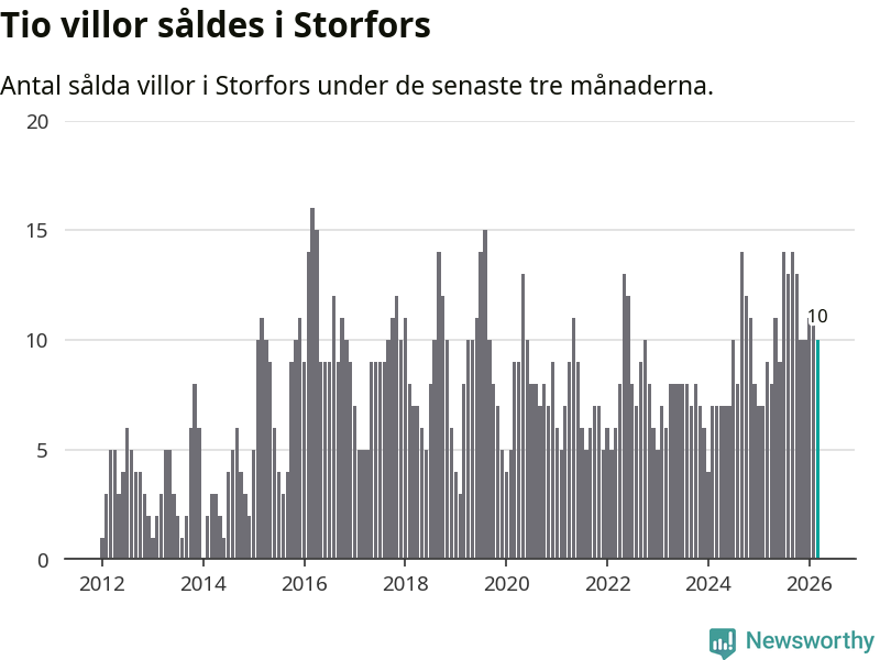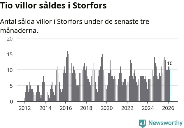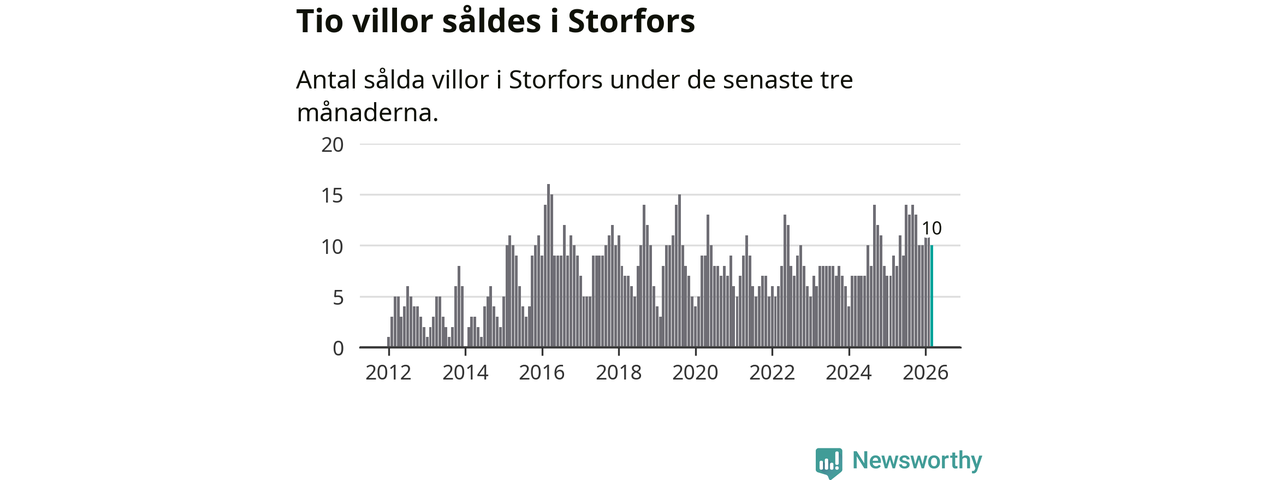 Mellan januari och mars gjordes sammanlagt tio affärer med villor i Storfors kommun. Det kan jämföras med nio vid motsvarande tid i fjol.