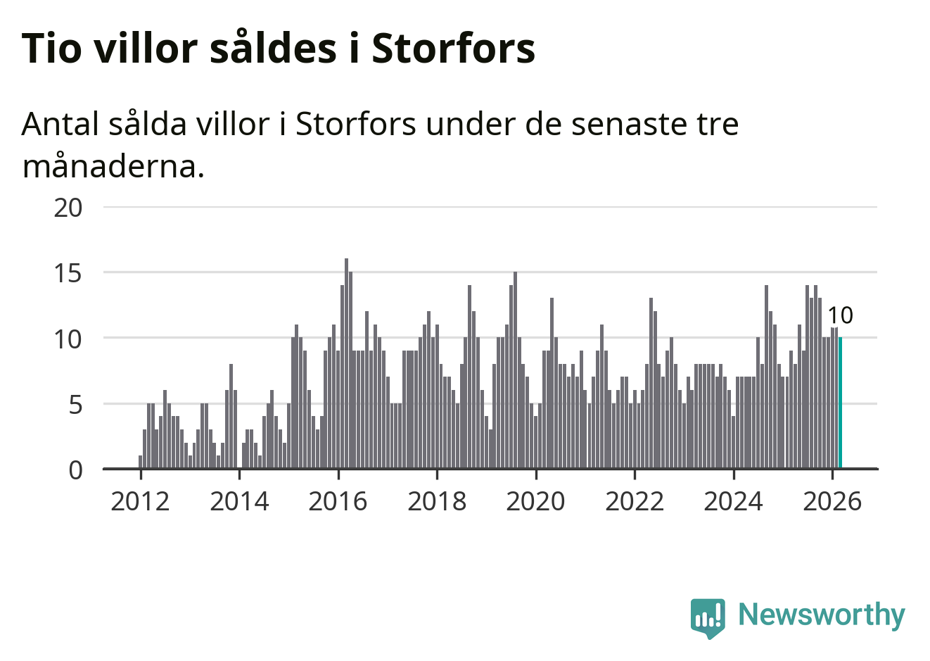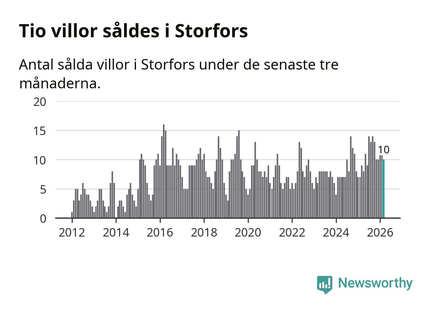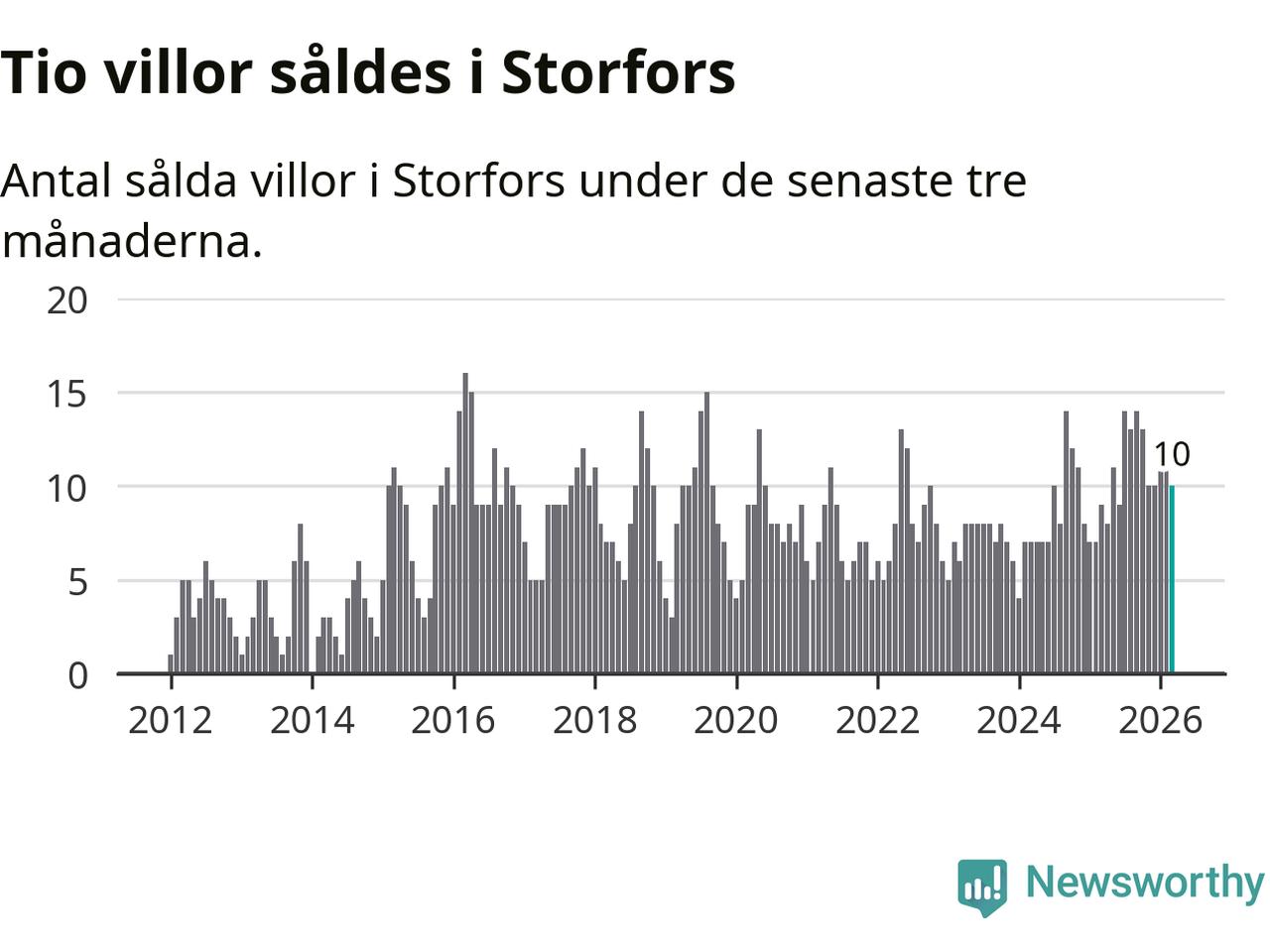 Mellan januari och mars gjordes sammanlagt tio affärer med villor i Storfors kommun. Det kan jämföras med nio vid motsvarande tid i fjol.