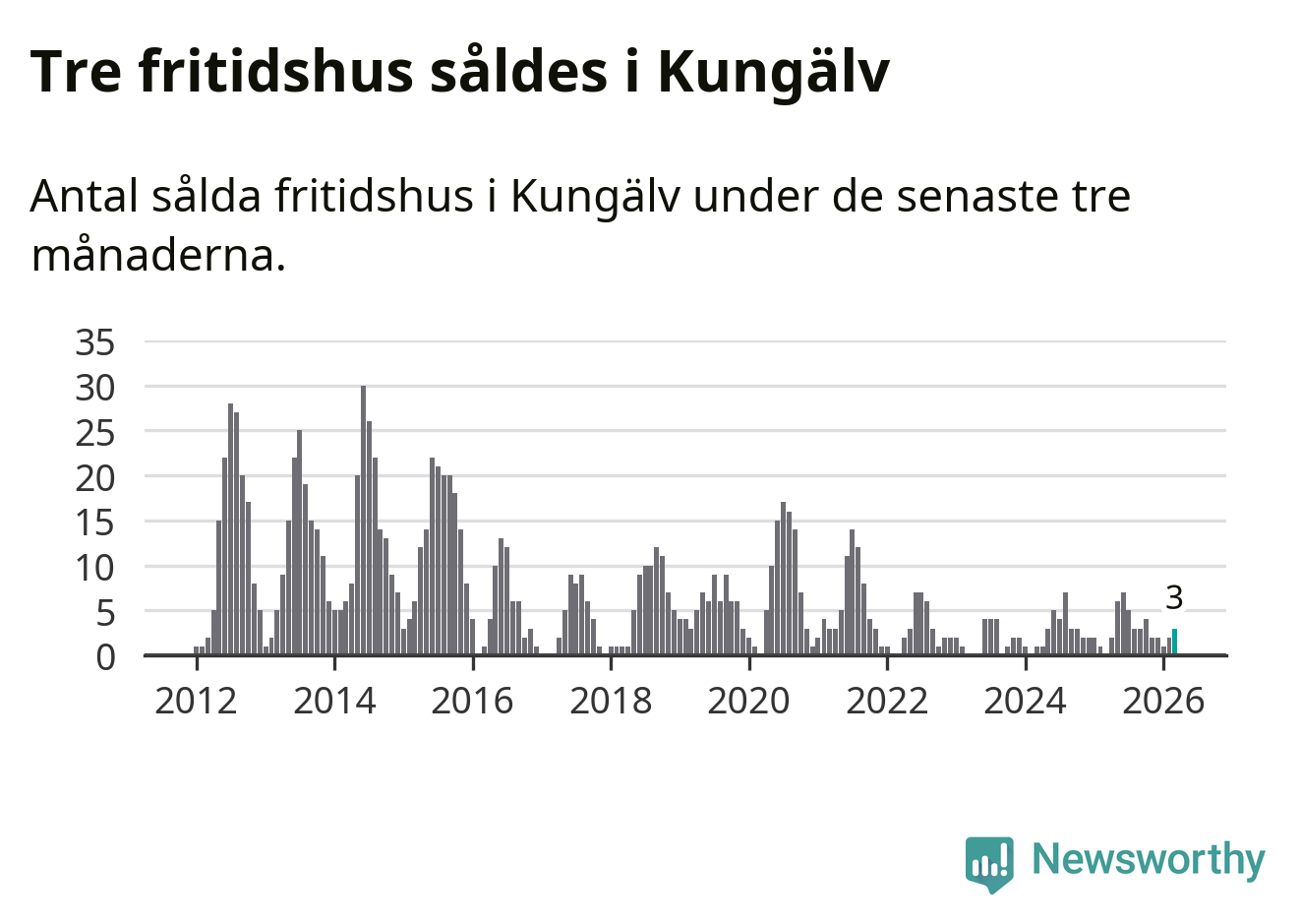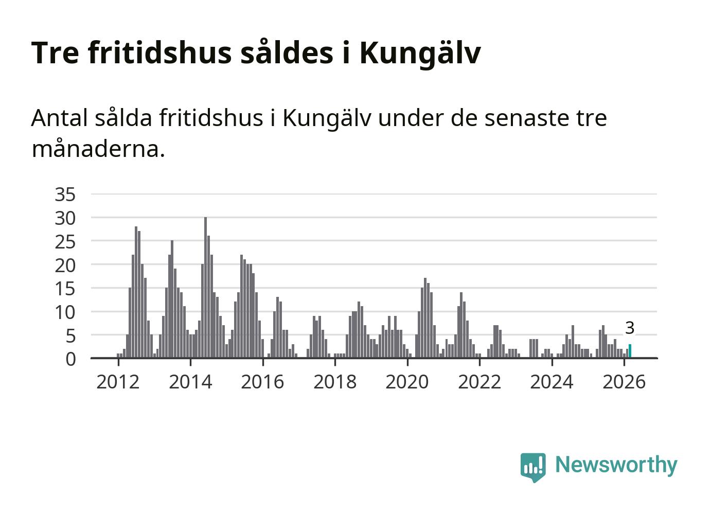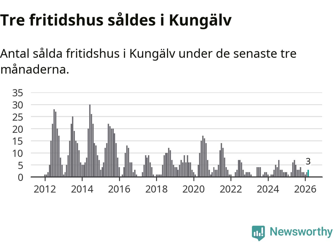 Mellan januari och mars gjordes sammanlagt tre affärer med fritidshus i Kungälvs kommun.