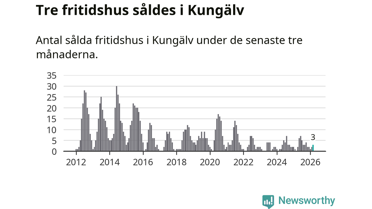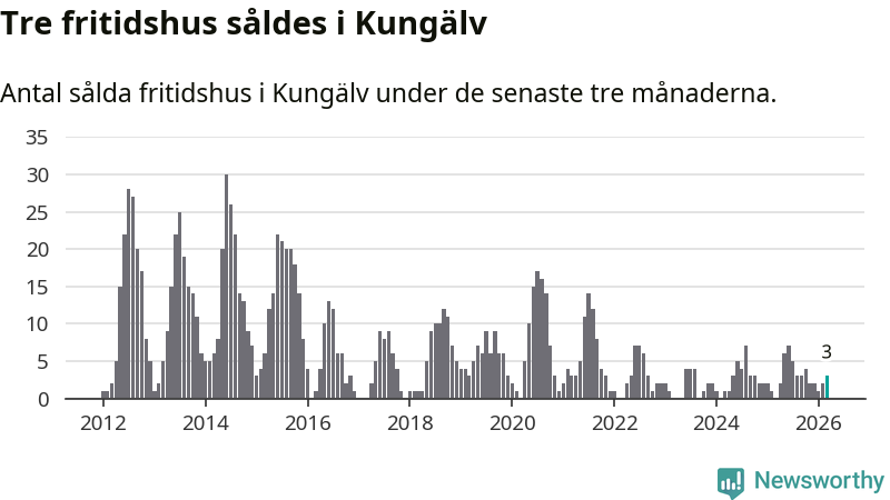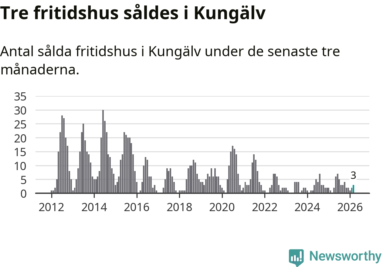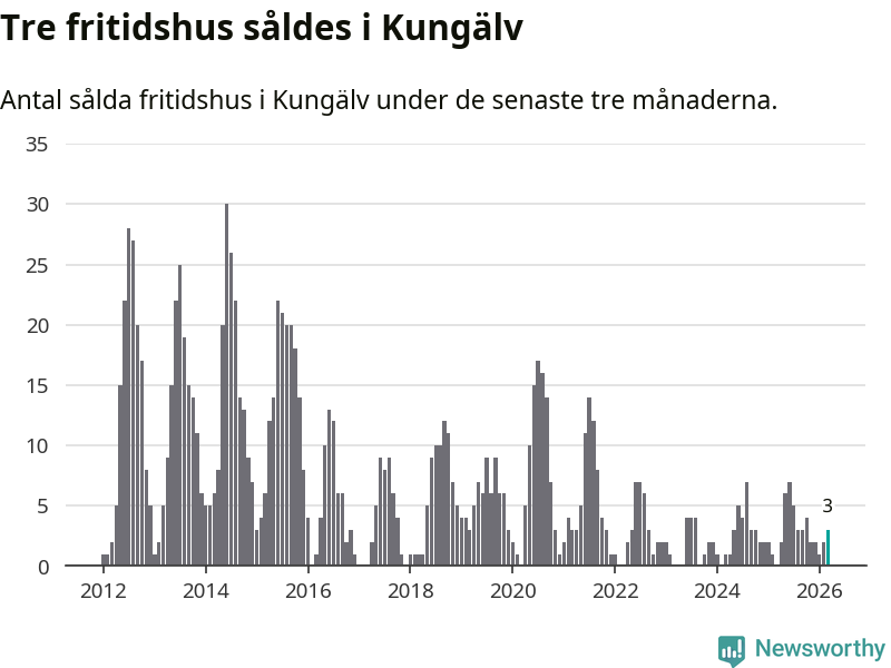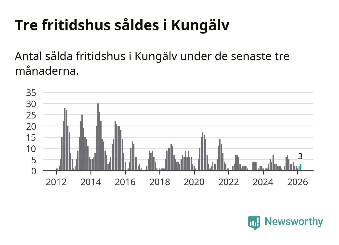Mellan januari och mars gjordes sammanlagt tre affärer med fritidshus i Kungälvs kommun.
