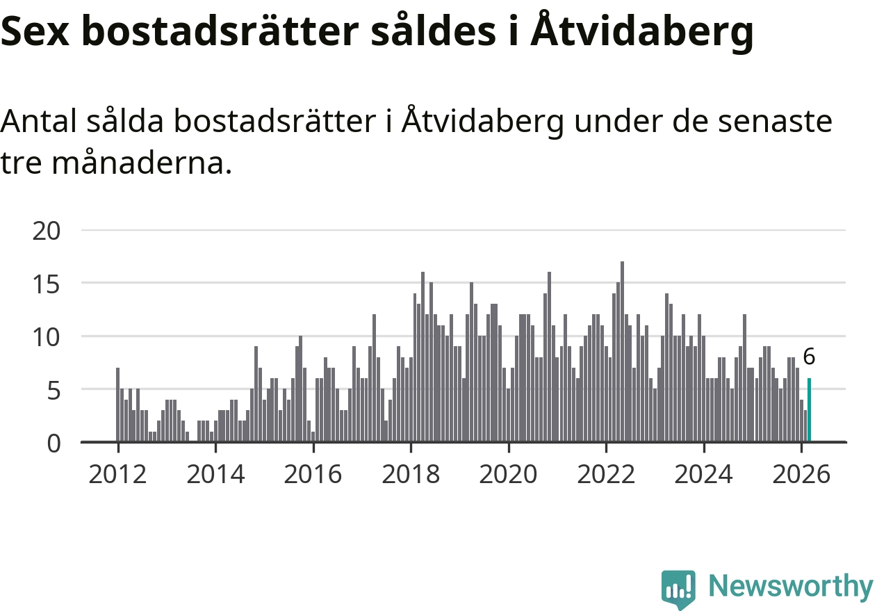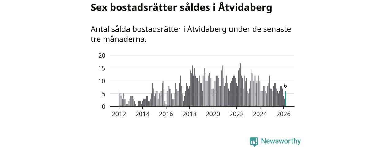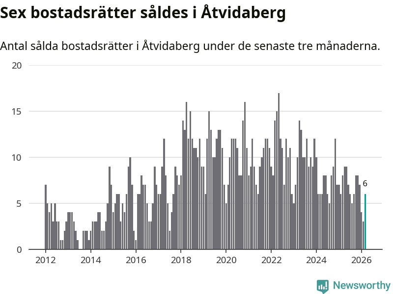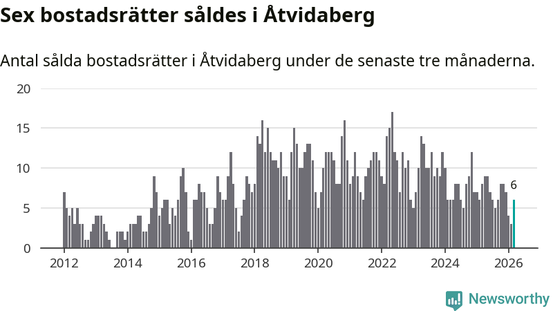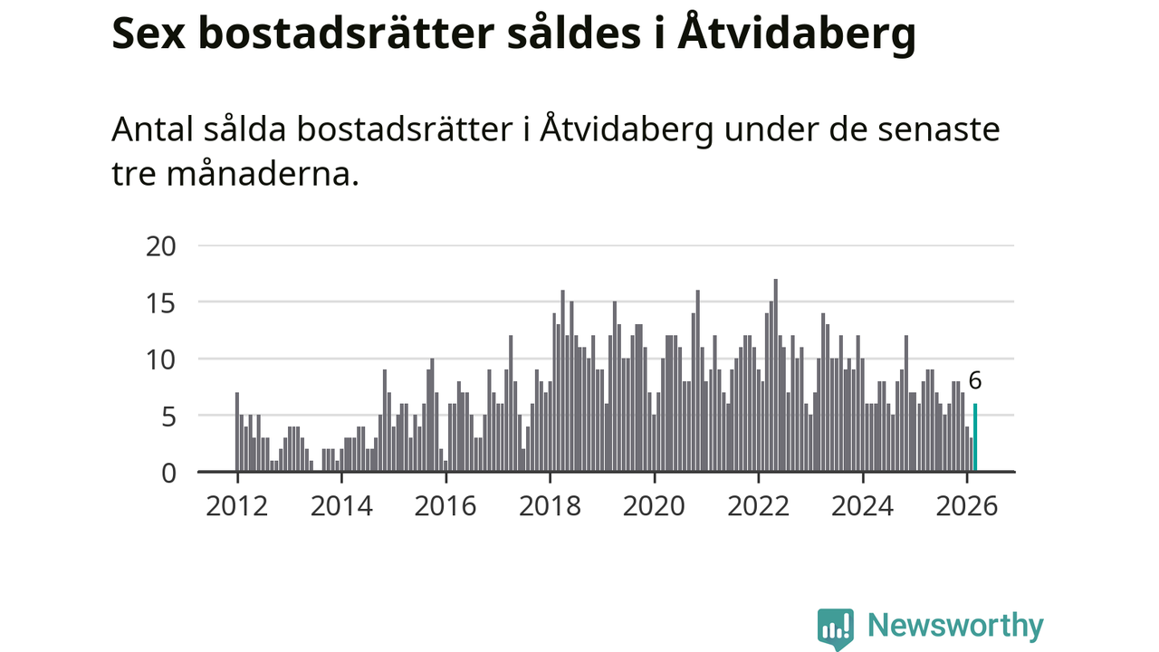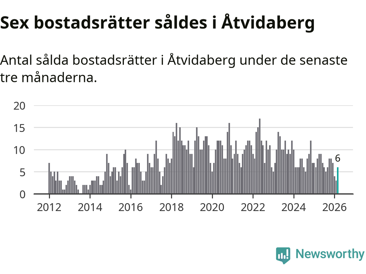 Mellan januari och mars gjordes sammanlagt sex affärer med bostadsrätter i Åtvidabergs kommun. Det kan jämföras med åtta vid motsvarande tid i fjol.