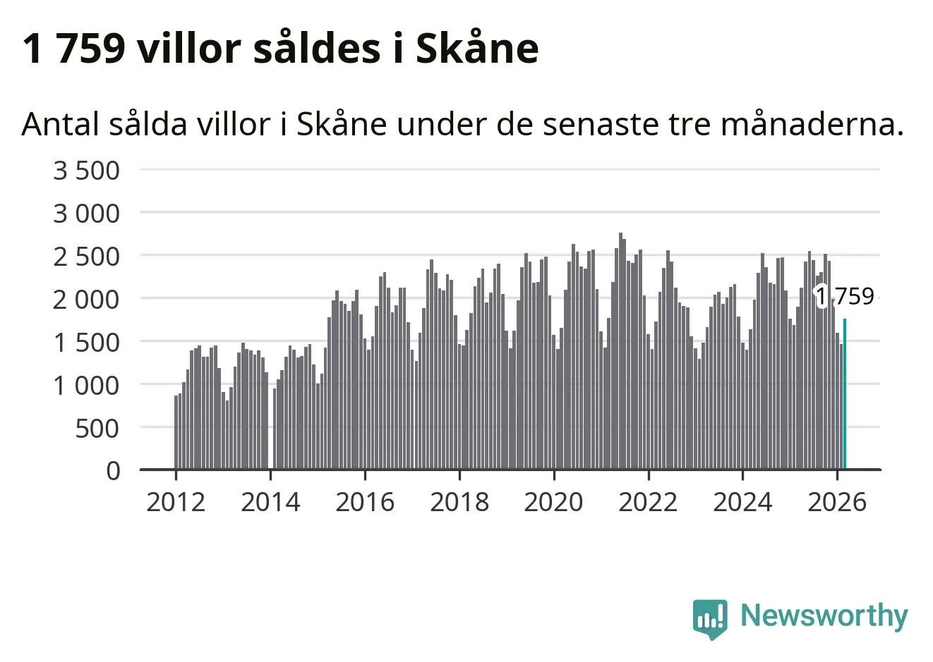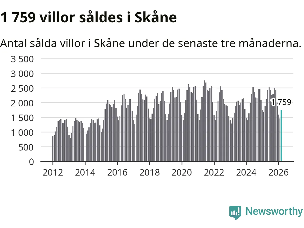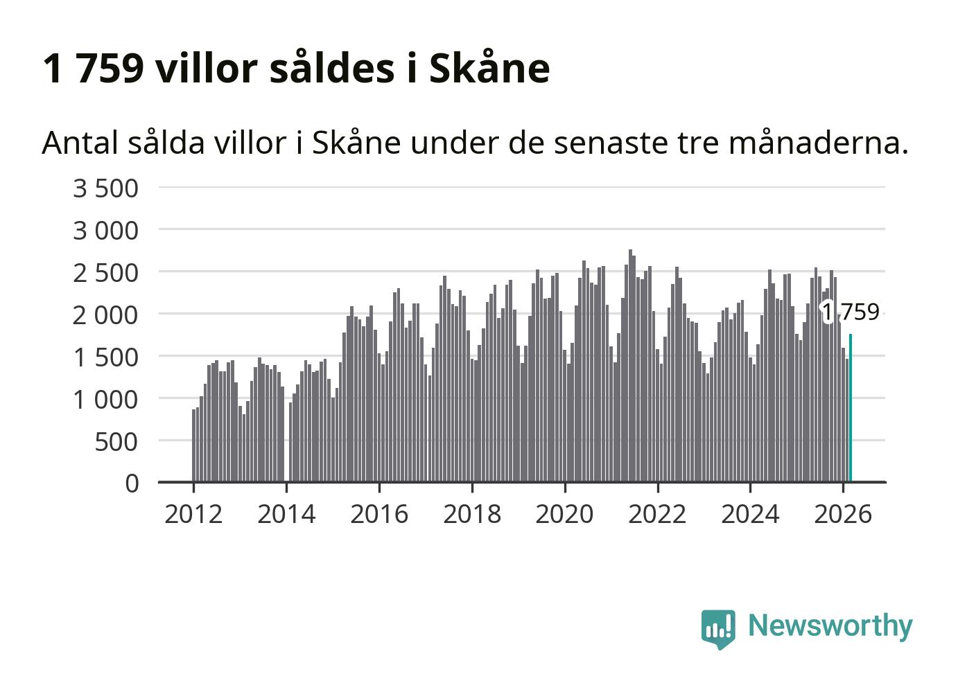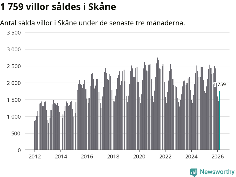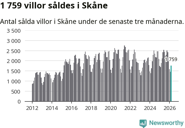 Graf: Antal sålda villor i Skåne län