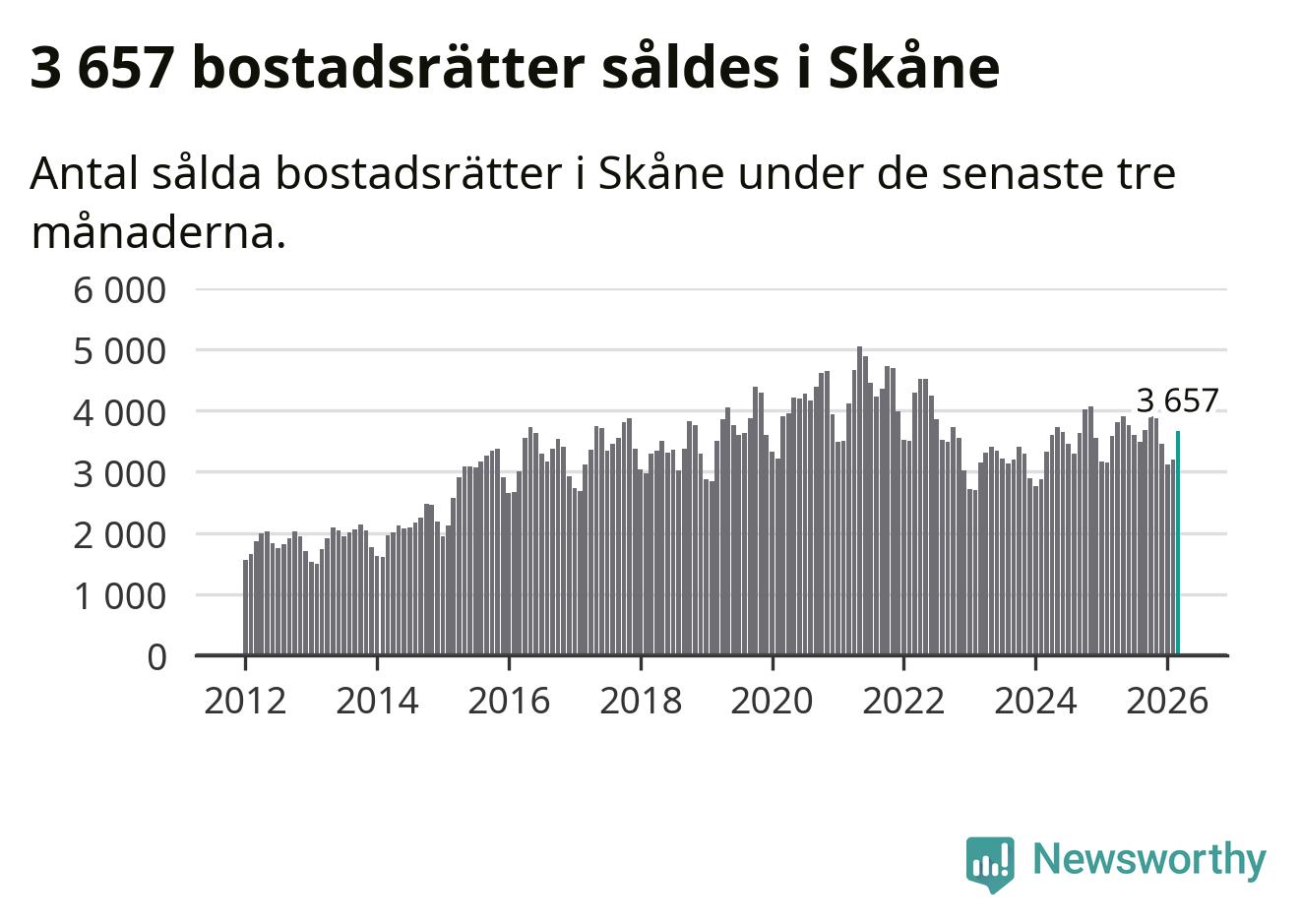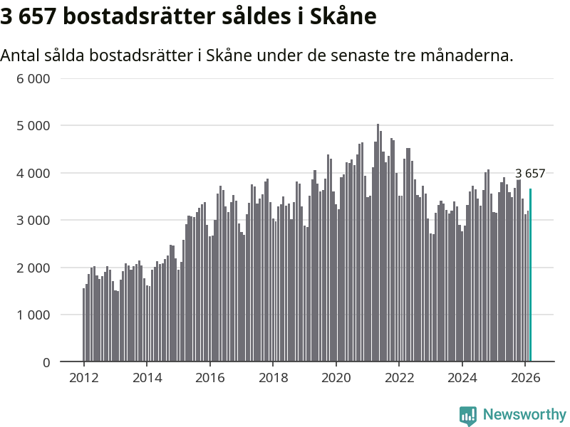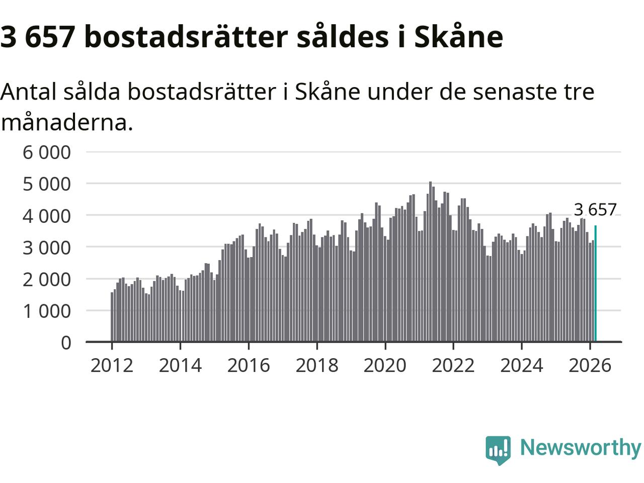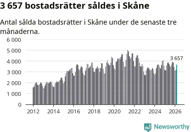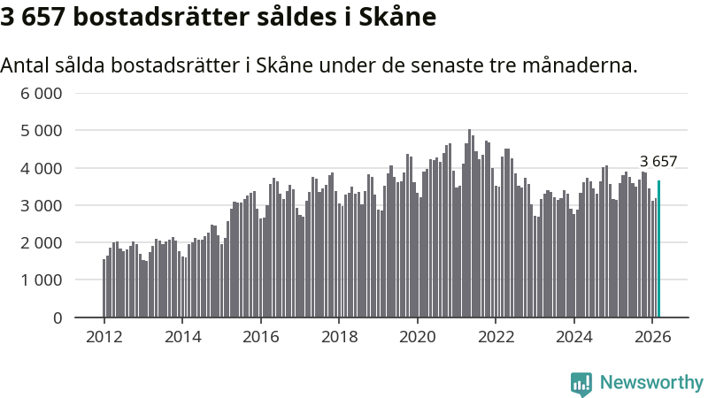 Graf: Antal sålda bostadsrätter i Skåne län