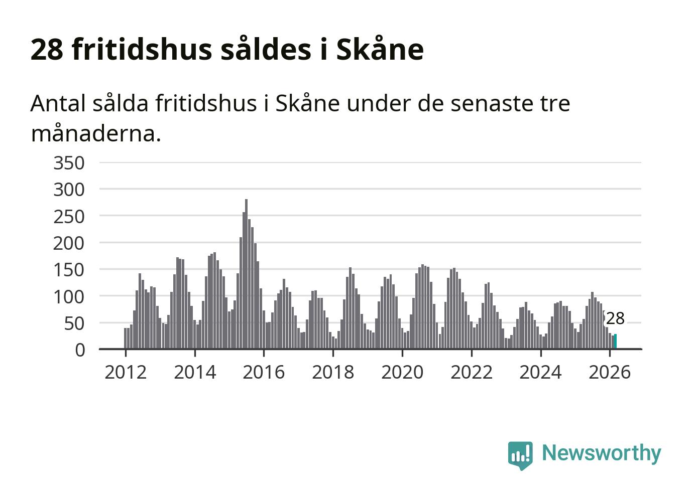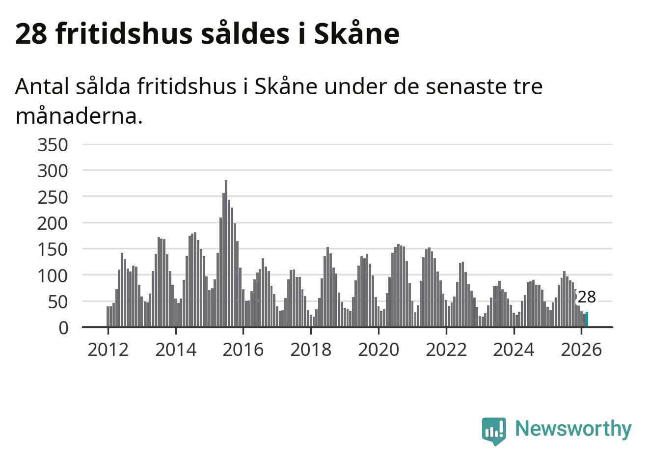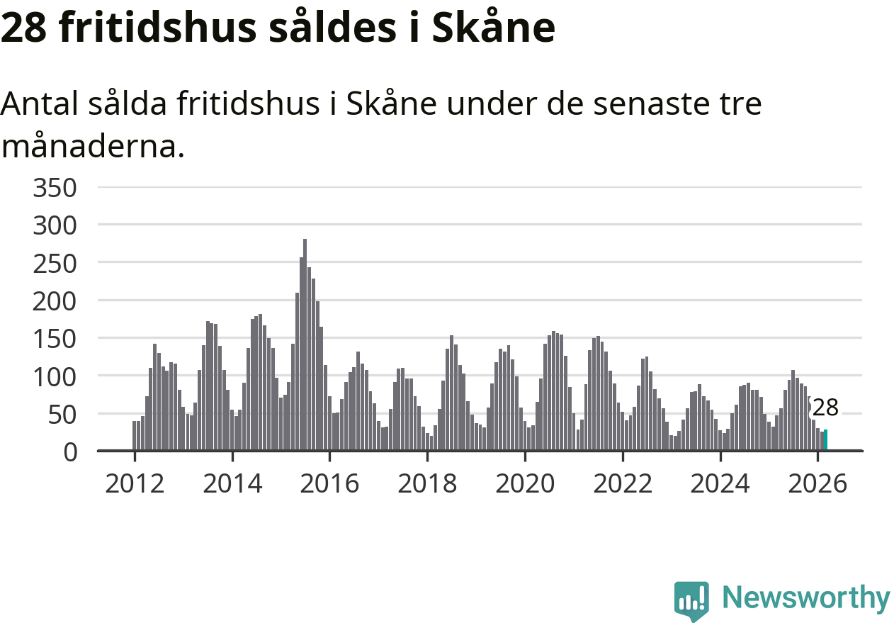 Graf: Antal sålda fritidshus i Skåne län