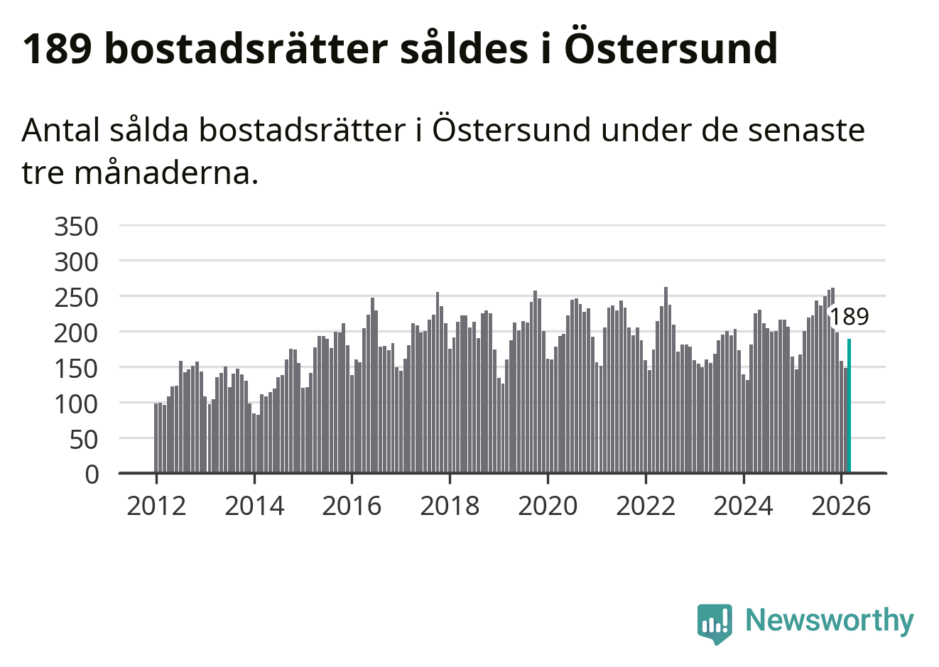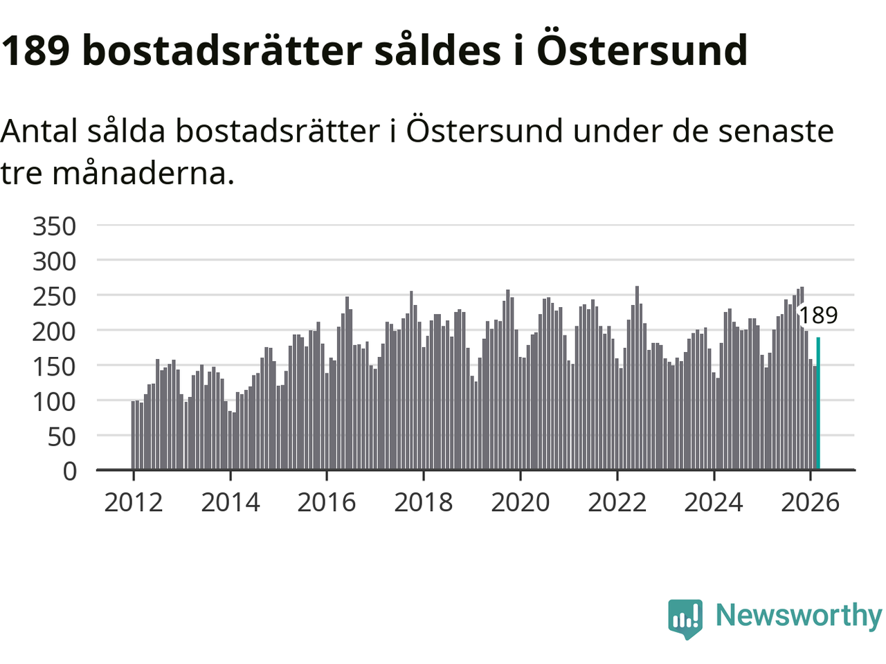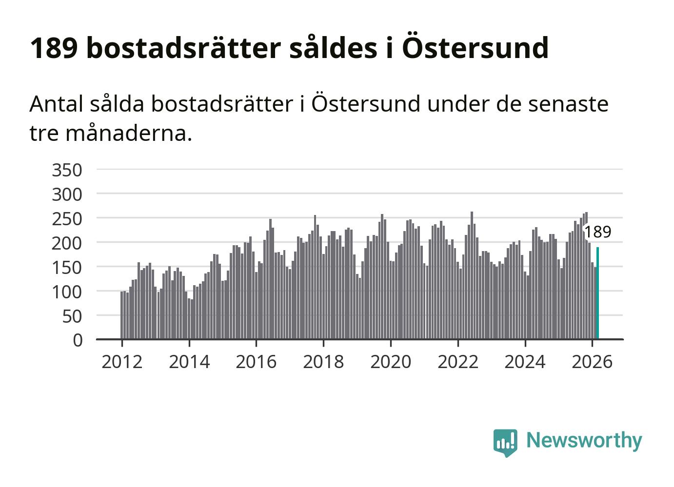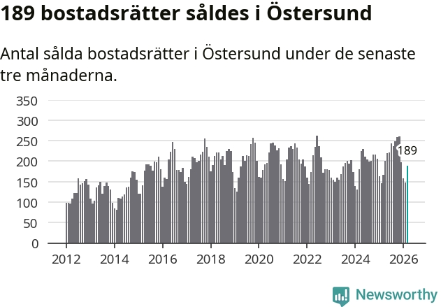 Sammanlagt såldes 189 bostadsrätter i Östersunds kommun mellan januari och mars till ett genomsnittligt pris på 1,6 miljoner kronor. I fjol gjordes 167 affärer vid den här tiden på året.