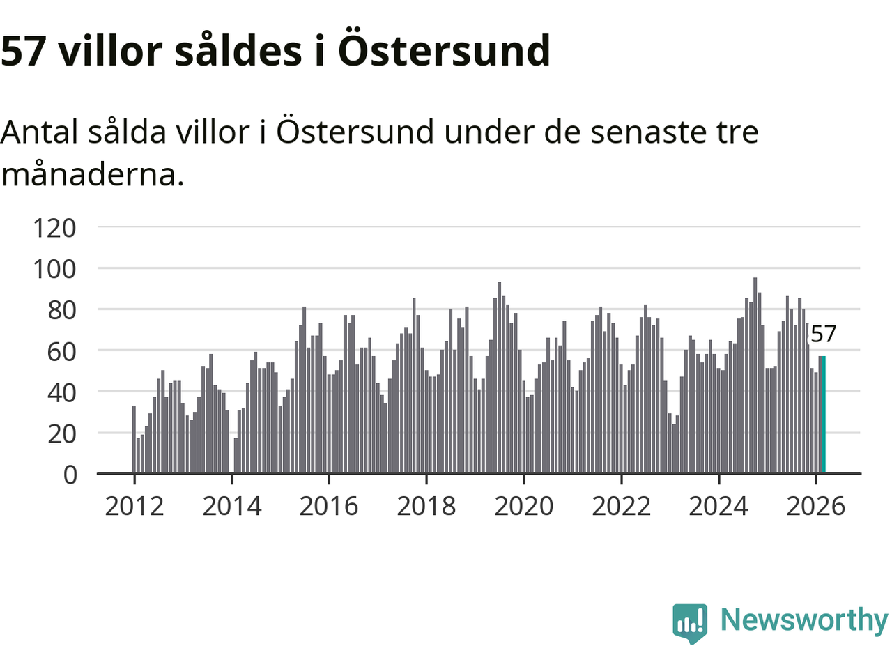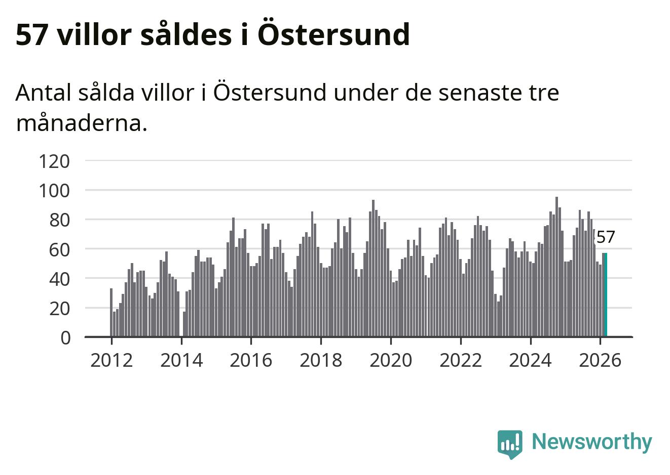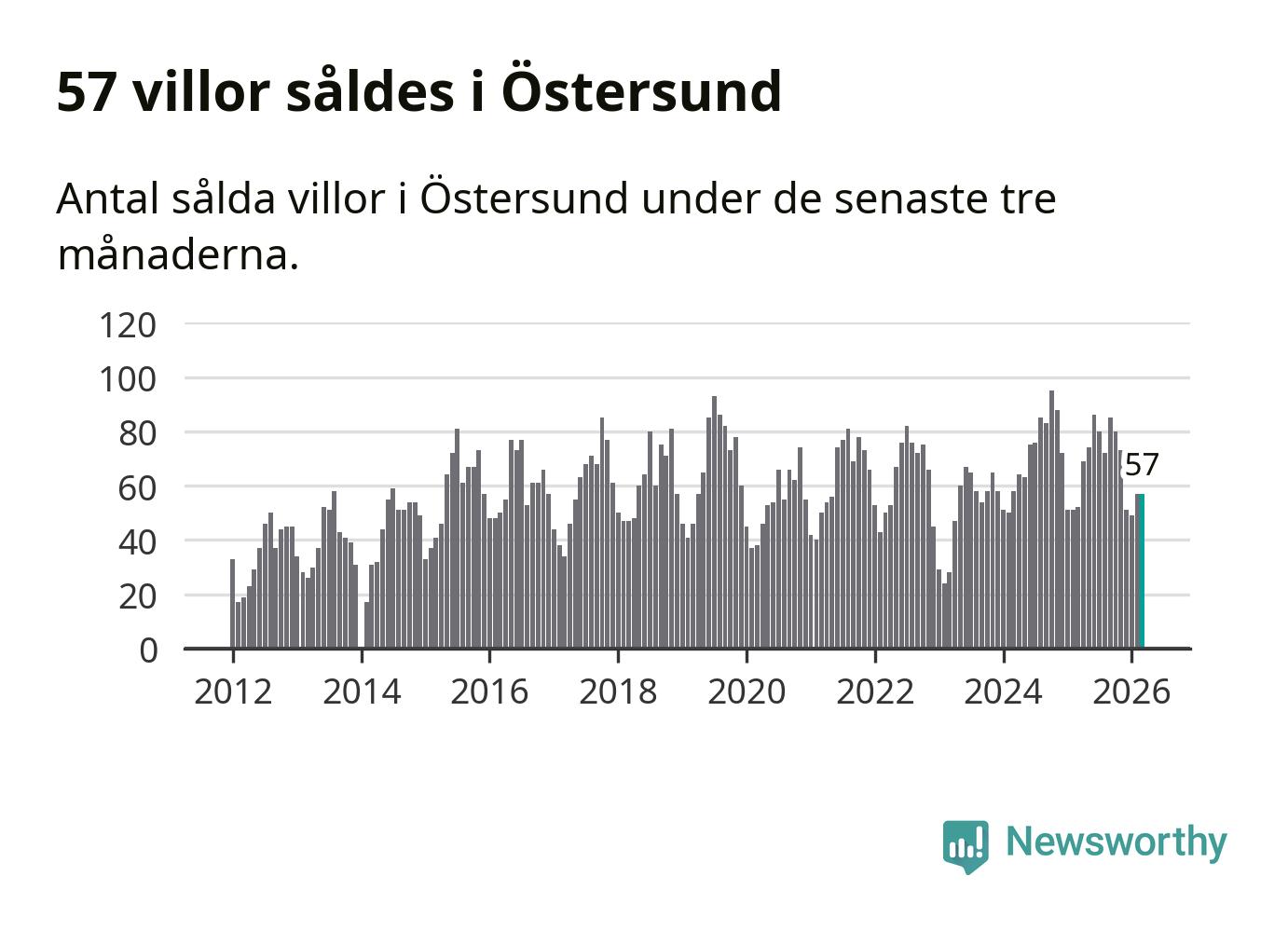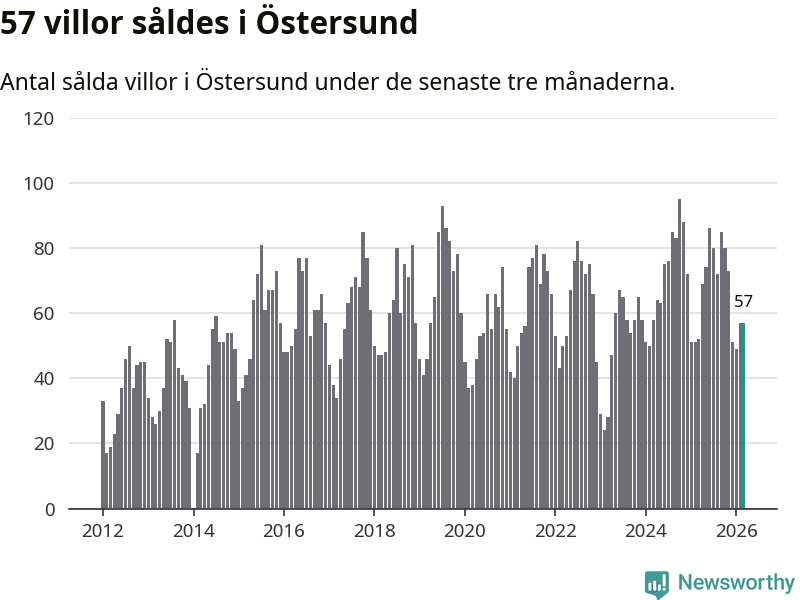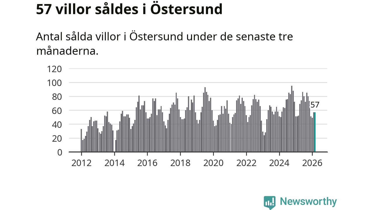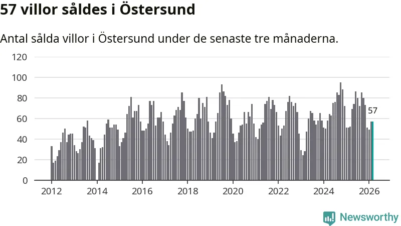 Sammanlagt såldes 57 villor i Östersunds kommun mellan januari och mars till ett genomsnittligt pris på 4,1 miljoner kronor. I fjol gjordes 52 affärer vid den här tiden på året.