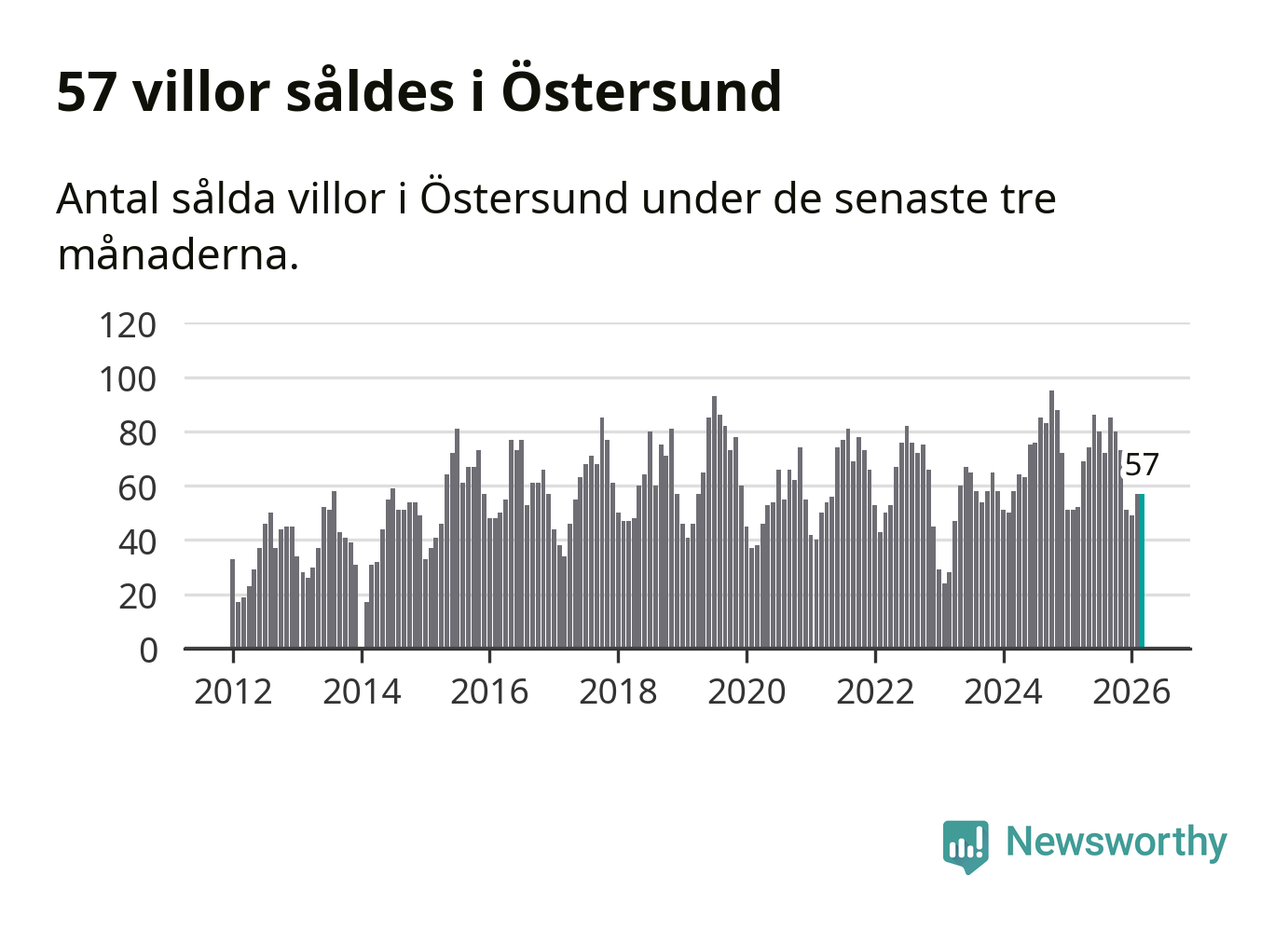 | Östersund | +6 % ▲ | 57 | 4,1 miljoner |