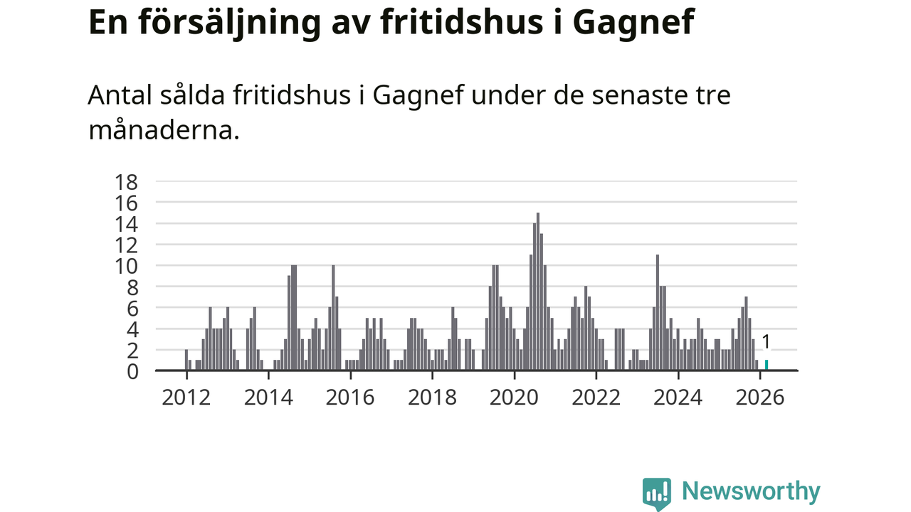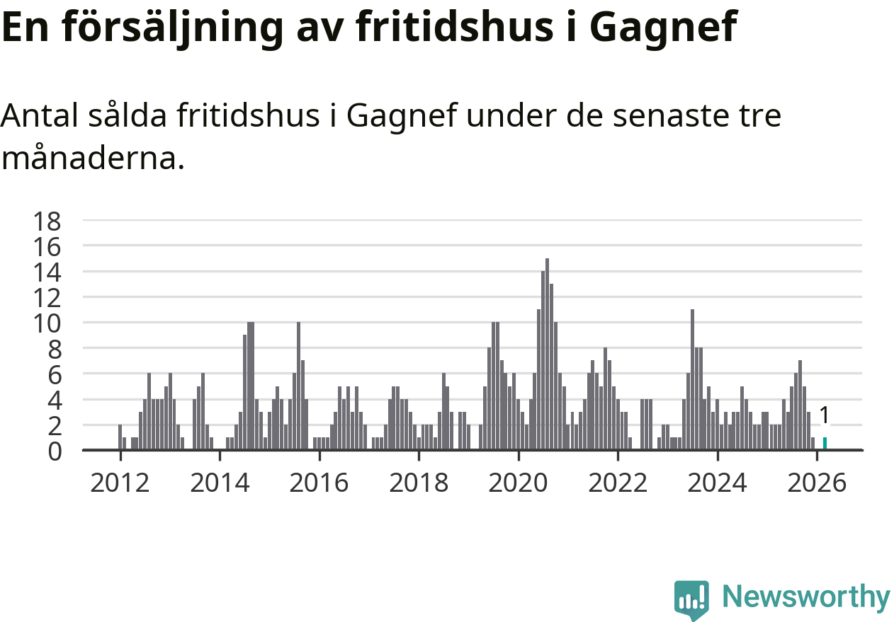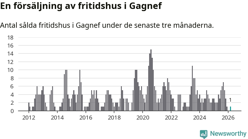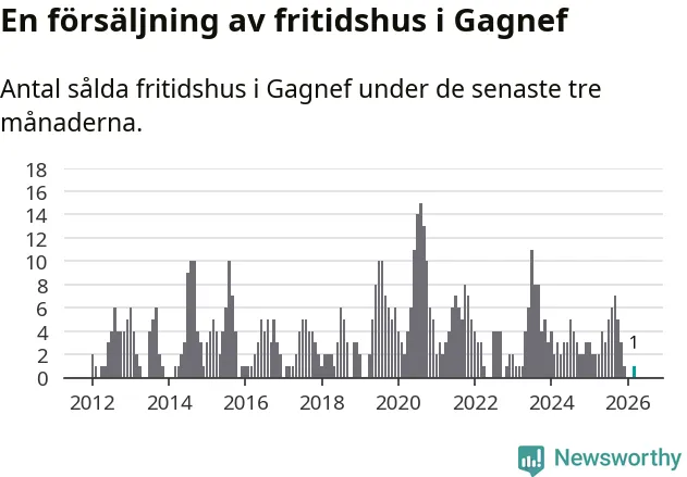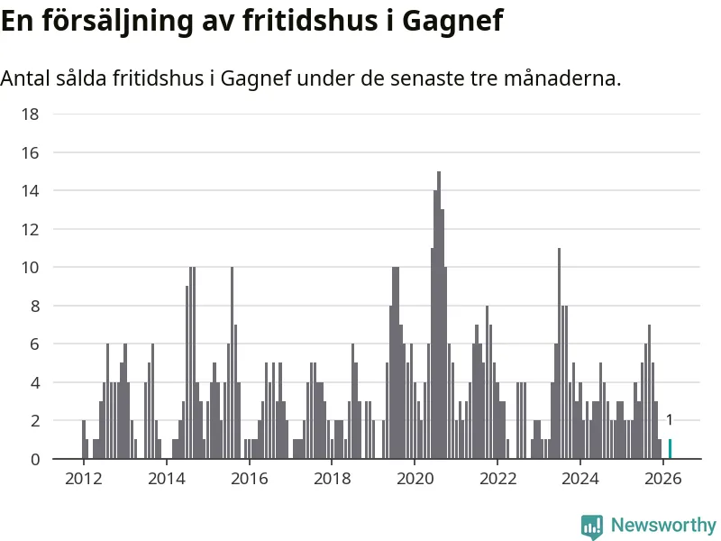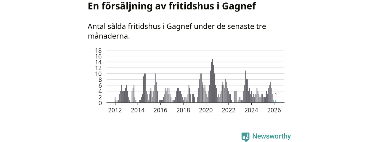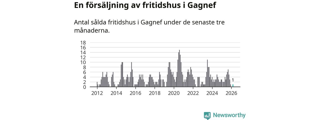 Mellan januari och mars gjordes sammanlagt en affär med fritidshus i Gagnefs kommun. Det kan jämföras med två vid motsvarande tid i fjol.