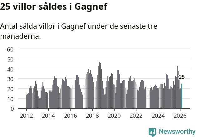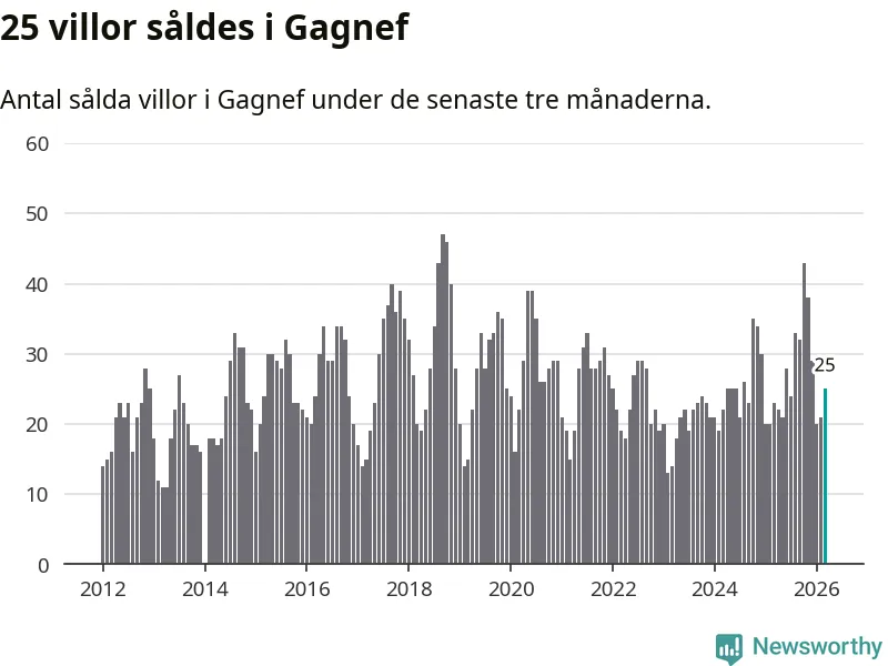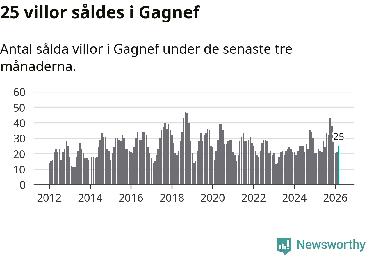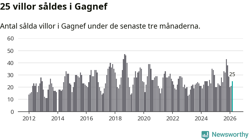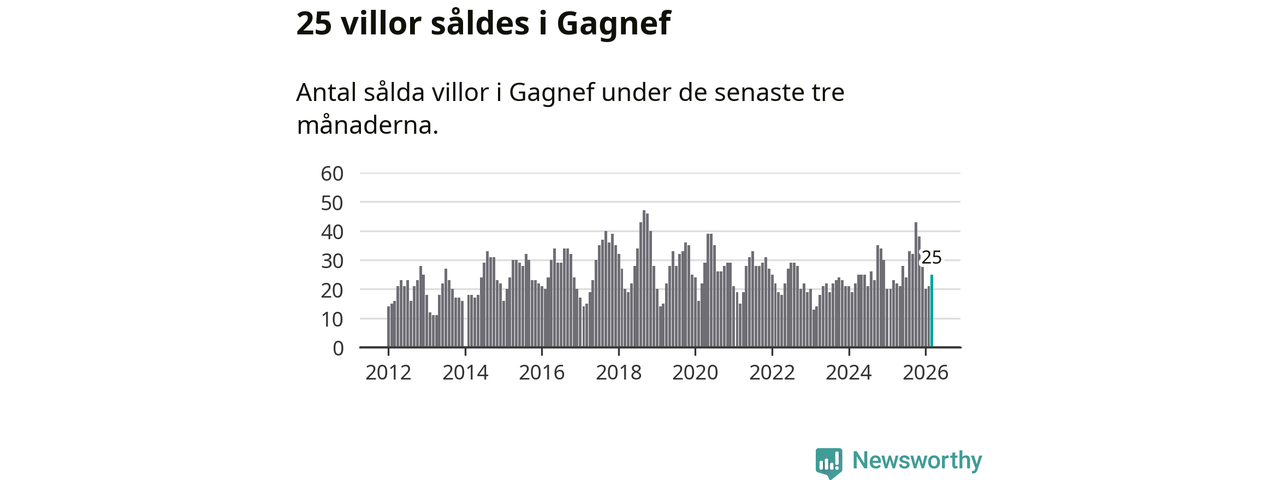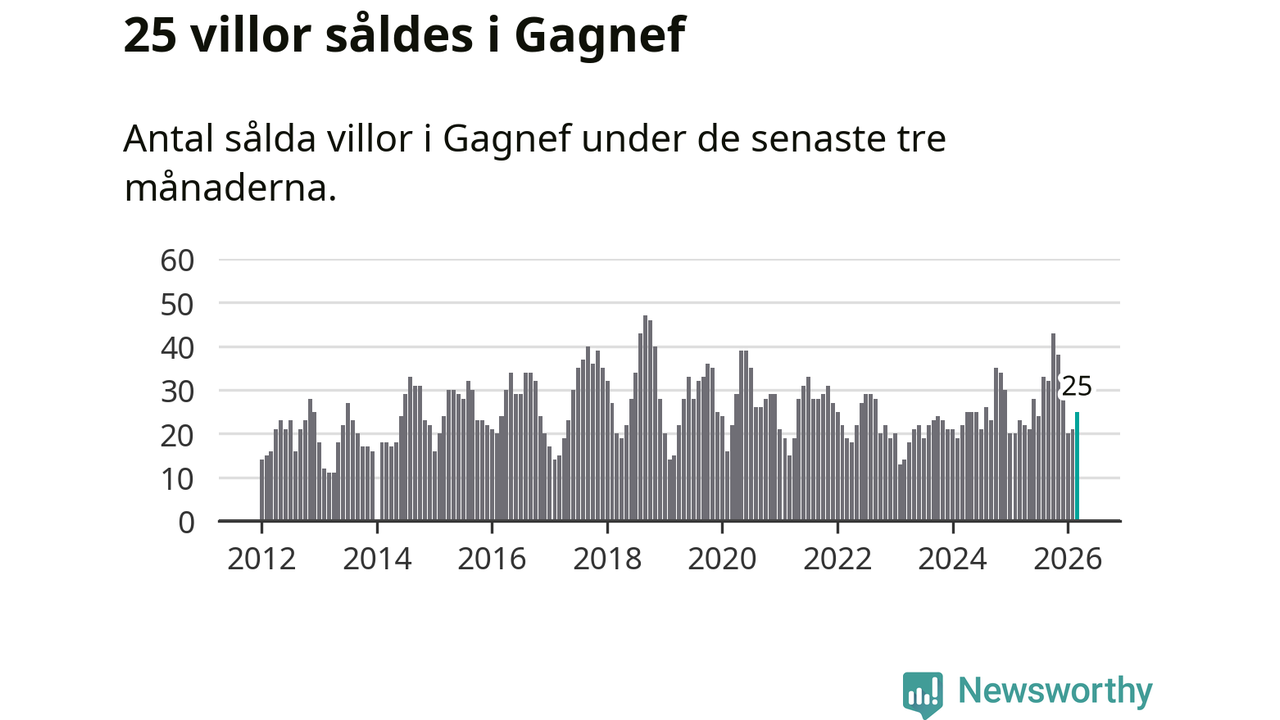 Mellan januari och mars gjordes sammanlagt 25 affärer med villor i Gagnefs kommun. Det kan jämföras med 23 vid motsvarande tid i fjol.