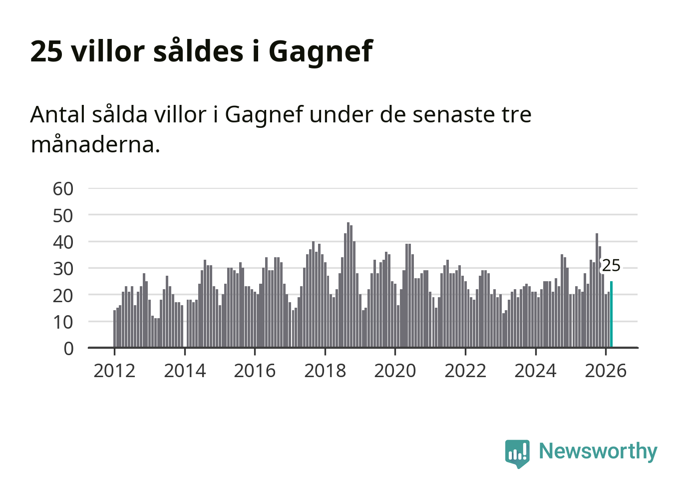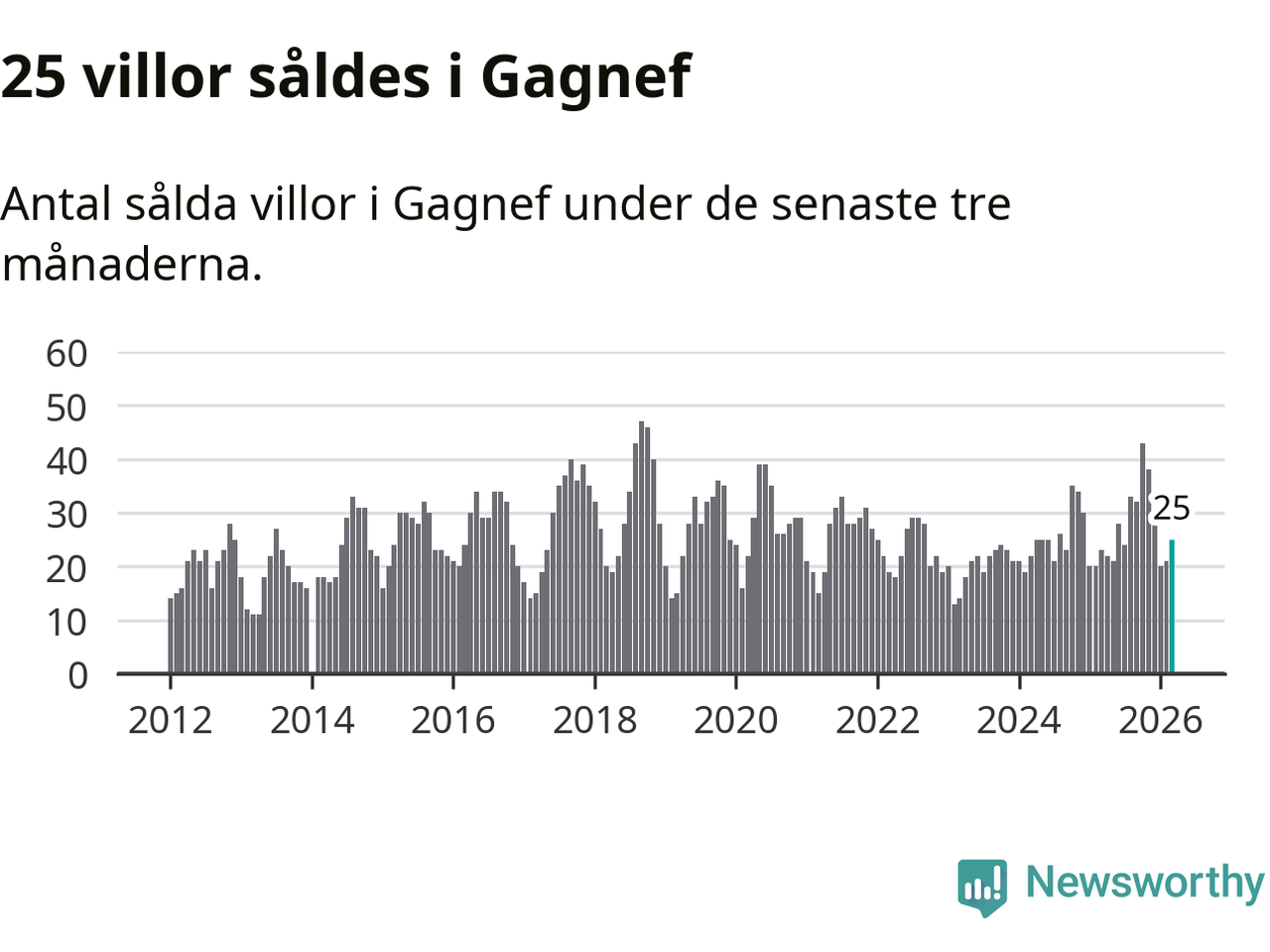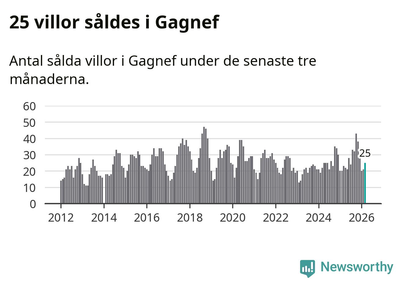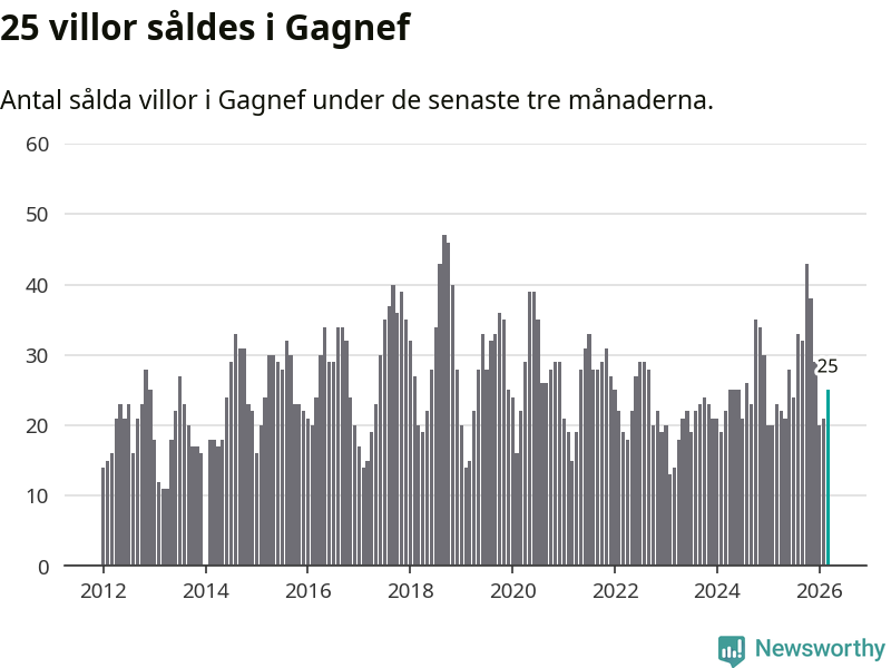 Mellan januari och mars gjordes sammanlagt 25 affärer med villor i Gagnefs kommun. Det kan jämföras med 23 vid motsvarande tid i fjol.